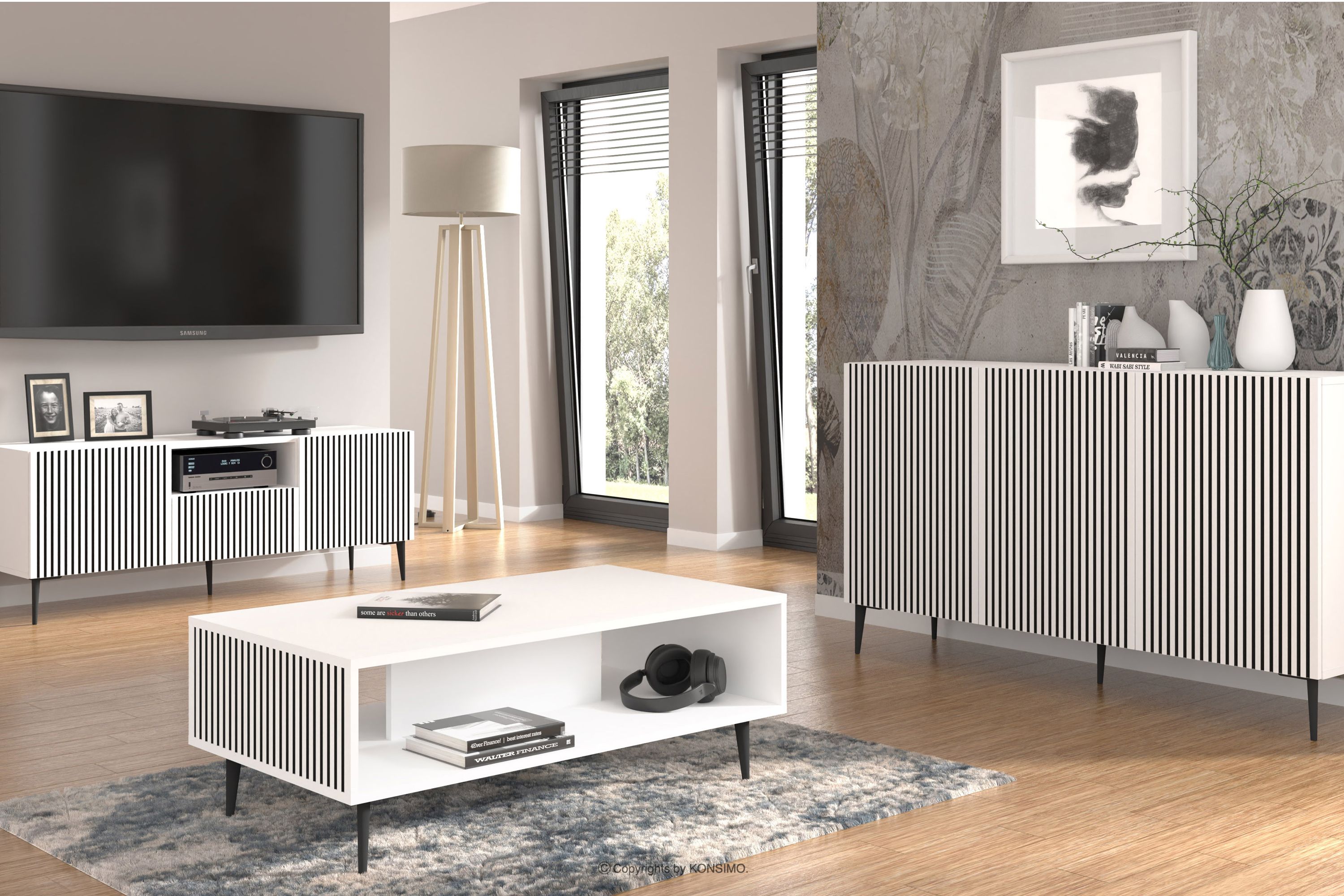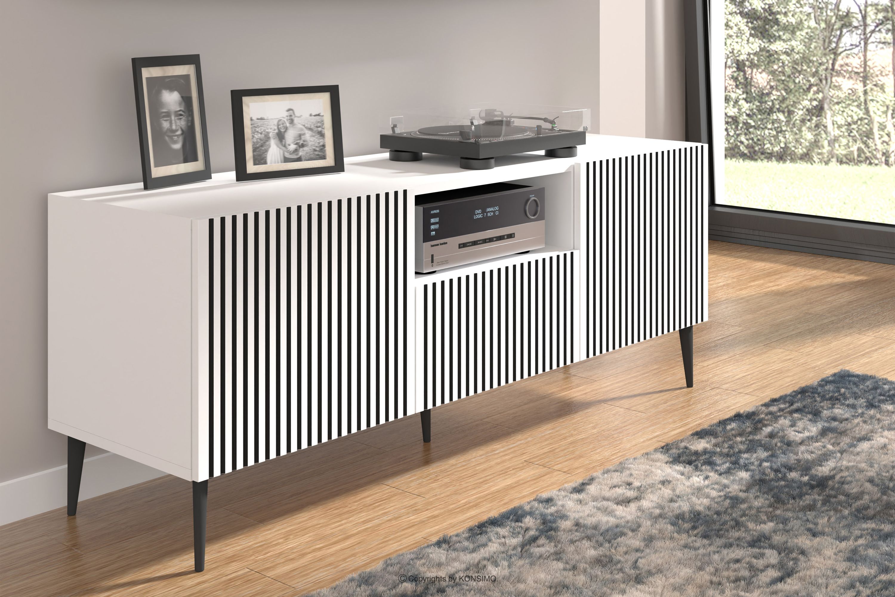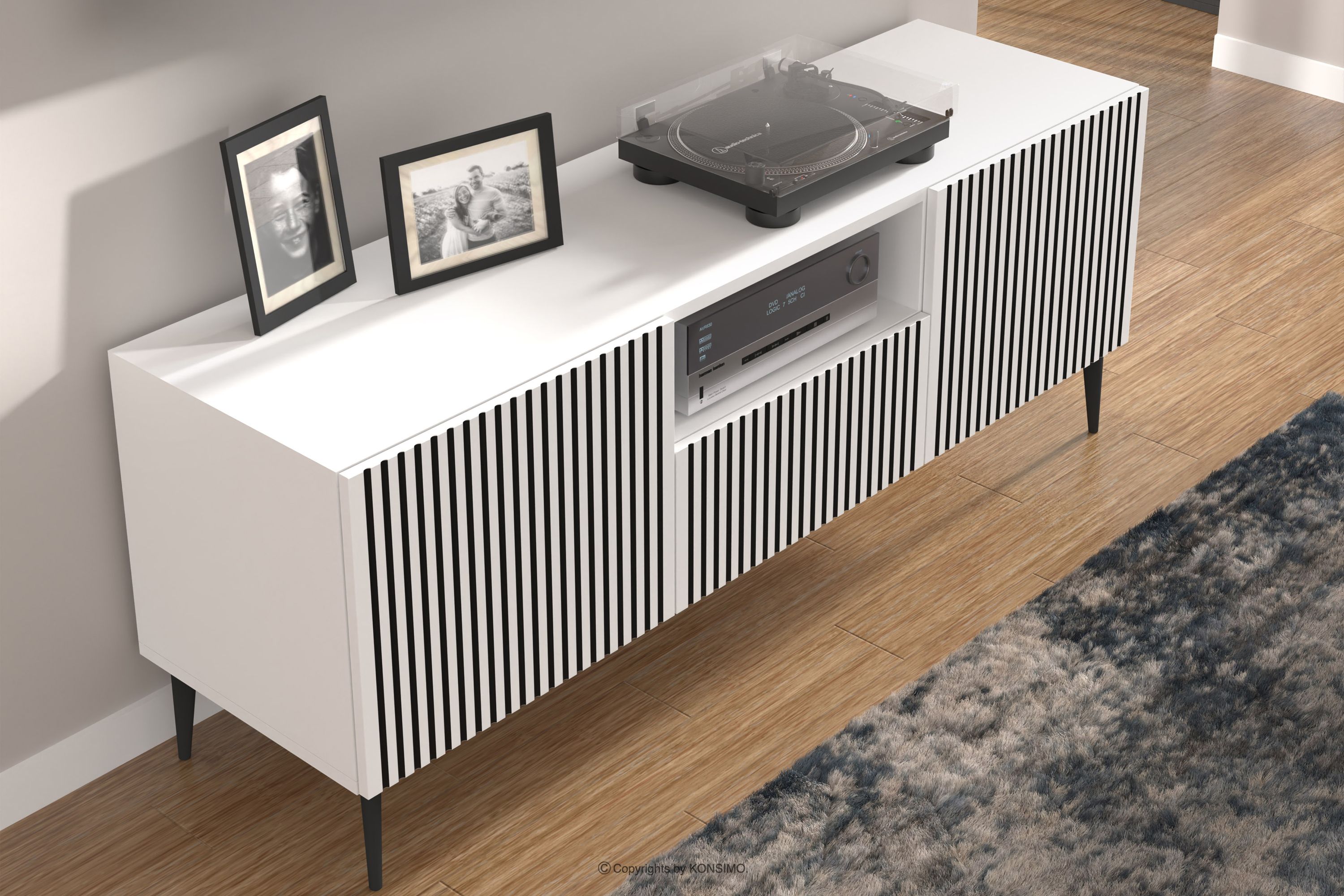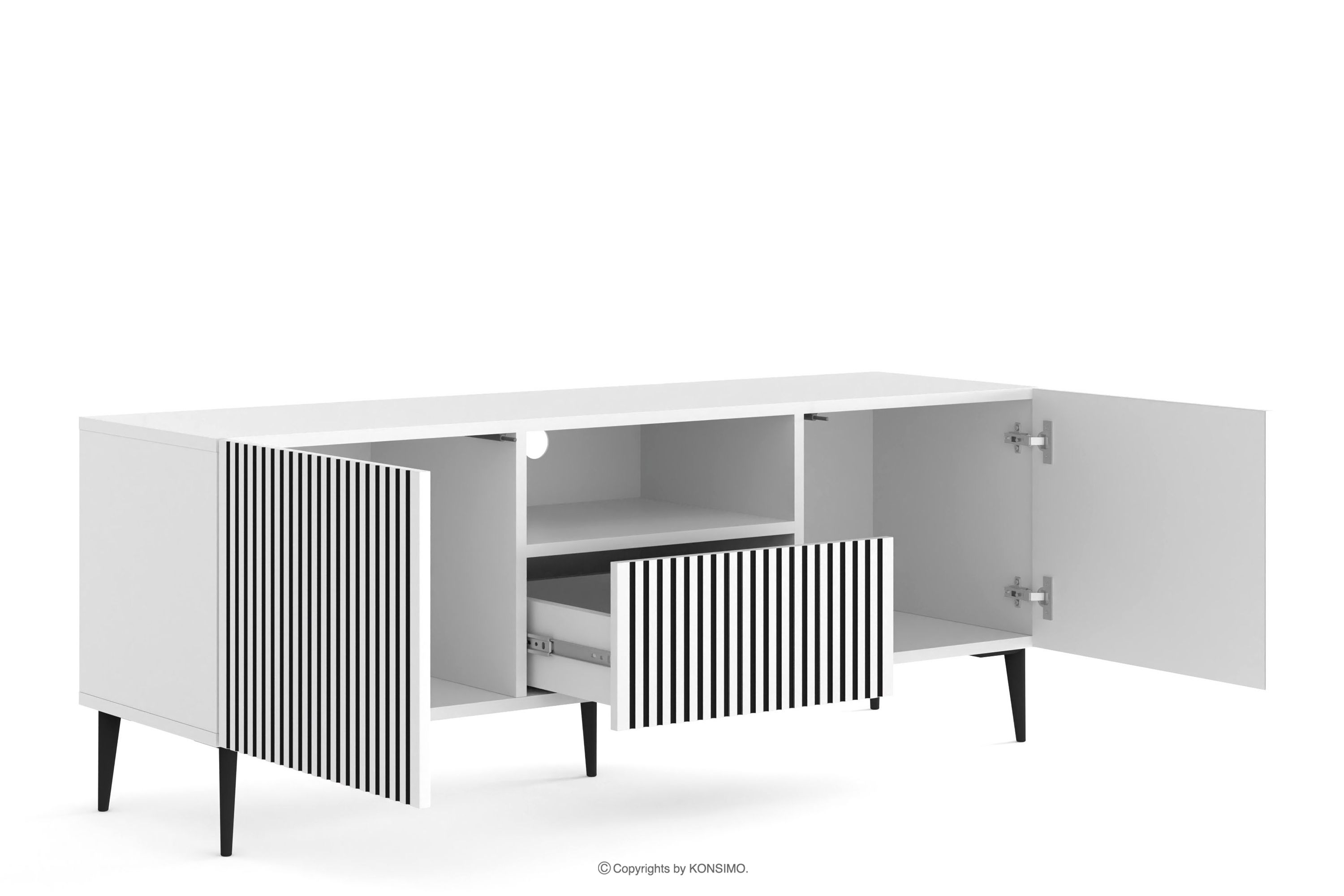 REMO zobacz całą kolekcję Szafka RTV na nóżkach nowoczesna z lamelami biały/czarny- kolor biały/czarny