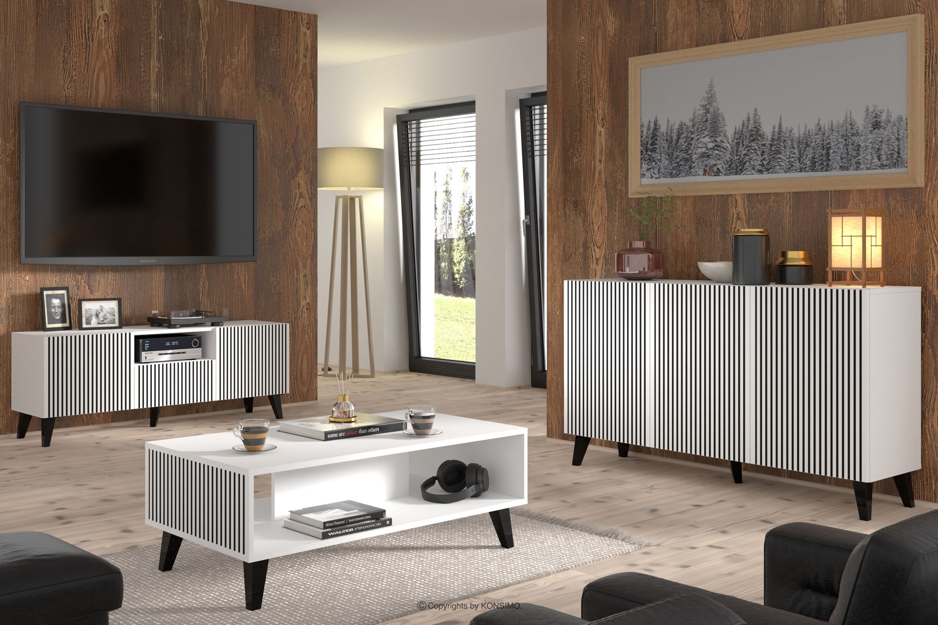 REMO zobacz całą kolekcję Komoda nowoczesna z lamelami biały/czarny- kolor biały/czarny