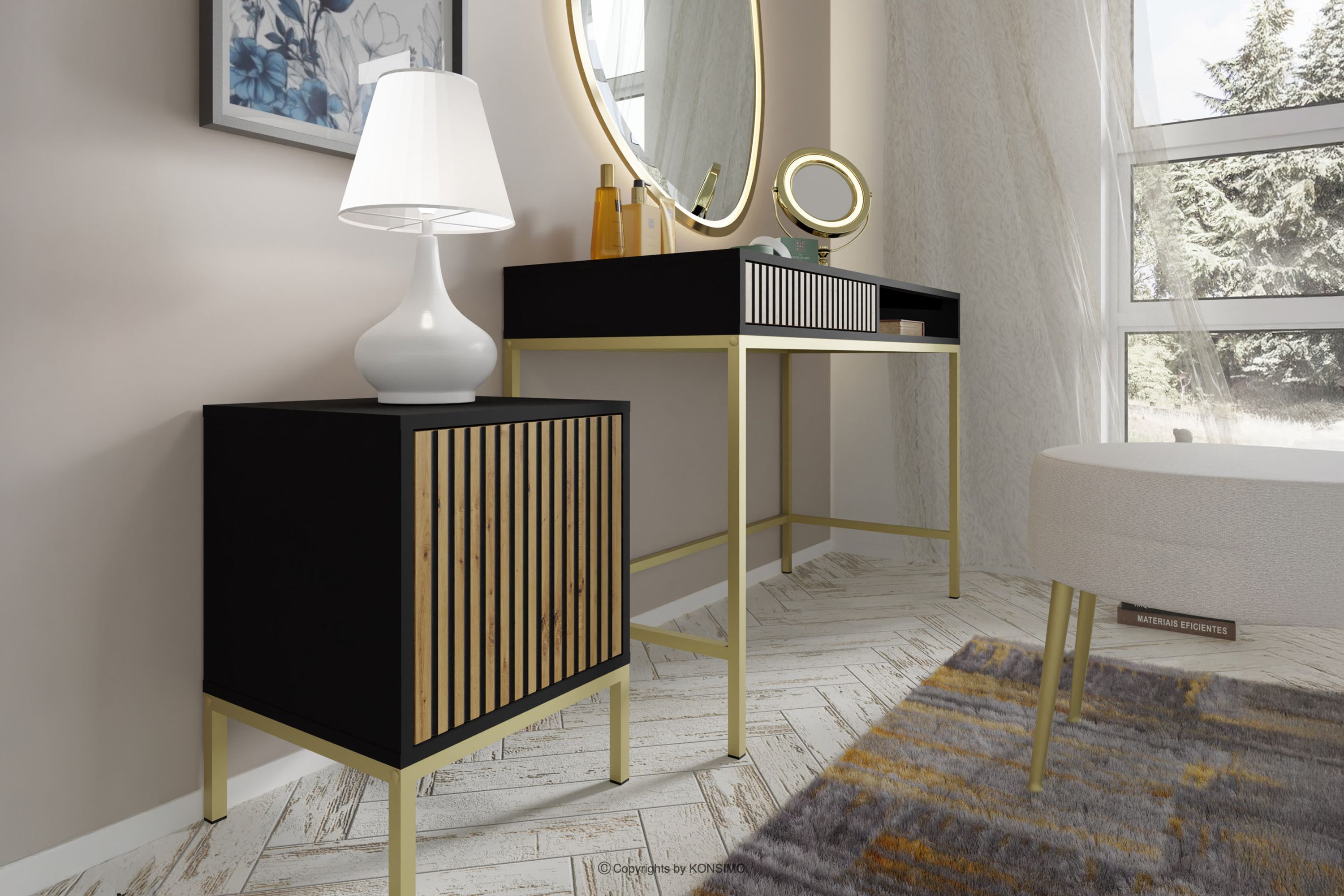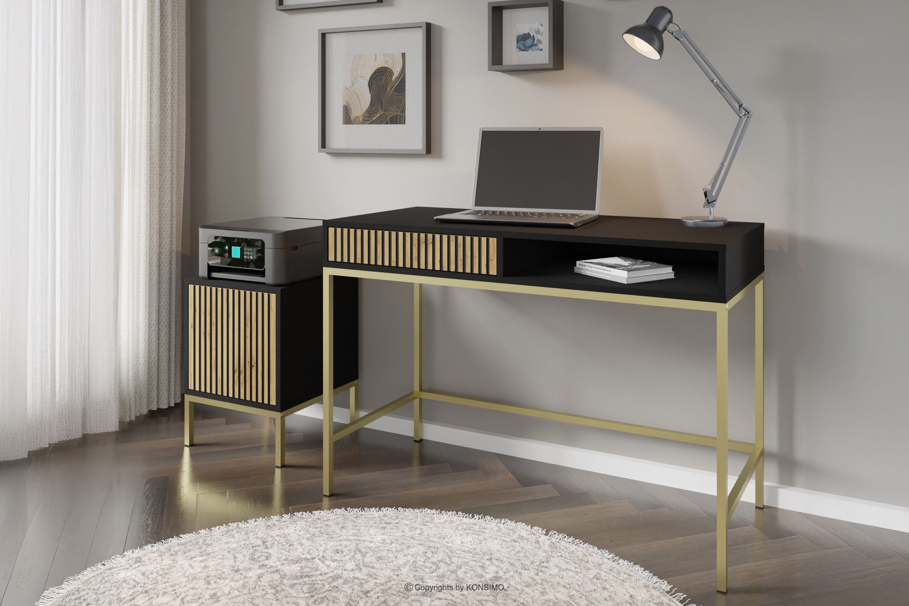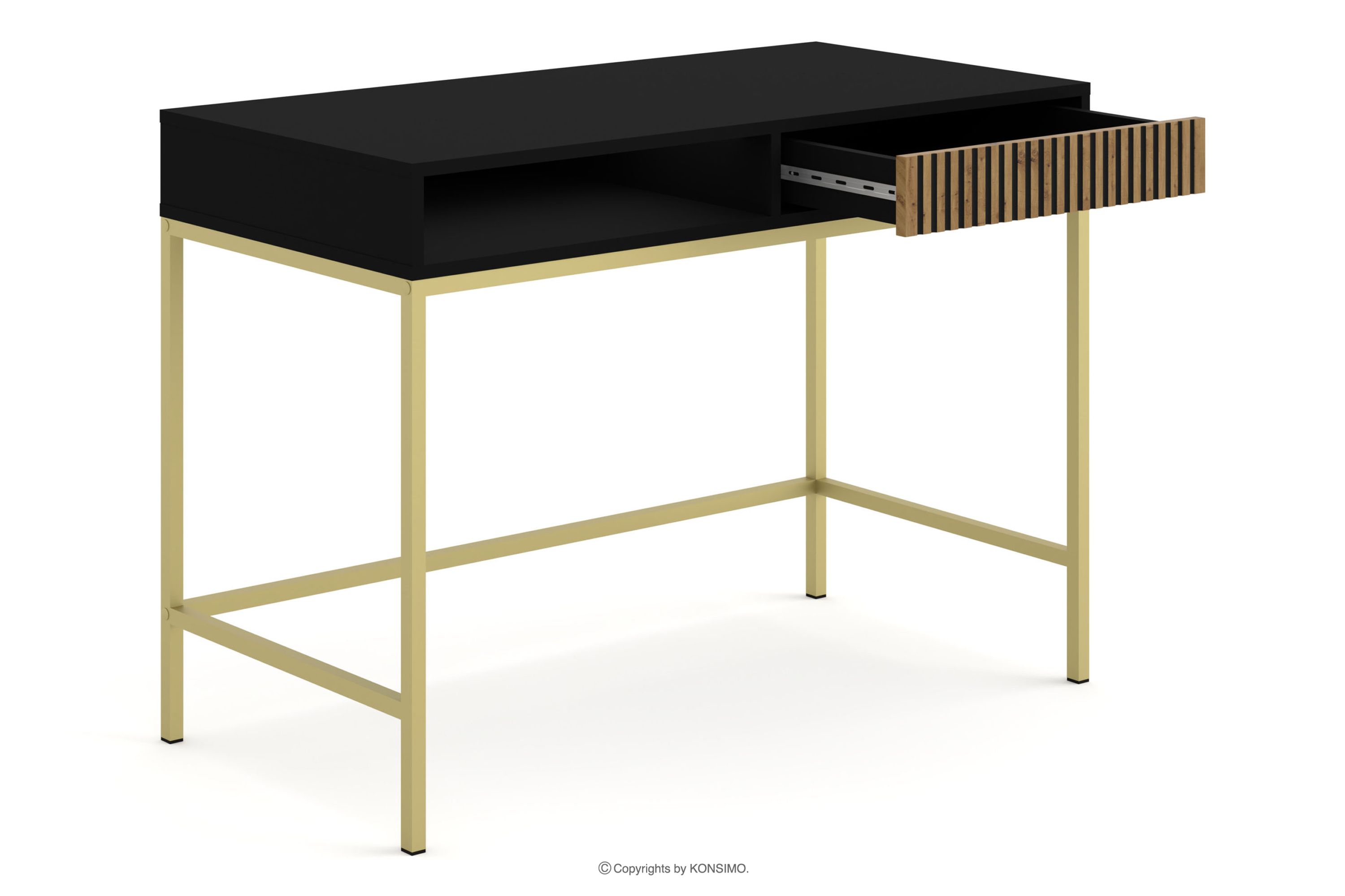REMO zobacz całą kolekcję Biurko z szufladą na złotych nóżkach czarny/dąb artisan- kolor czarny/dąb artisan