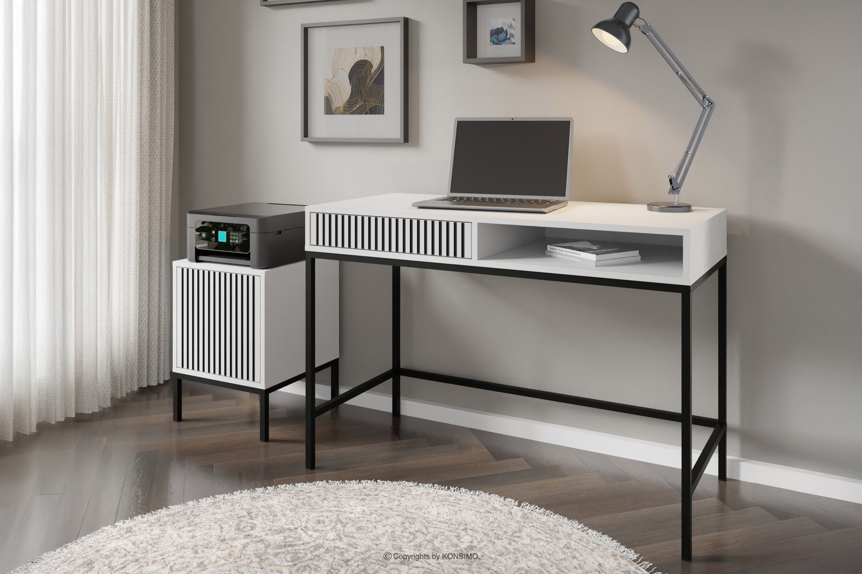 REMO Stolik nocny z lamelami biały/czarny