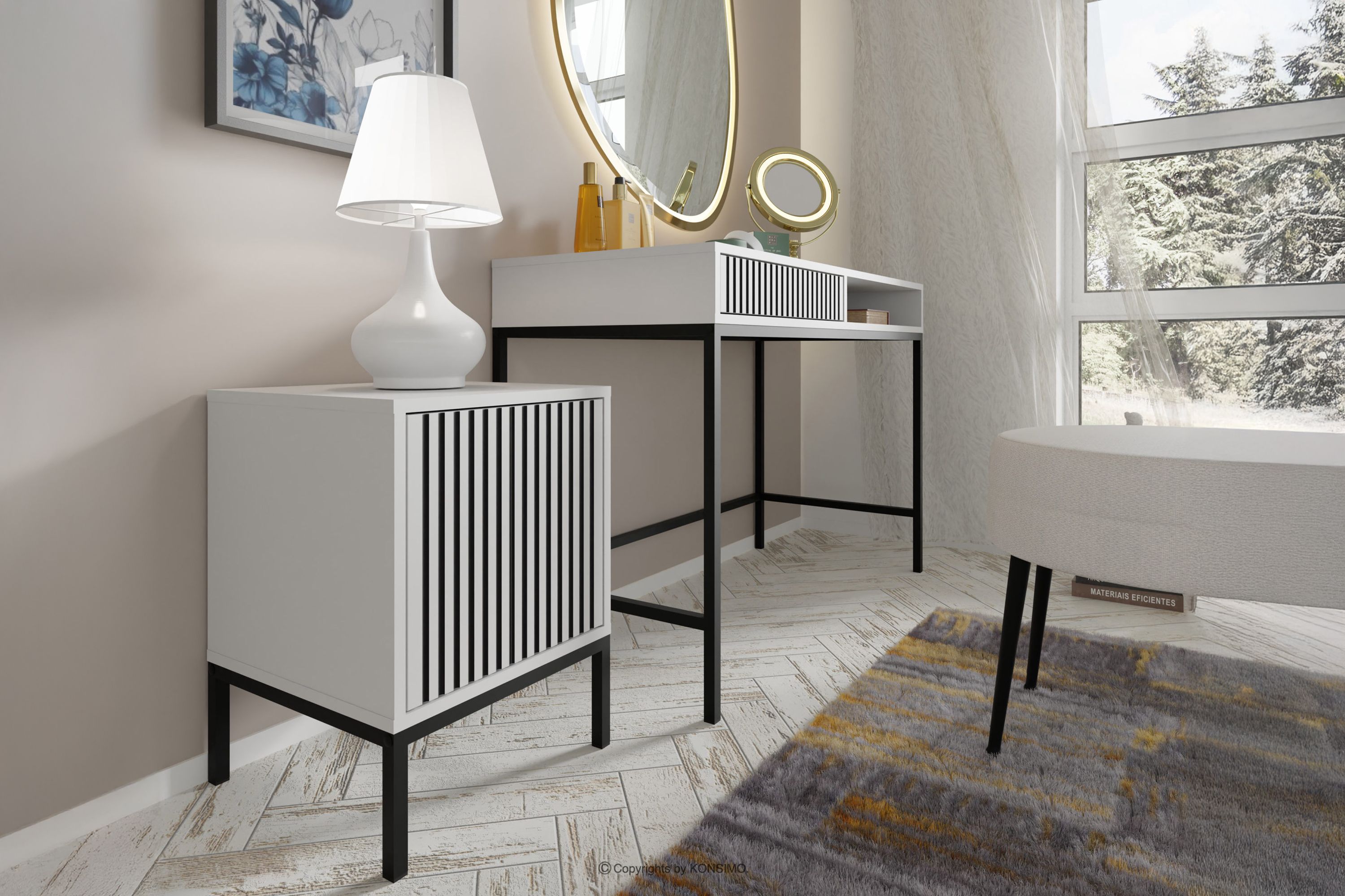 REMO zobacz całą kolekcję Stolik nocny z lamelami biały/czarny- kolor biały/czarny