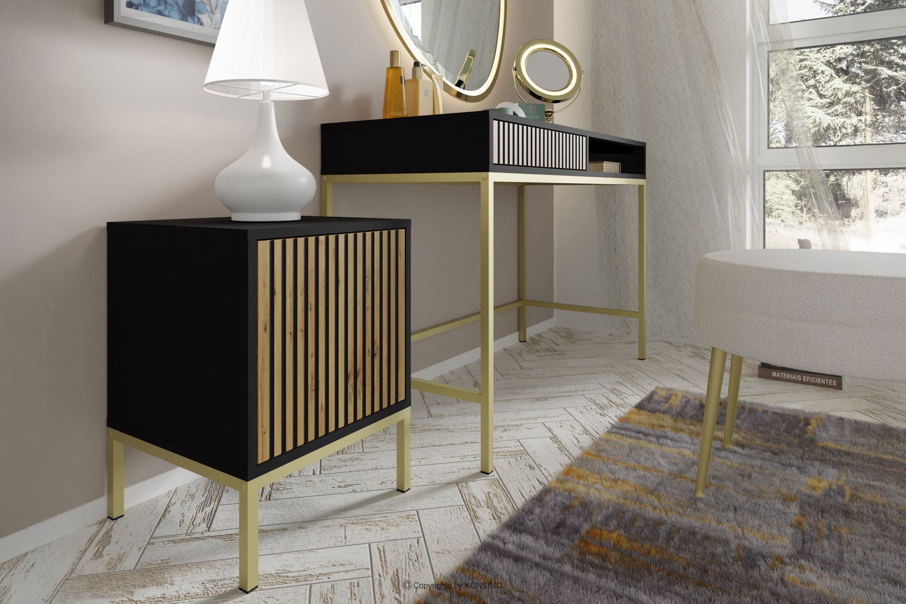 REMO zobacz całą kolekcję Stolik nocny z lamelami czarny/dąb artisan- kolor czarny/dąb artisan