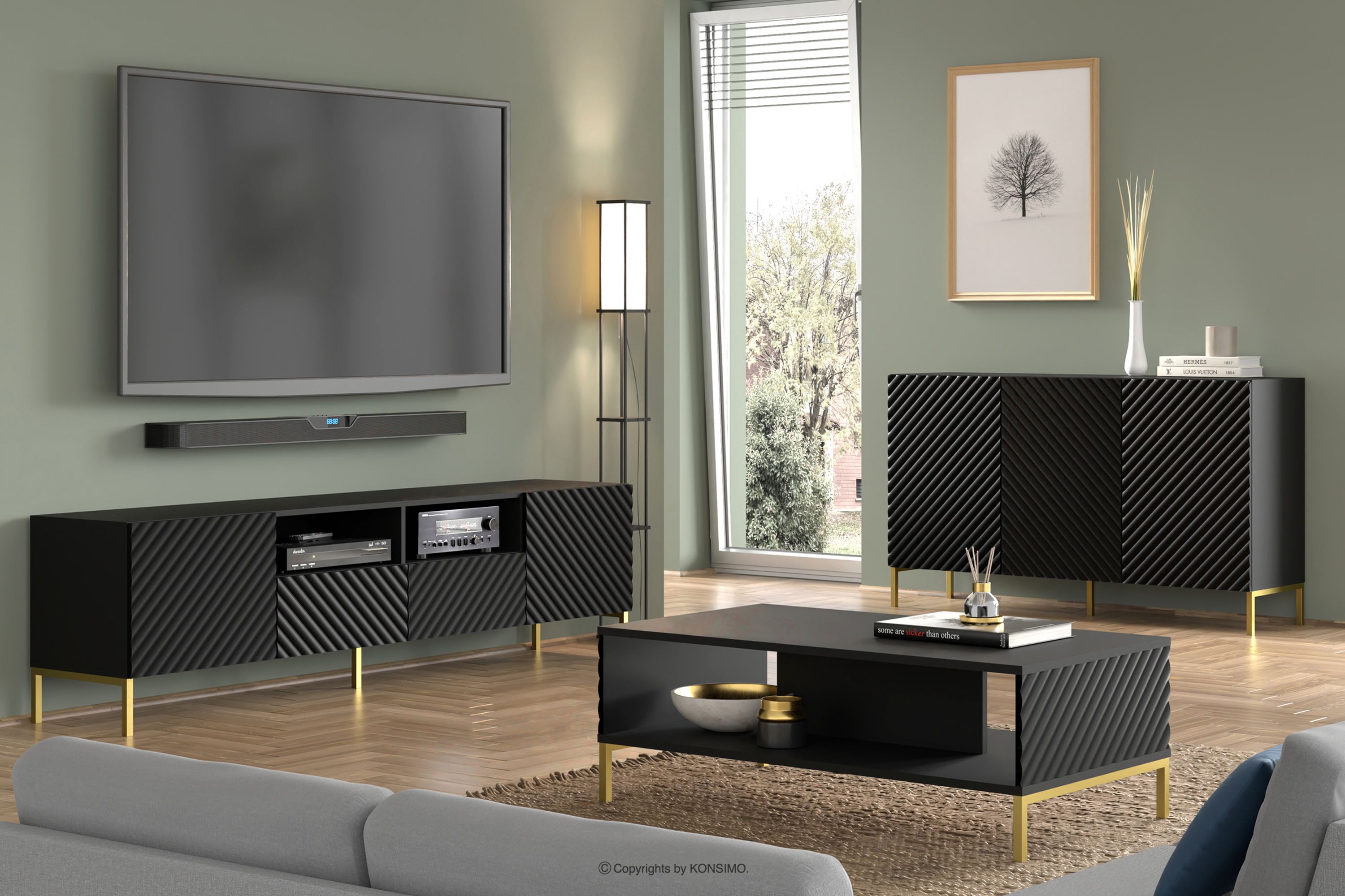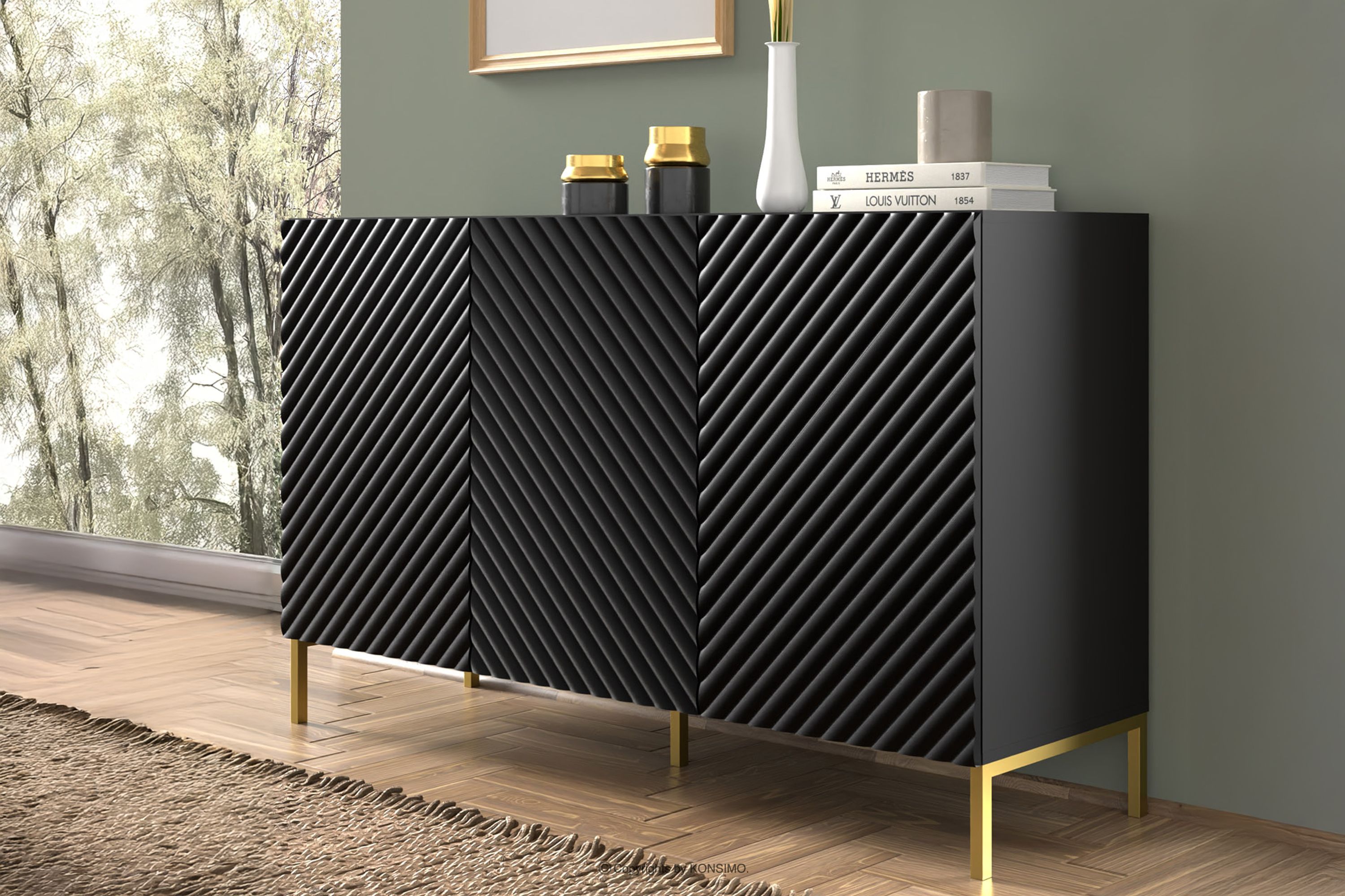ADENO zobacz całą kolekcję Nowoczesna czarna komoda na złotych nóżkach- kolor czarny