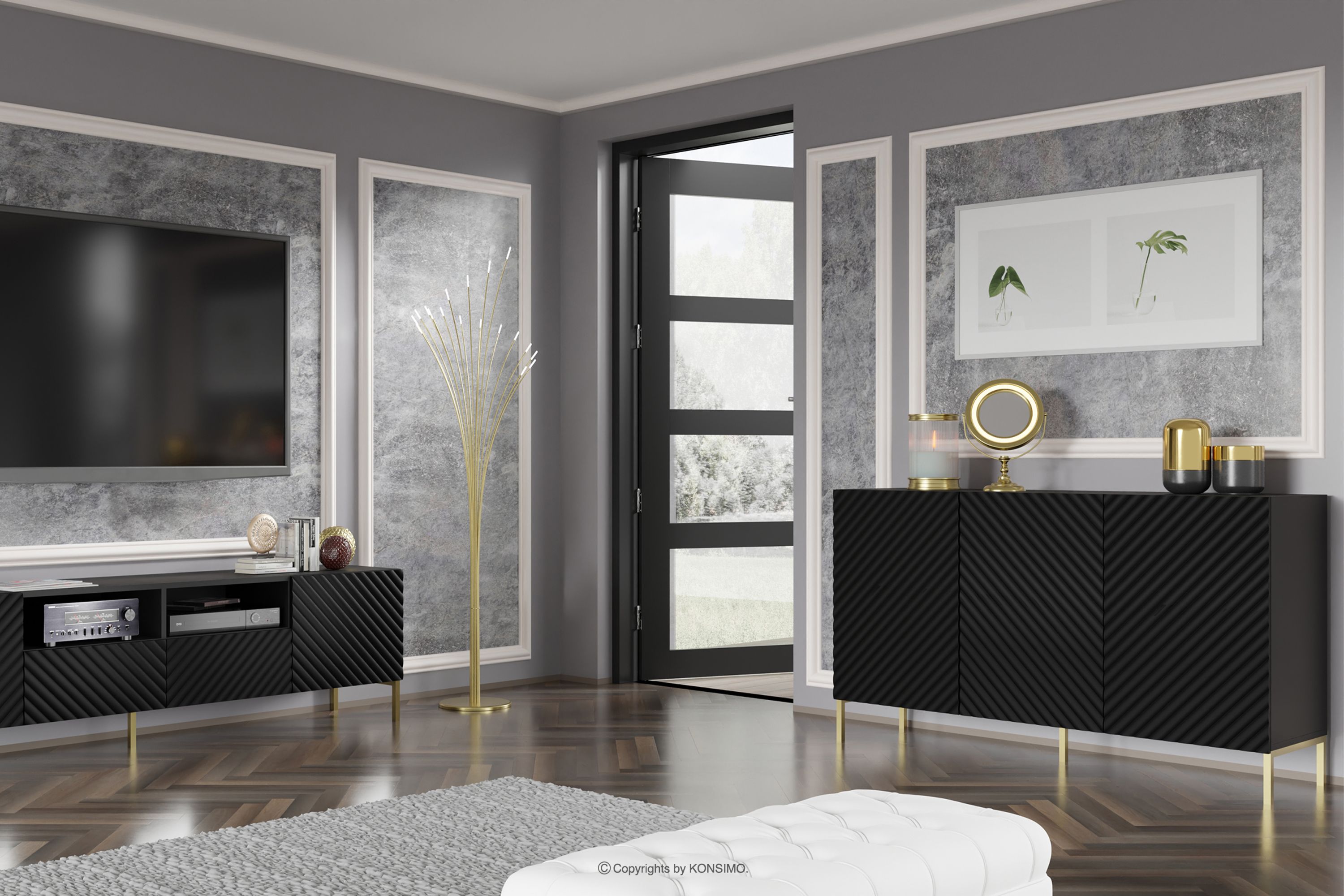ADENO zobacz całą kolekcję Duża nowoczesna czarna komoda na złotych nóżkach- kolor czarny