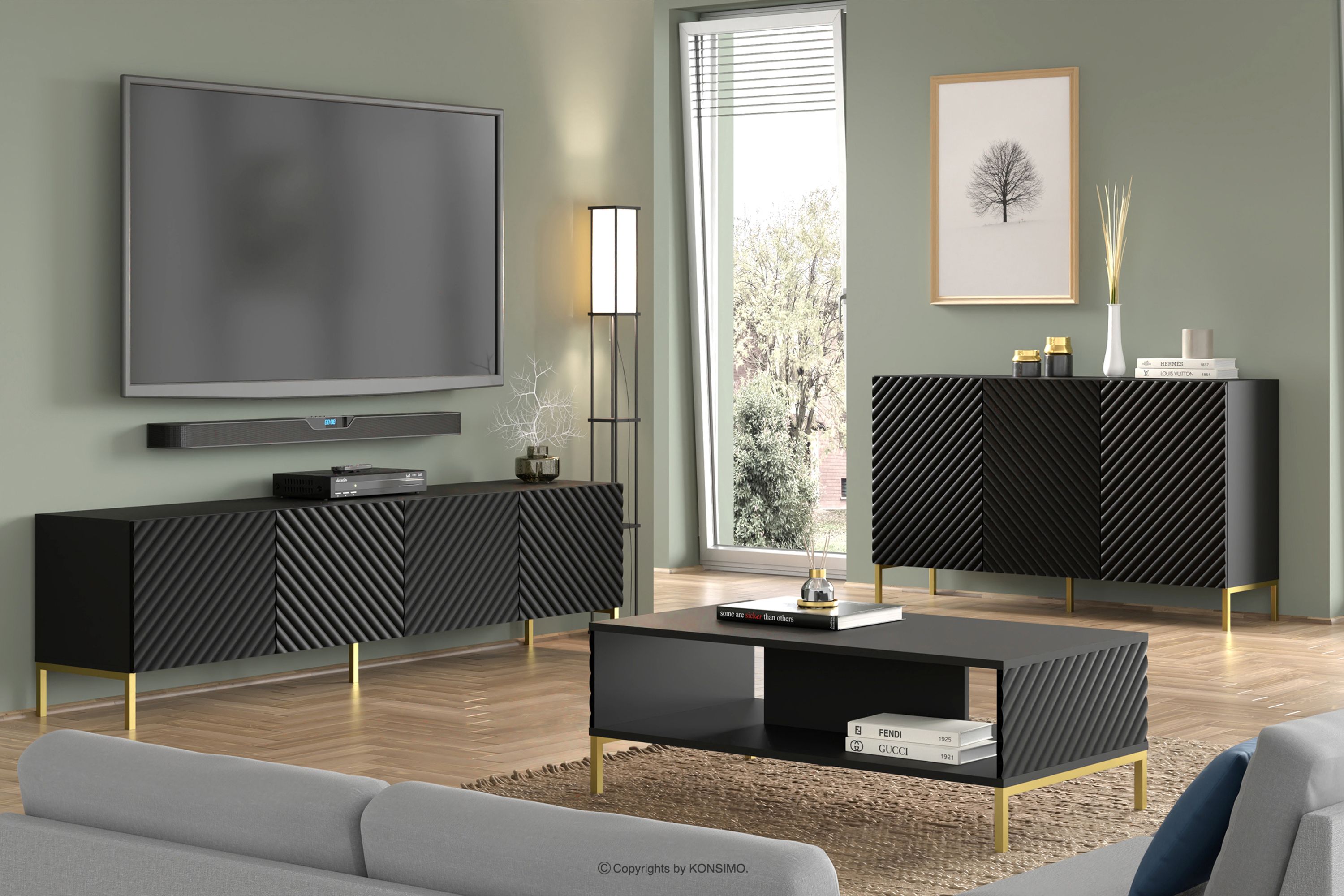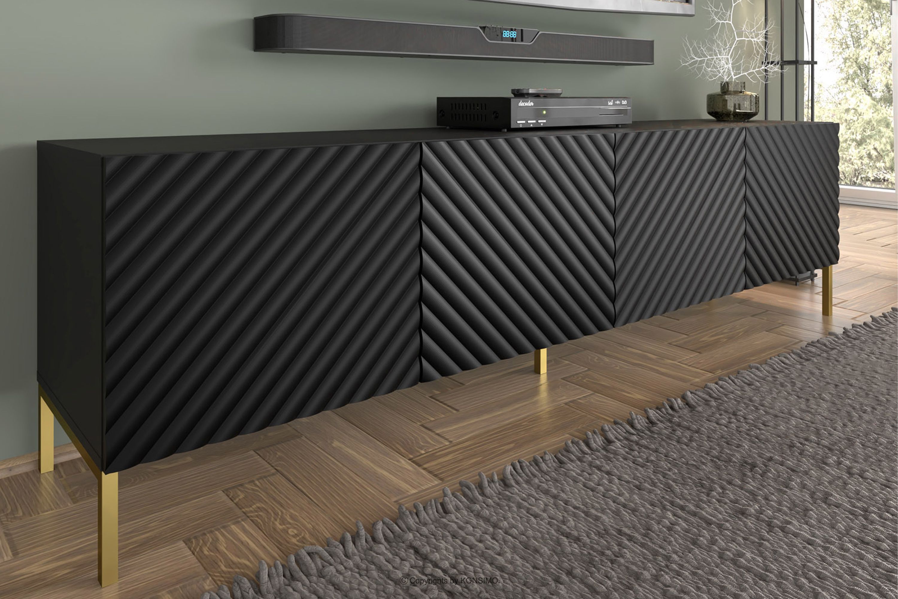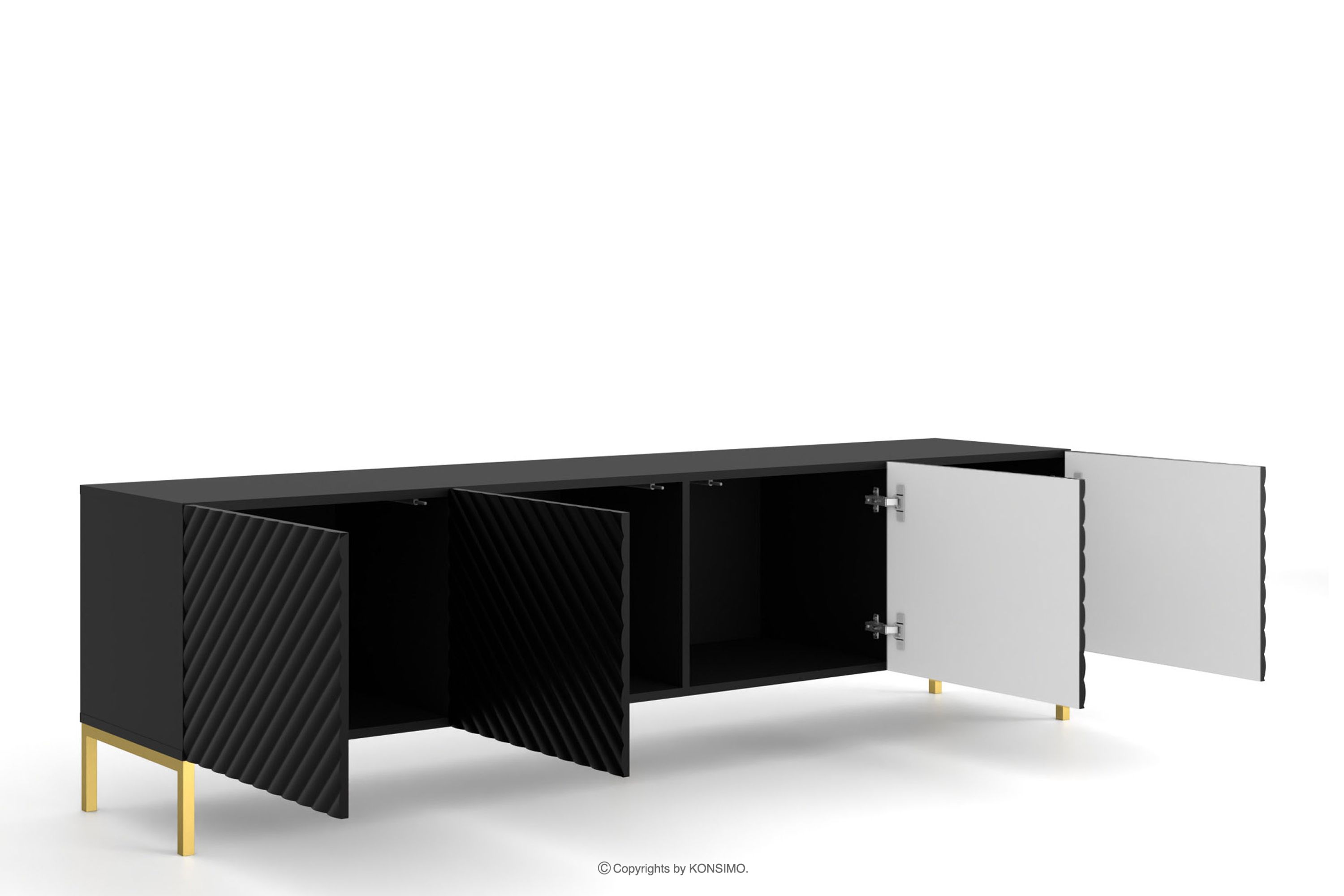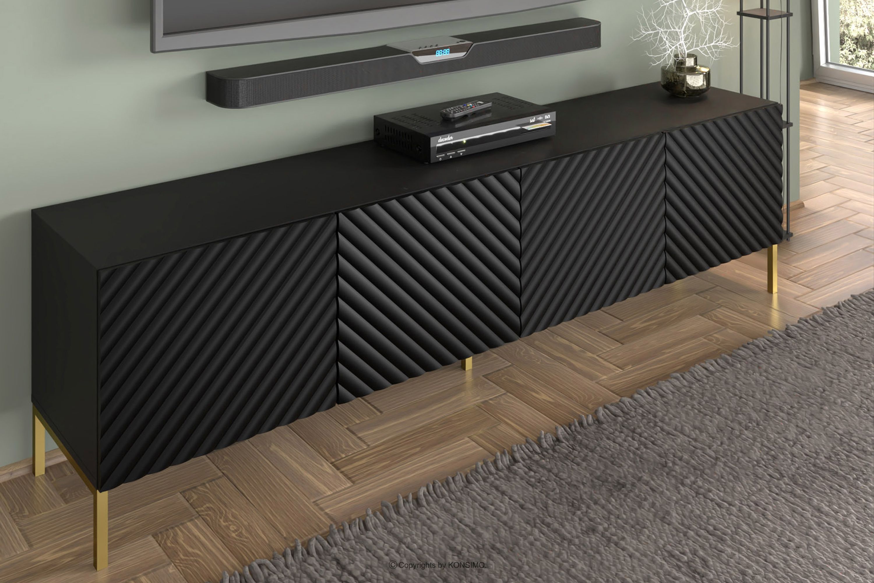 ADENO zobacz całą kolekcję Duża nowoczesna czarna szafka pod telewizor na złotych nóżkach- kolor czarny