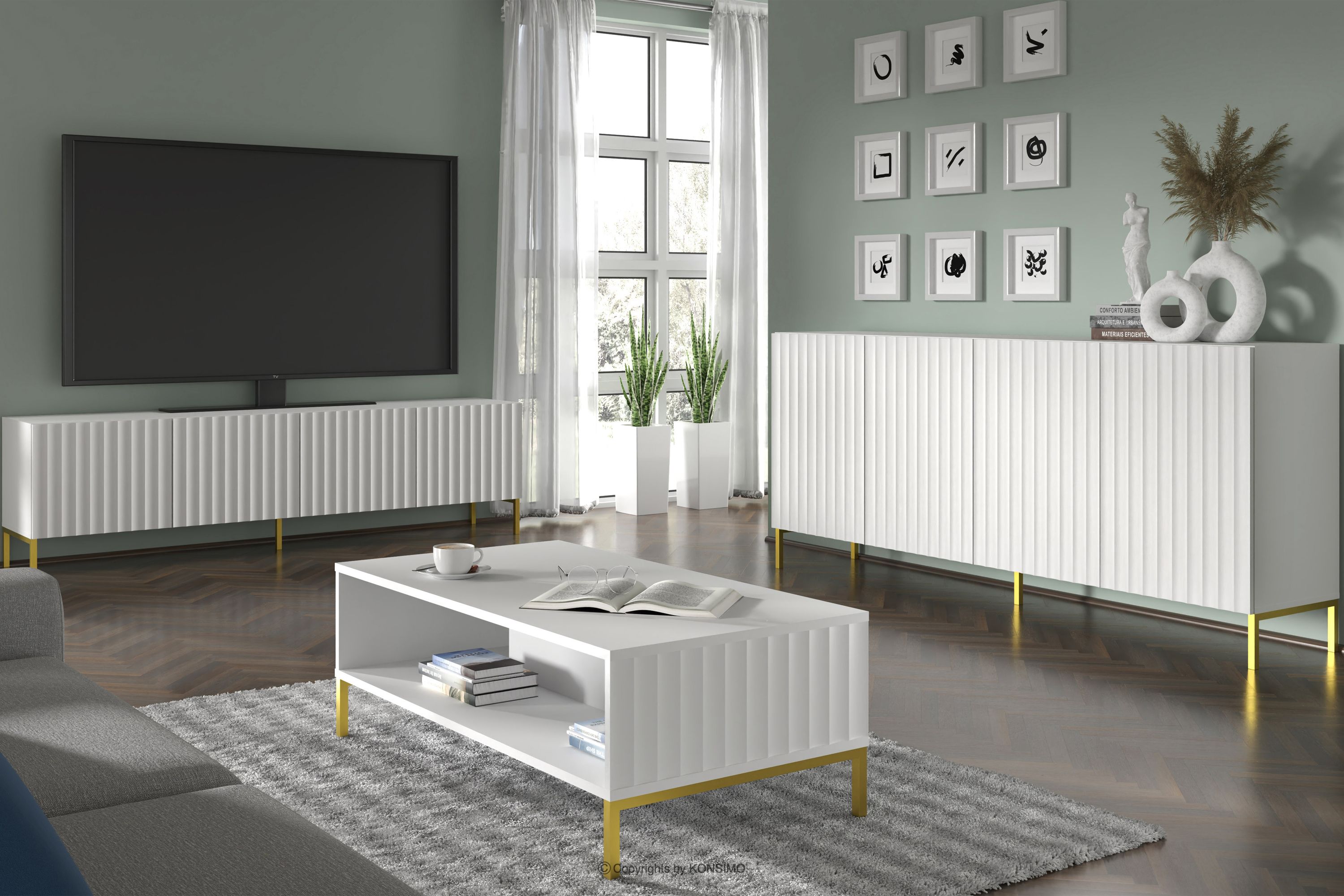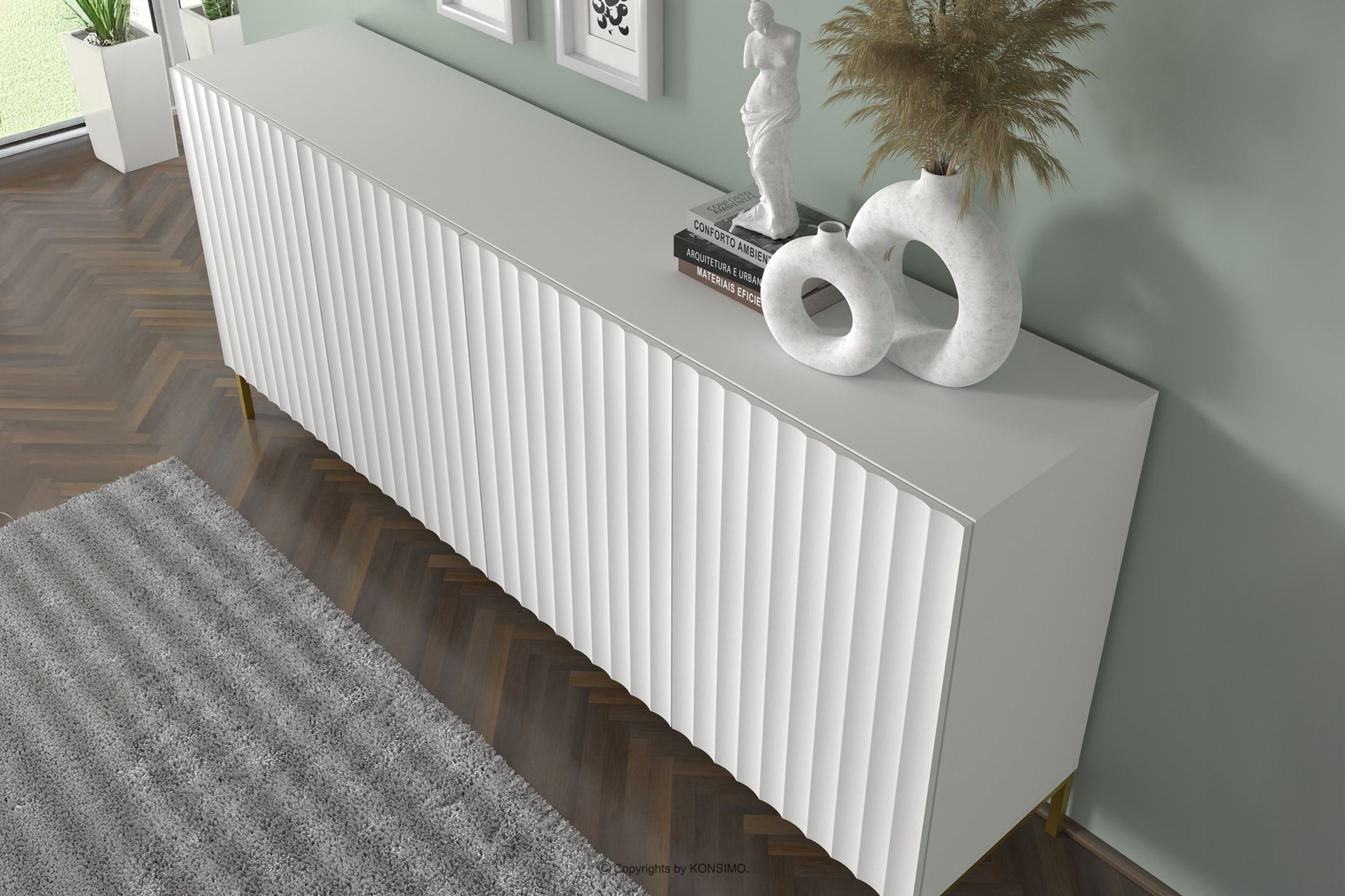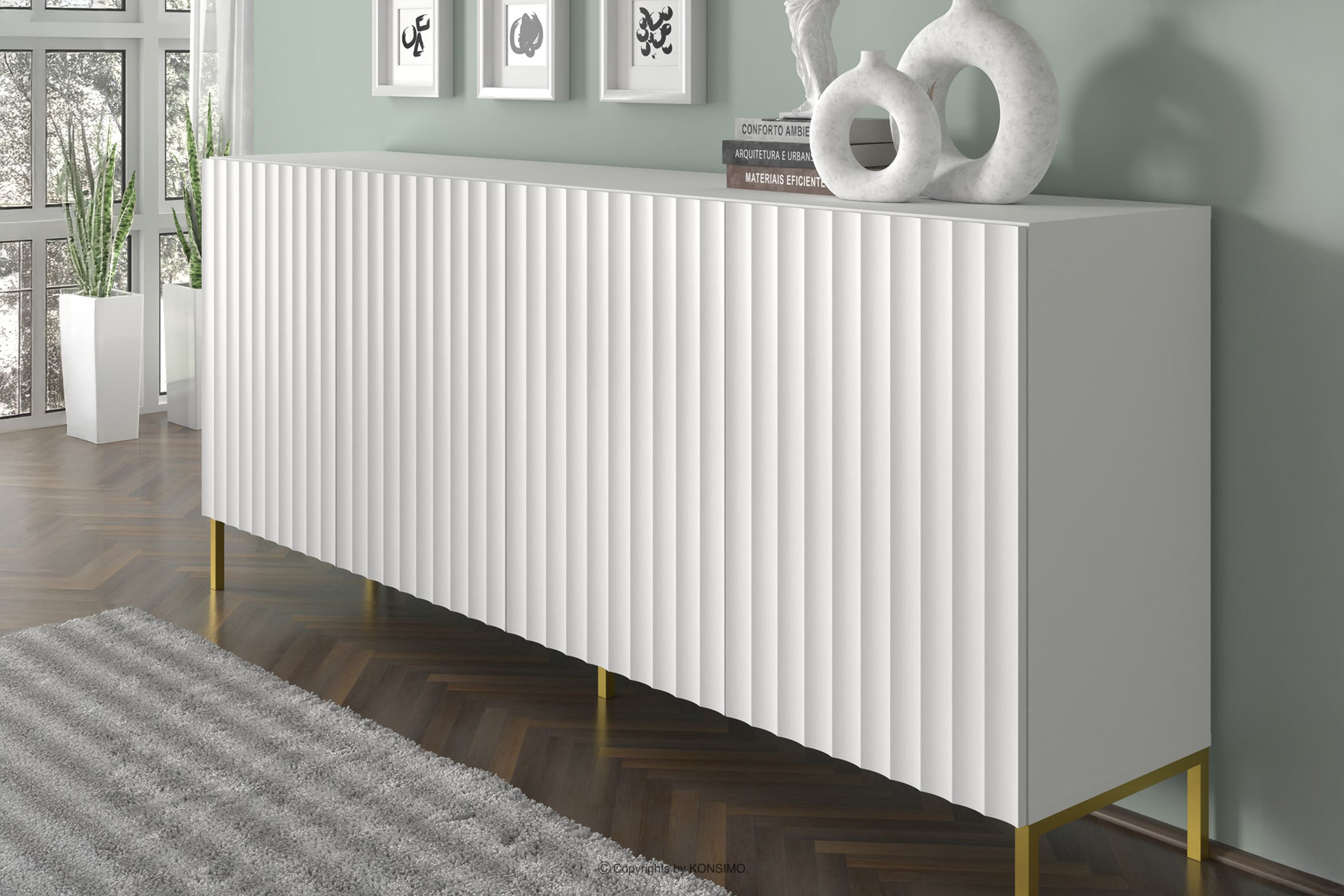 FALU zobacz całą kolekcję Duża komoda na złotych nóżkach biała- kolor biały