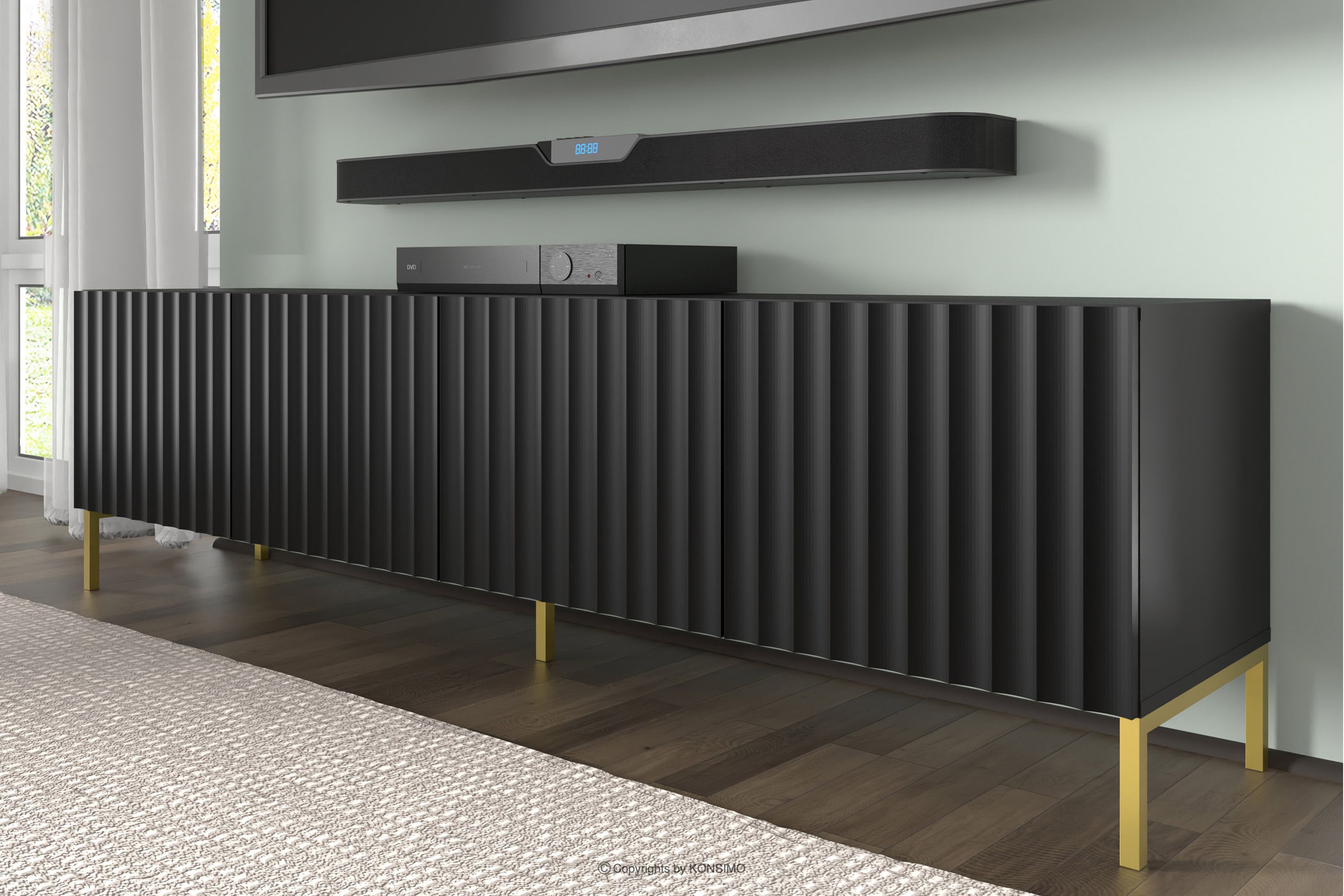 FALU zobacz całą kolekcję Szafka pod telewizor na złotych nóżkach 2 m czarna- kolor czarny