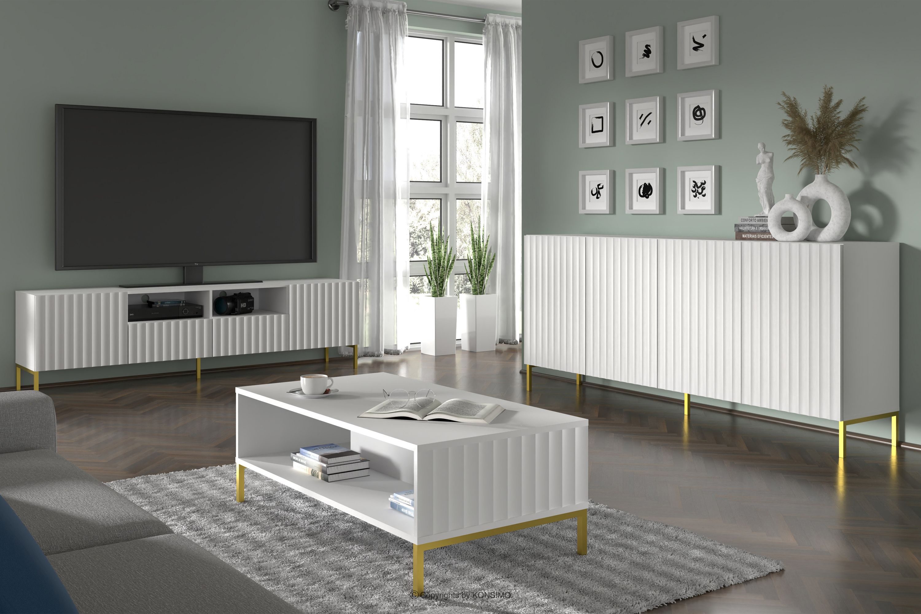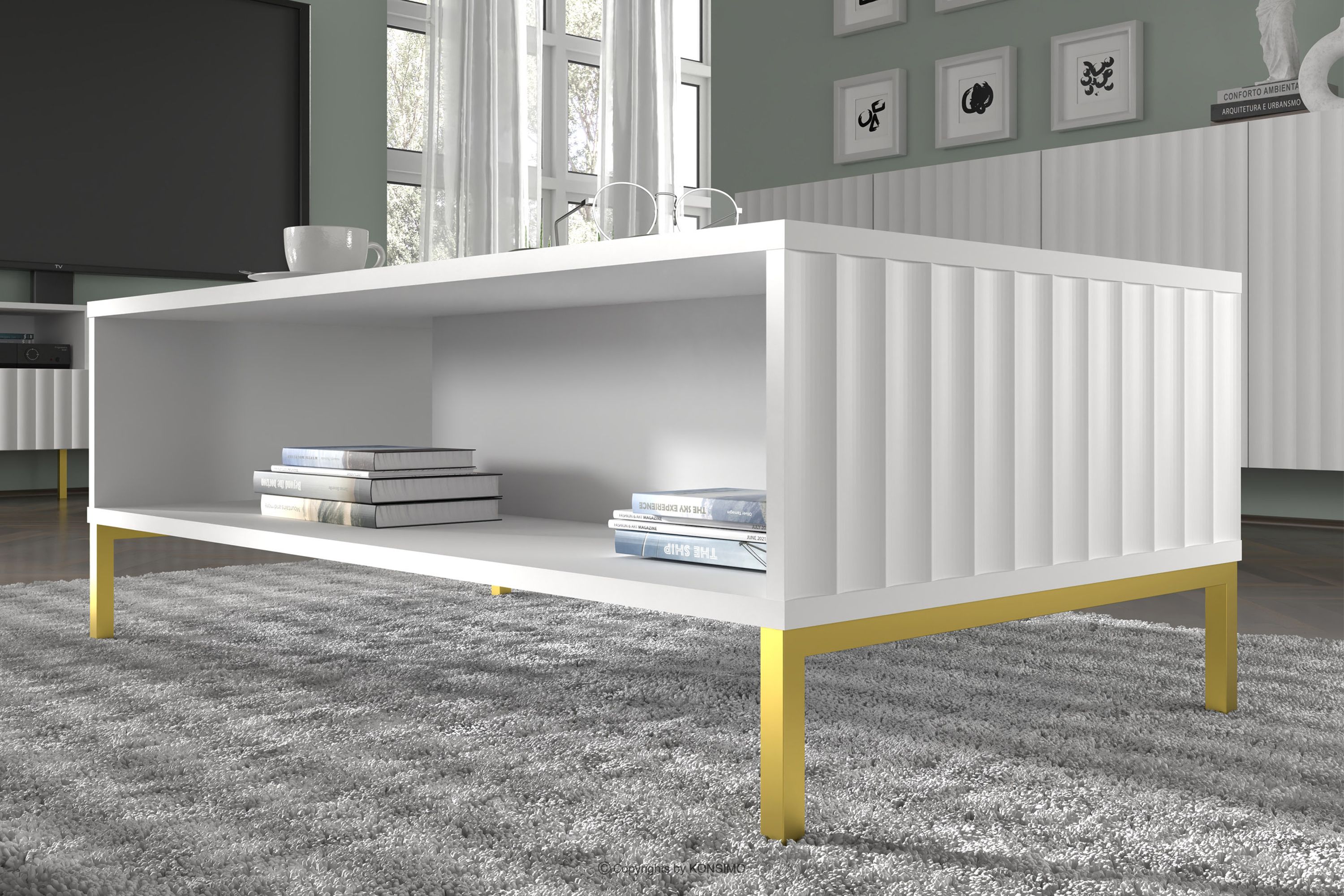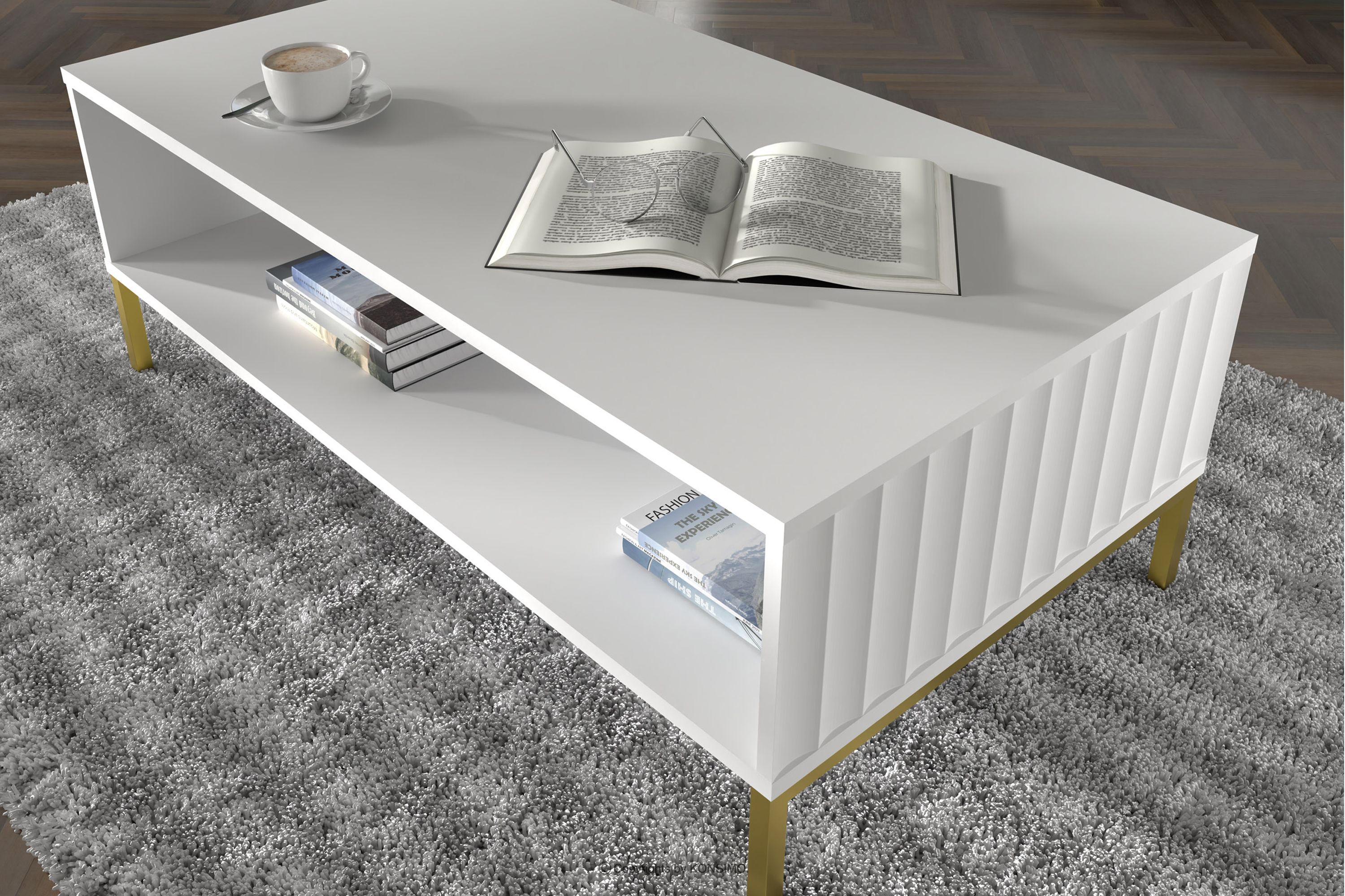 FALU zobacz całą kolekcję Biały stolik kawowy do salonu na złotych nóżkach- kolor biały