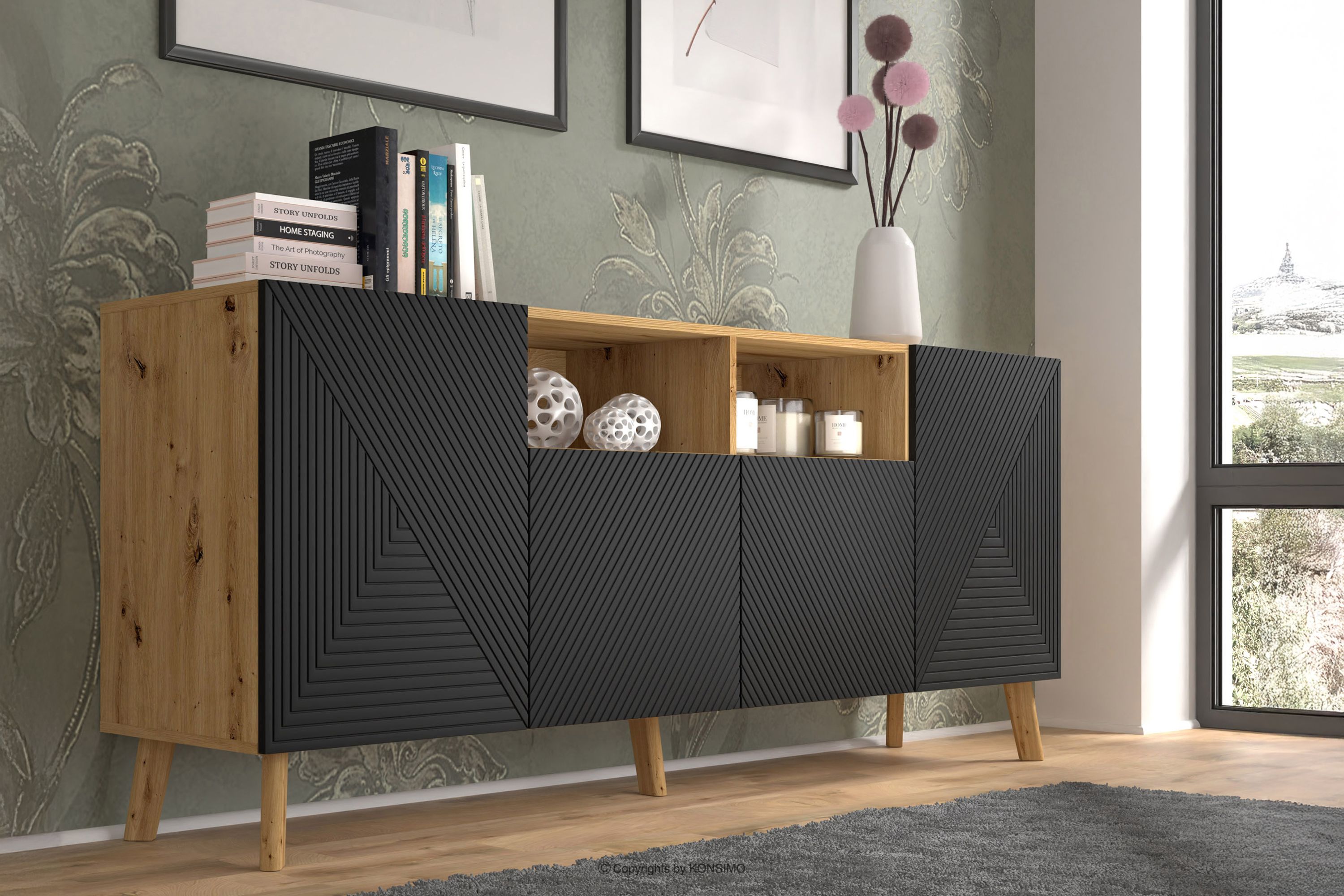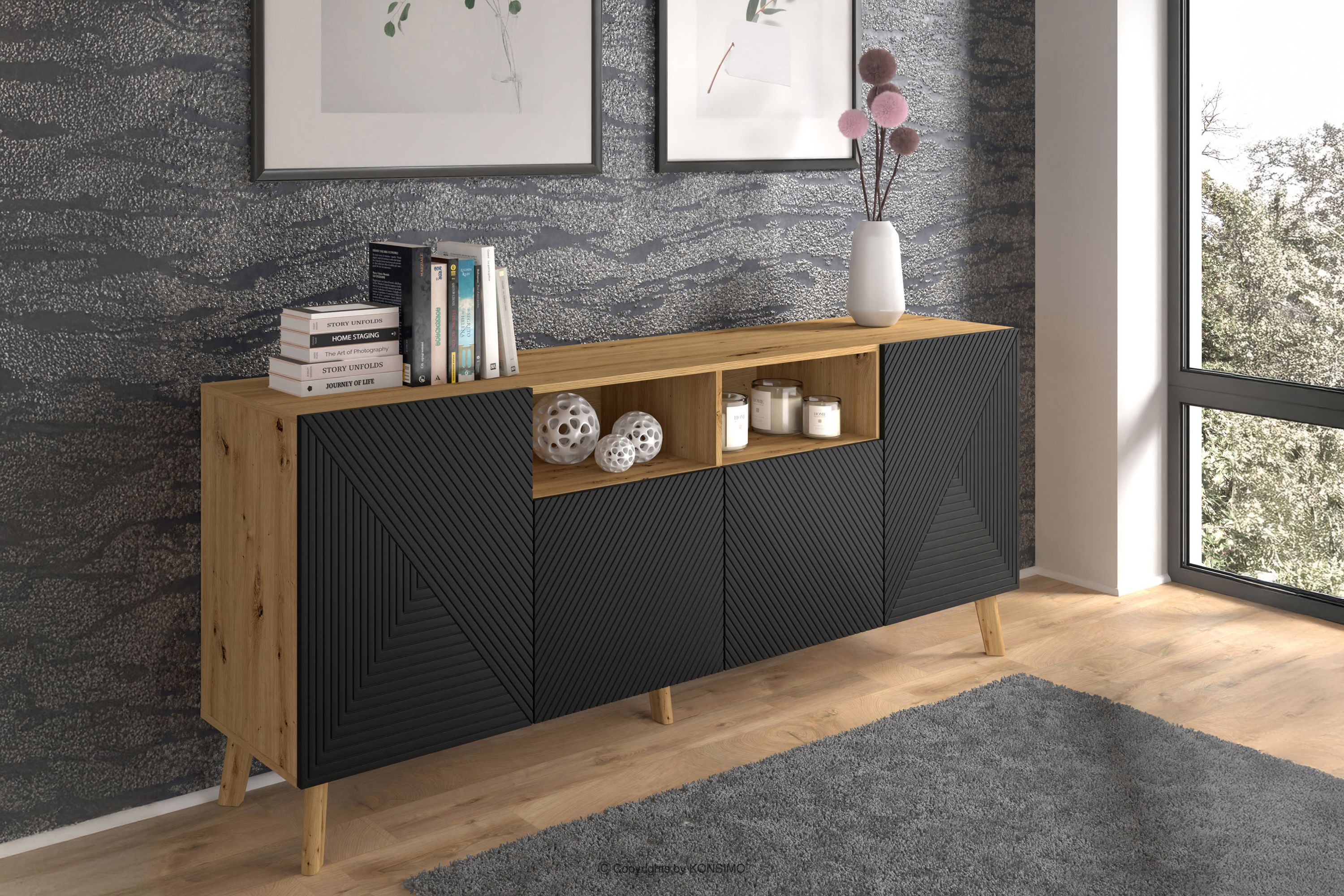 TUNDI zobacz całą kolekcję Duża komoda do salonu loft dąb artisan/czarny- kolor dąb artisan/czarny