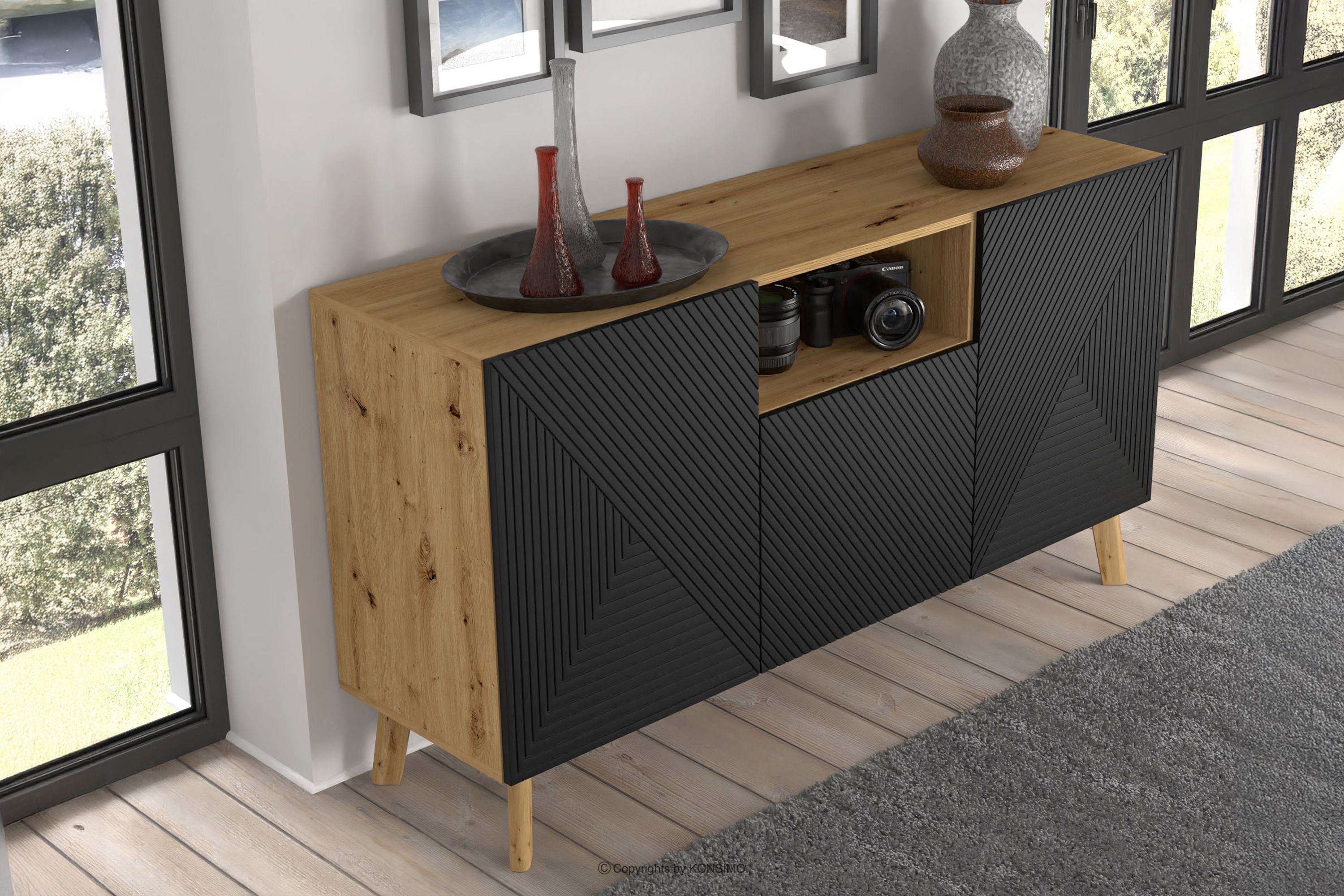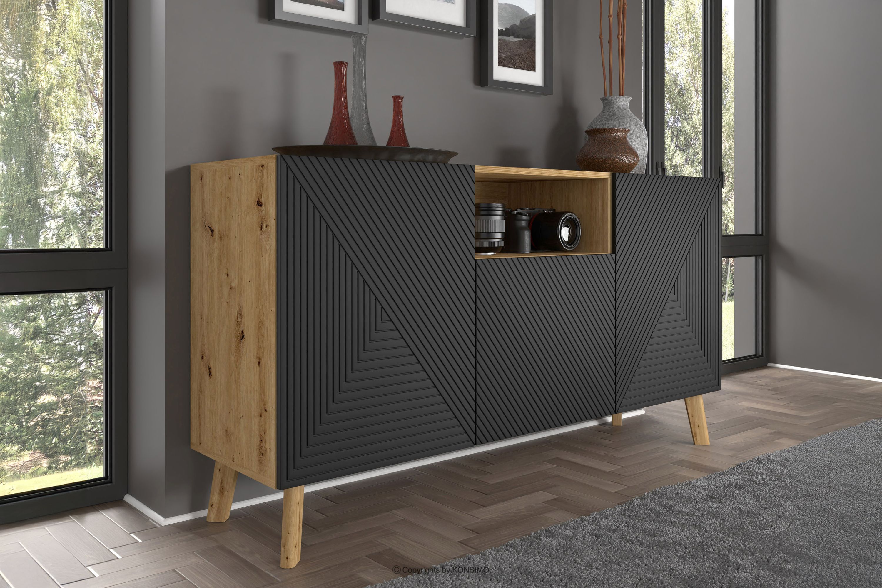 Komoda do salonu loft dąb artisan/czarny TUNDI - kolor dąb artisan/czarny