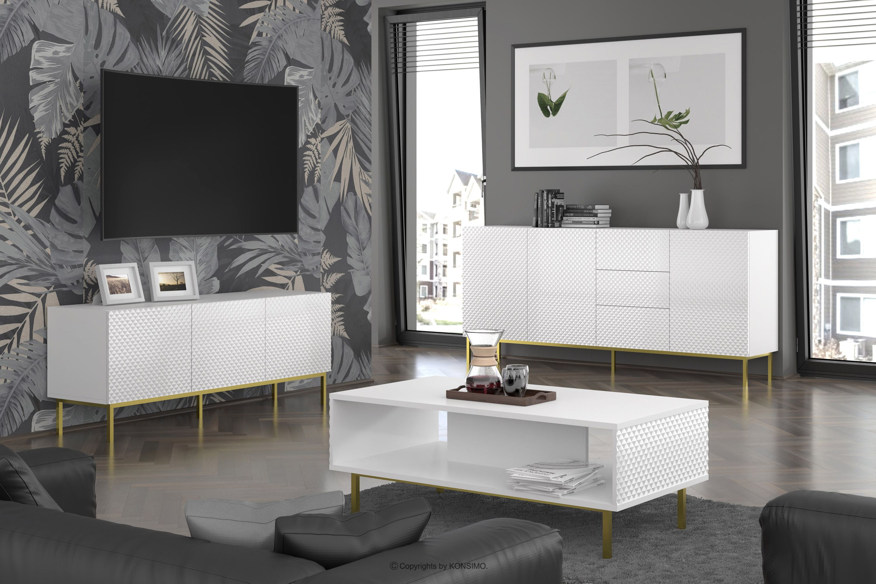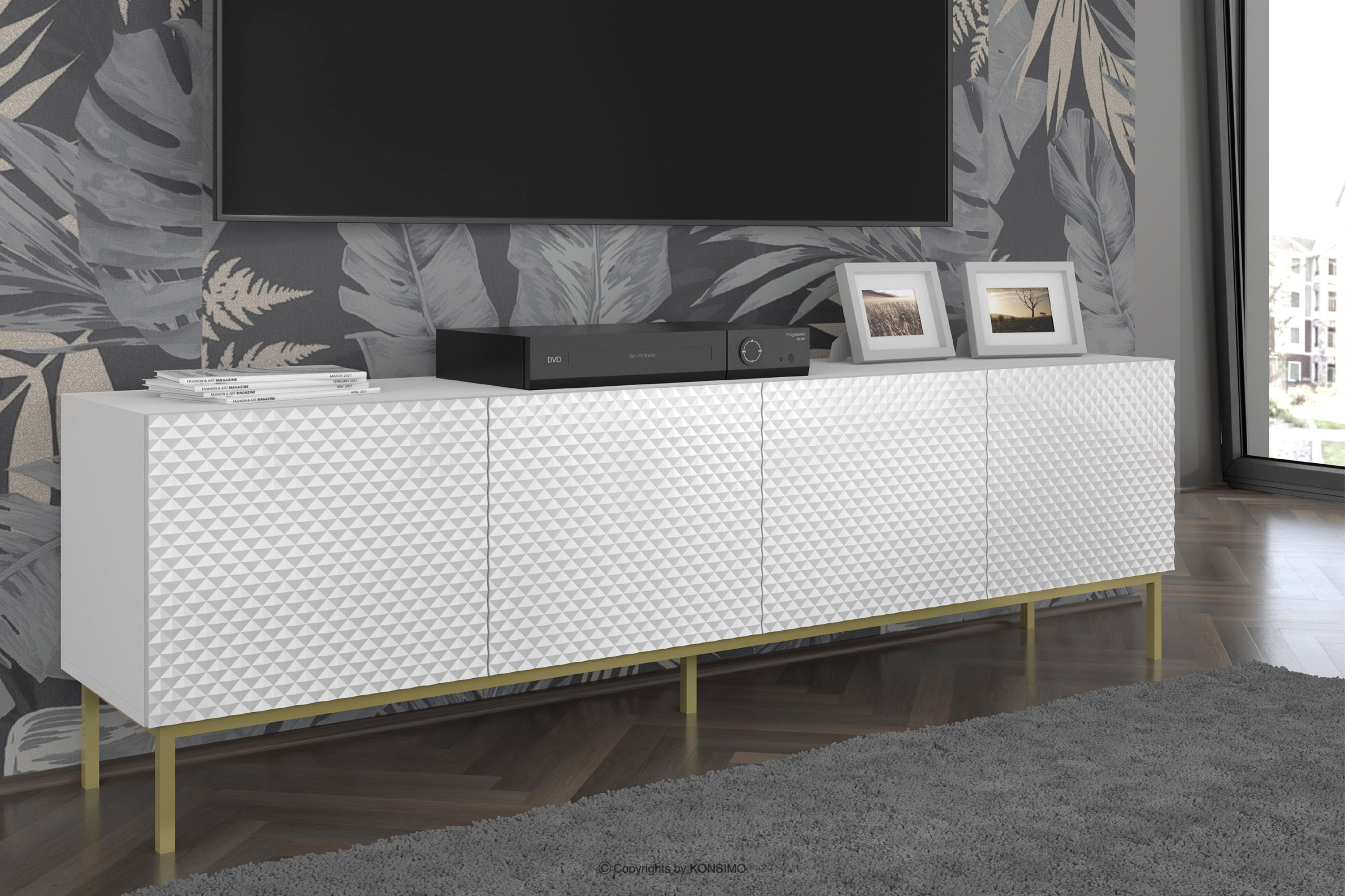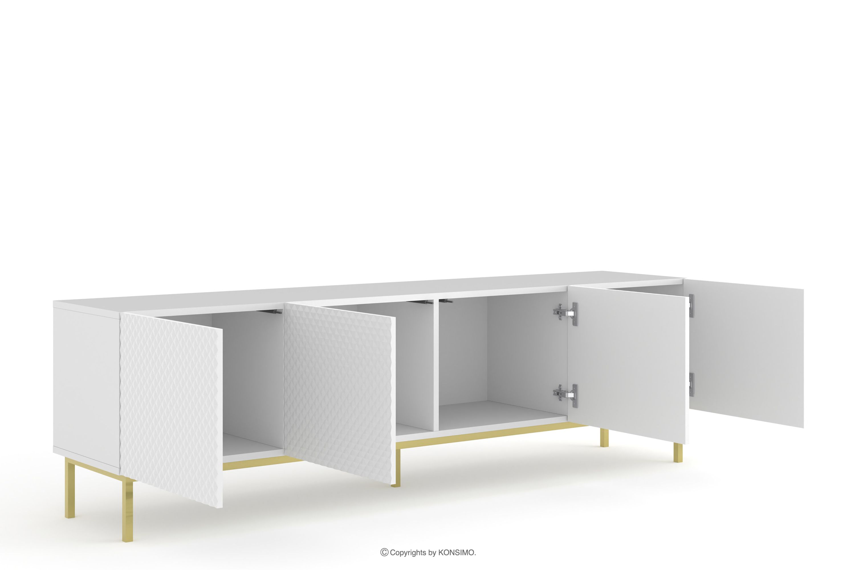 REMUS zobacz całą kolekcję Szafka RTV 200 cm na złotych nóżkach biała- kolor biały