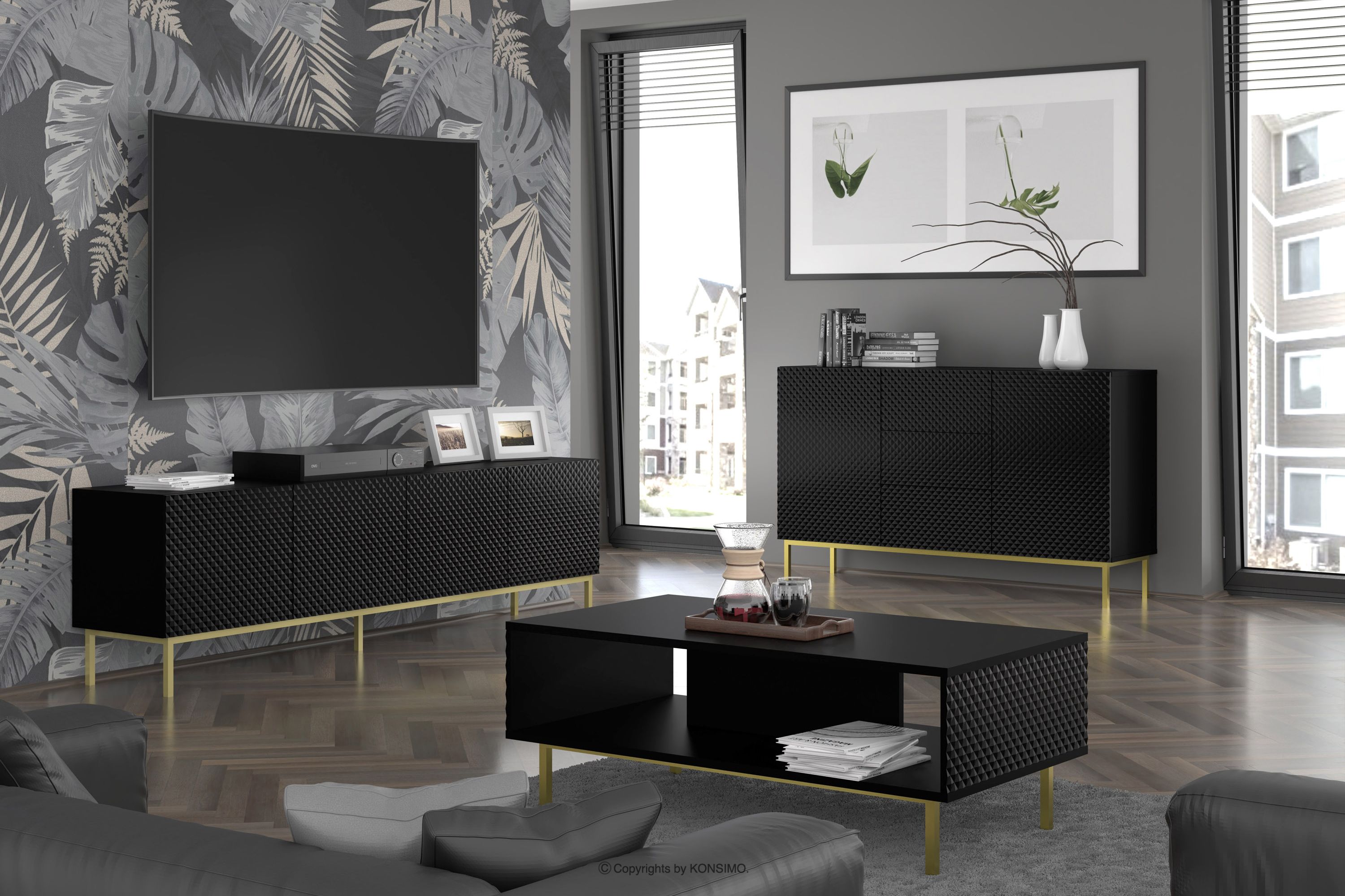 REMUS zobacz całą kolekcję Szafka RTV 150 cm na złotych nóżkach czarna- kolor czarny