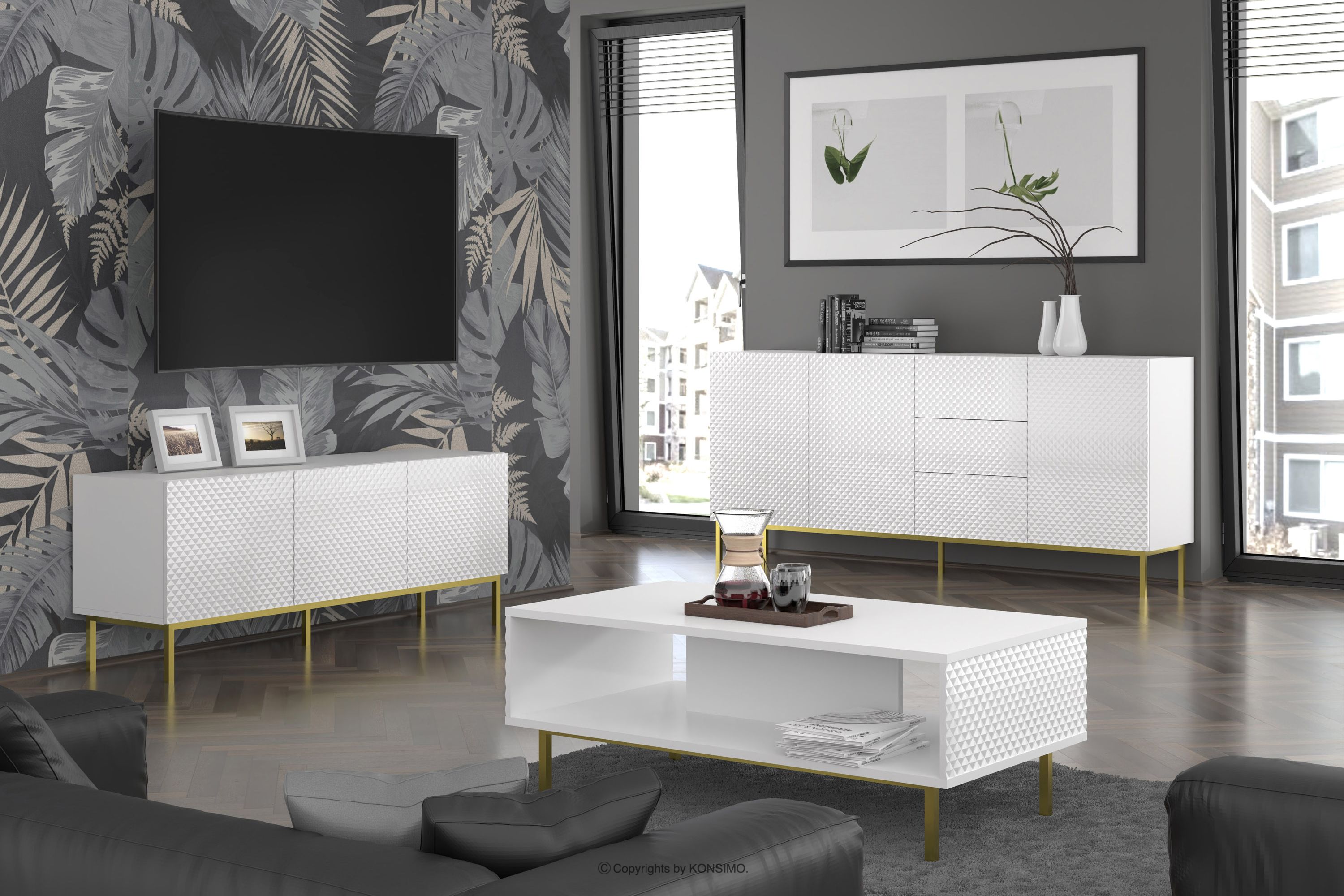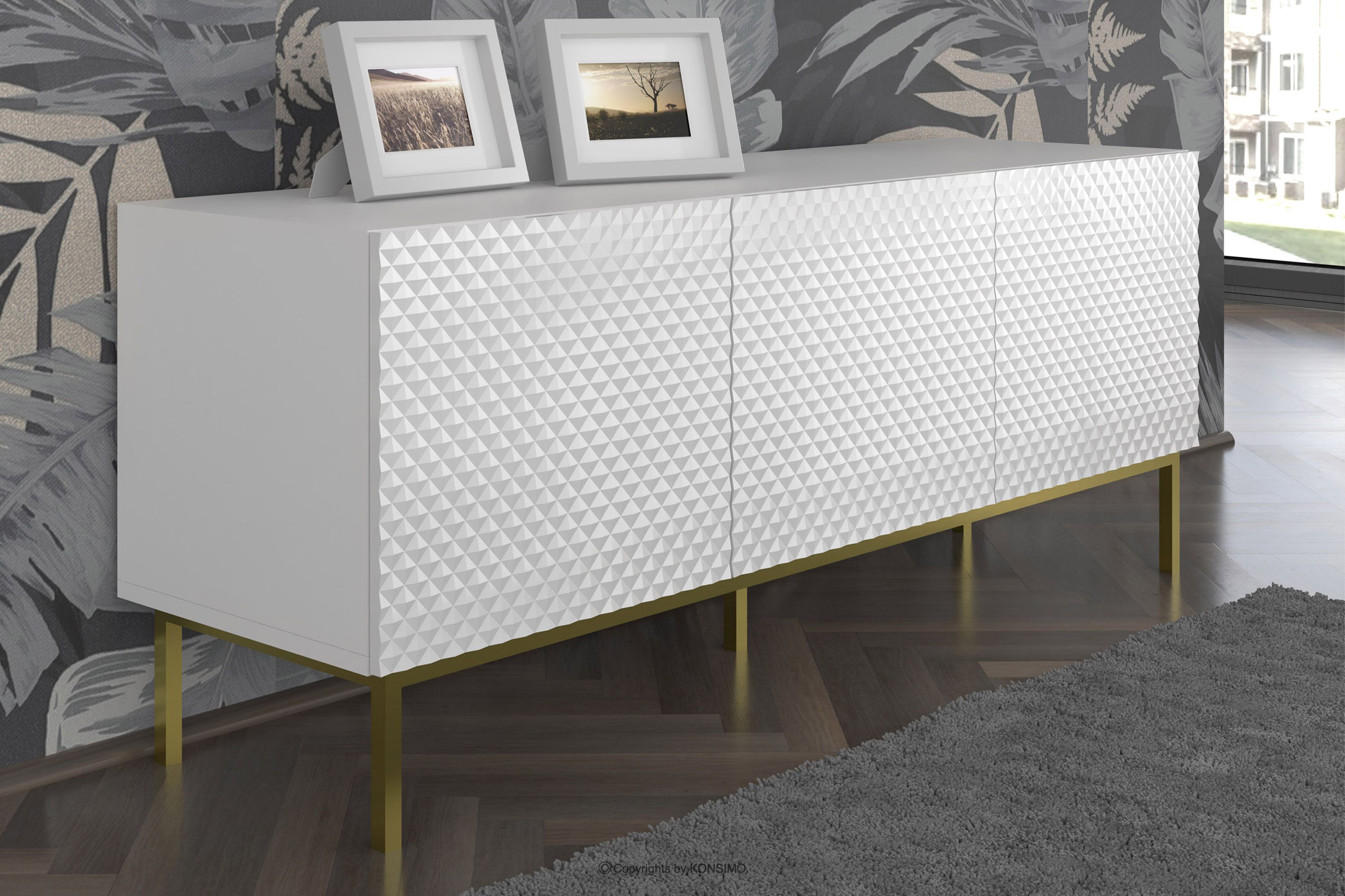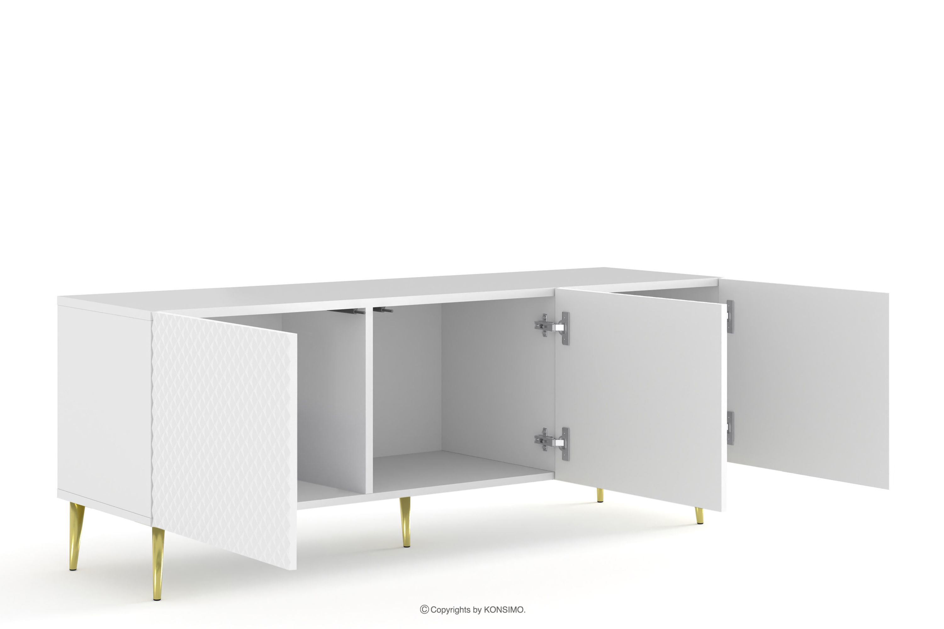 REMUS zobacz całą kolekcję Szafka RTV na złotych nóżkach biała- kolor biały
