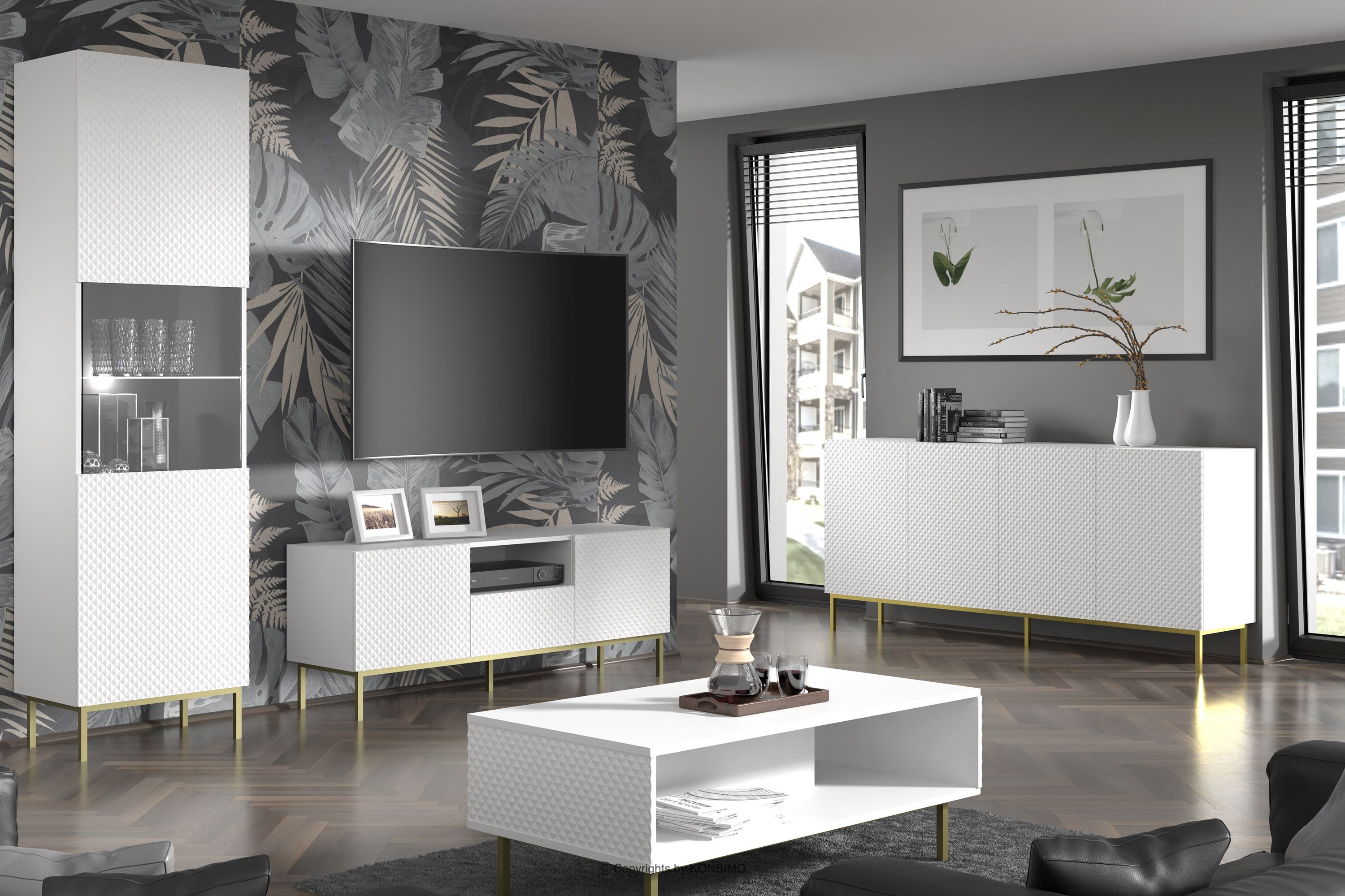 REMUS zobacz całą kolekcję Witryna na czarnych nóżkach biała- kolor biały