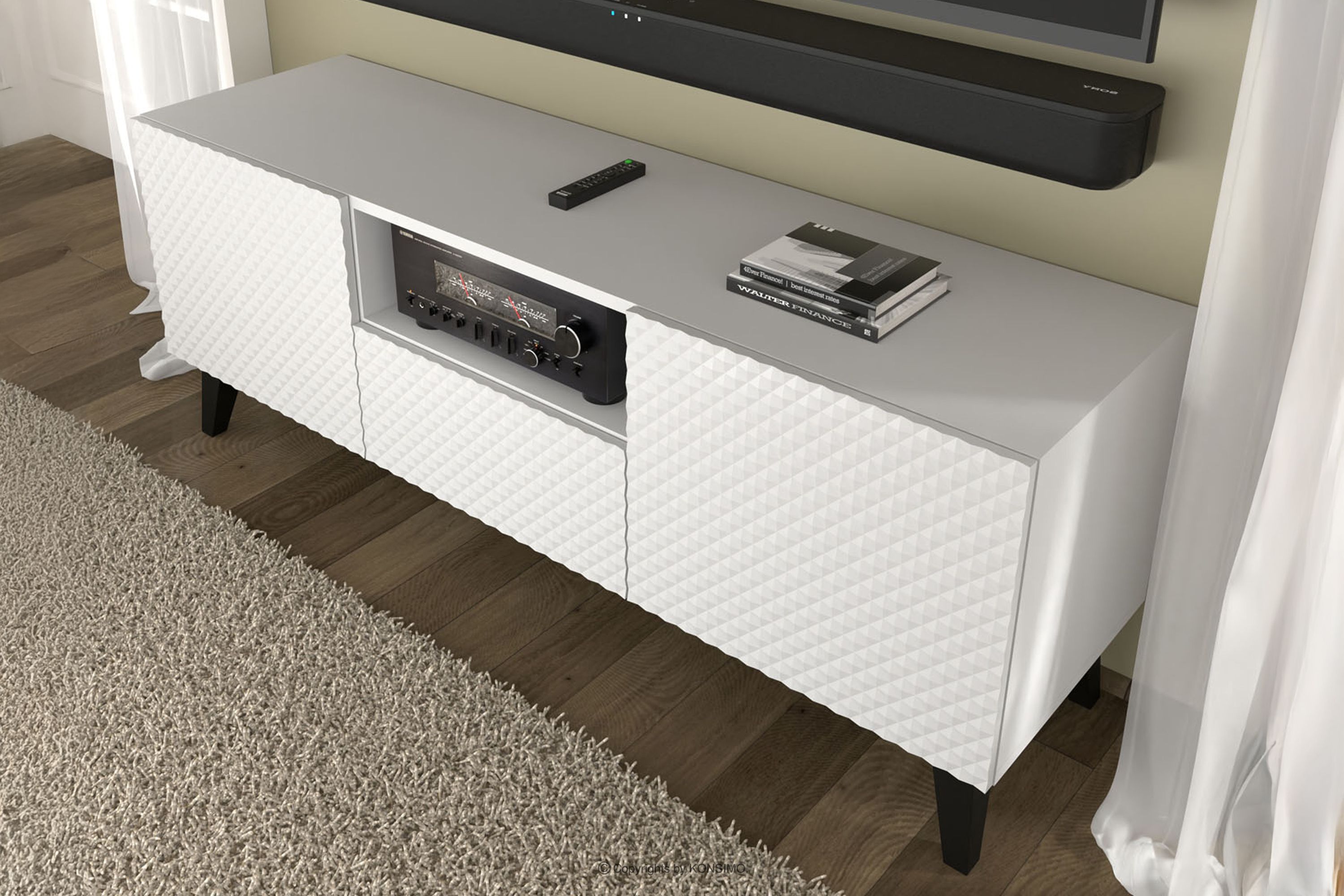 REMUS zobacz całą kolekcję Szafka pod TV na czarnych nóżkach biała- kolor biały