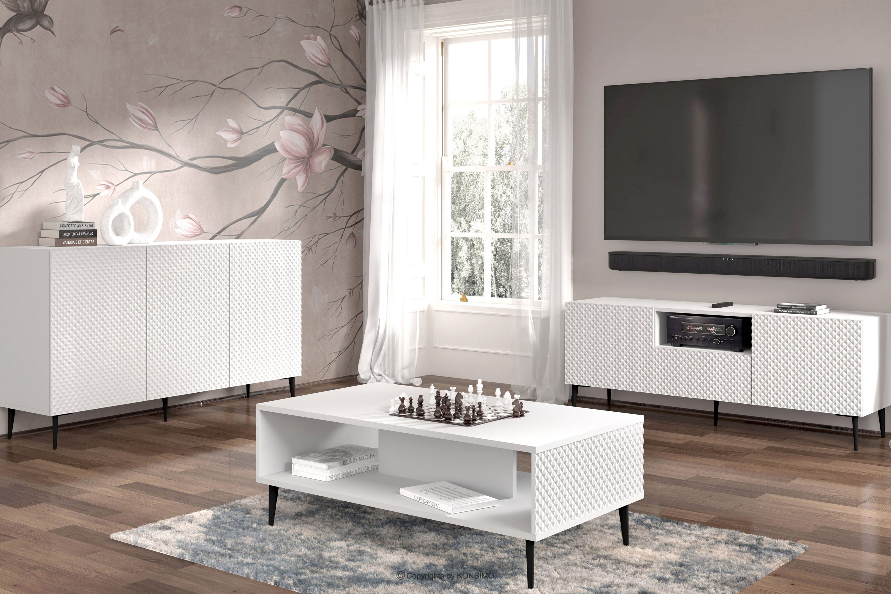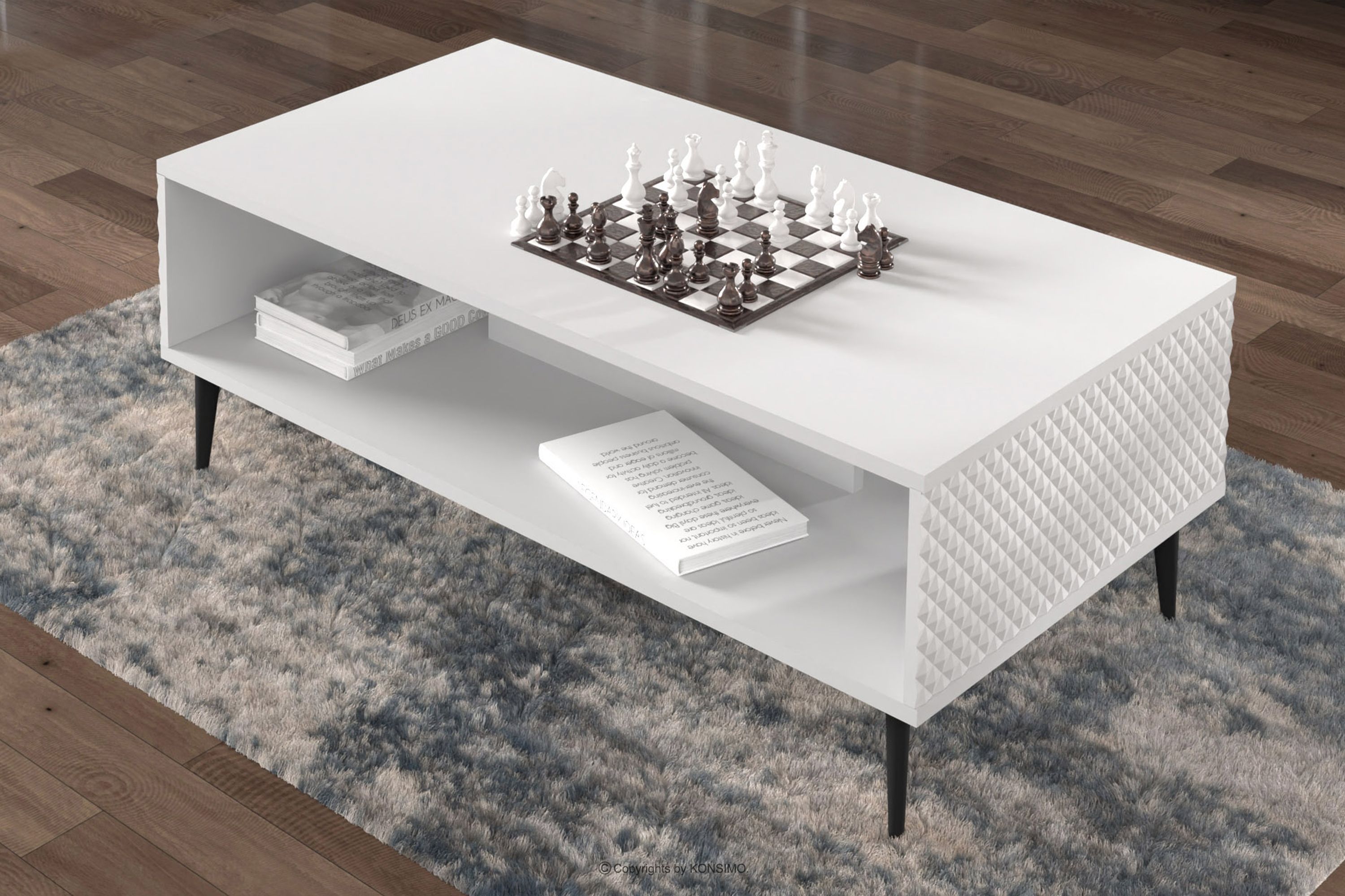 REMUS zobacz całą kolekcję Biały stolik kawowy na nóżkach z półką- kolor biały