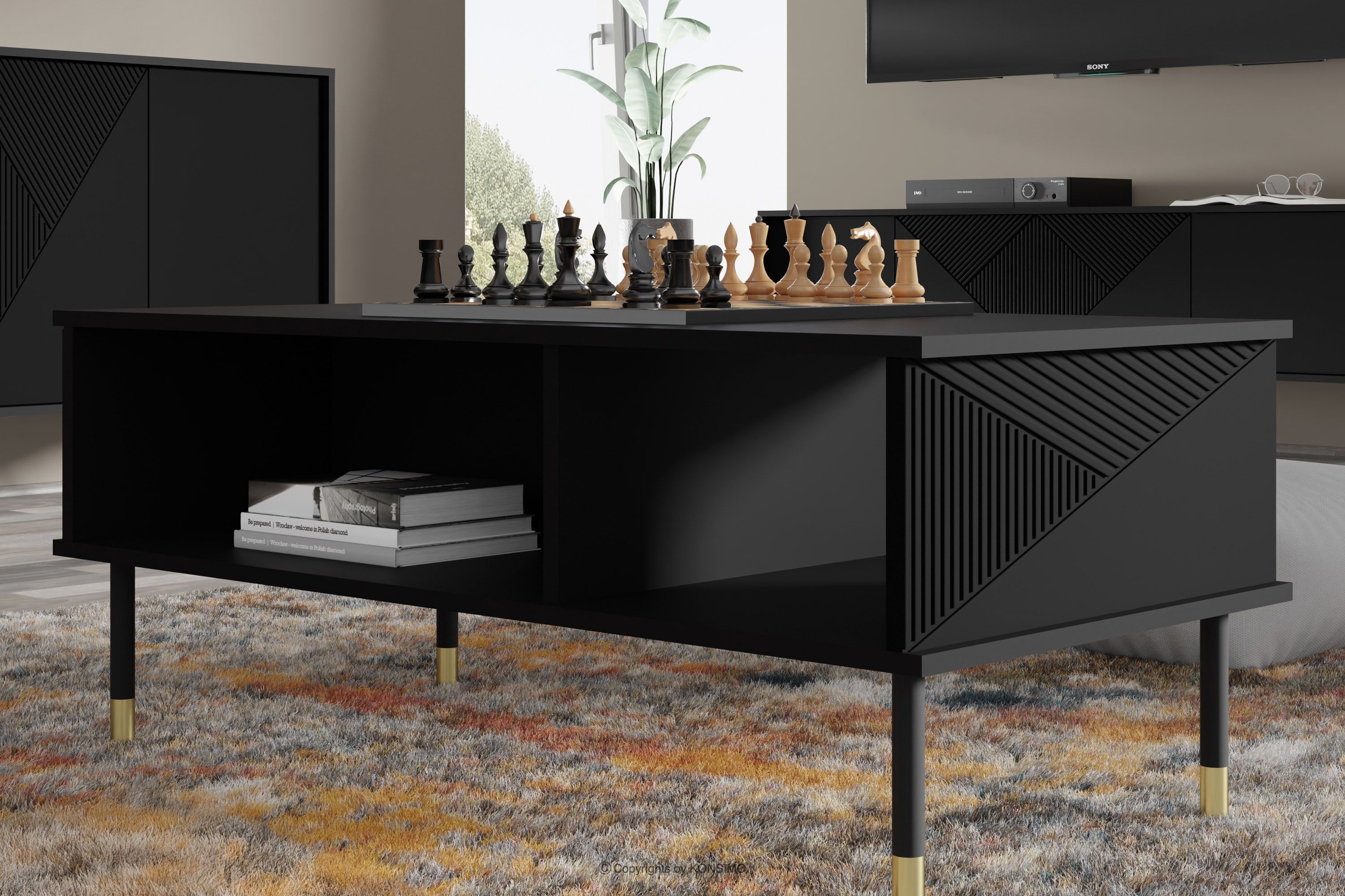 TULA zobacz całą kolekcję Elegancki stolik kawowy z półką czarny- kolor czarny