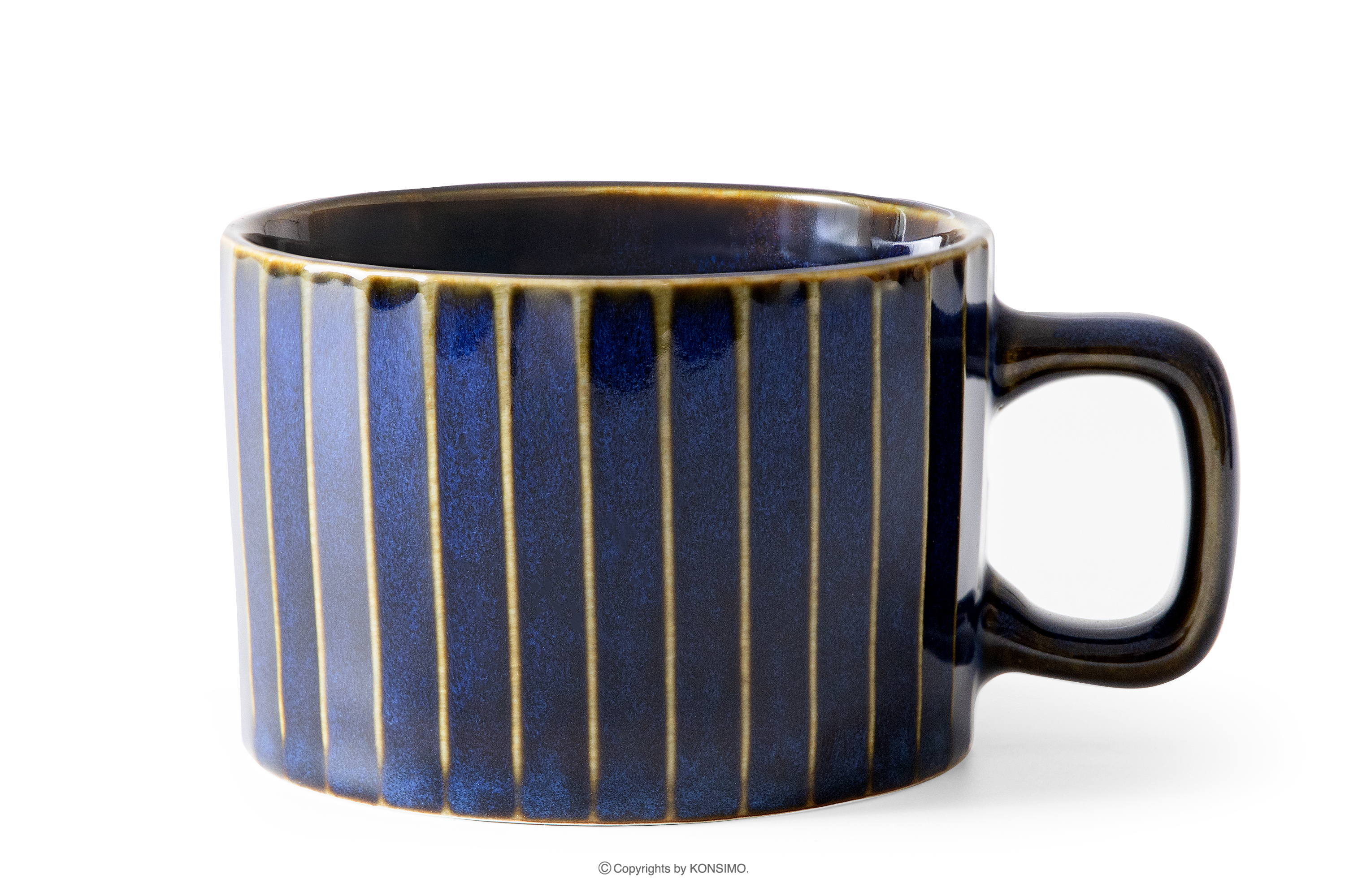 AD STRIPES, https://konsimo.pl/kolekcja/ad-stripes/ Zestaw kawowy cappuccino 6 os. (18 el.) porcelana reaktywna granatowy granatowy - zdjęcie