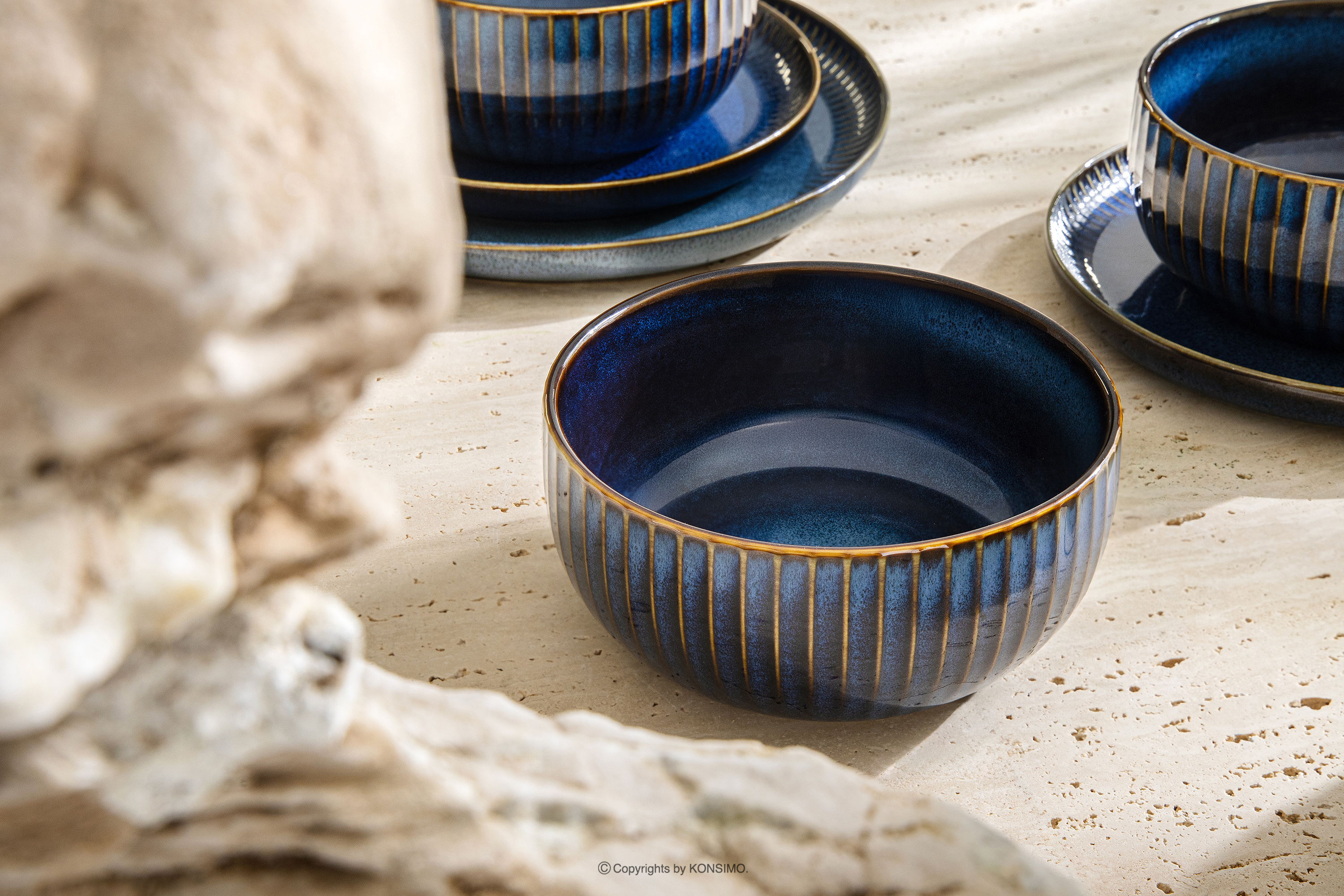 AD STRIPES, https://konsimo.pl/kolekcja/ad-stripes/ Zestaw obiadowy 6 os. (18 el.) porcelana reaktywna granatowy granatowy - zdjęcie