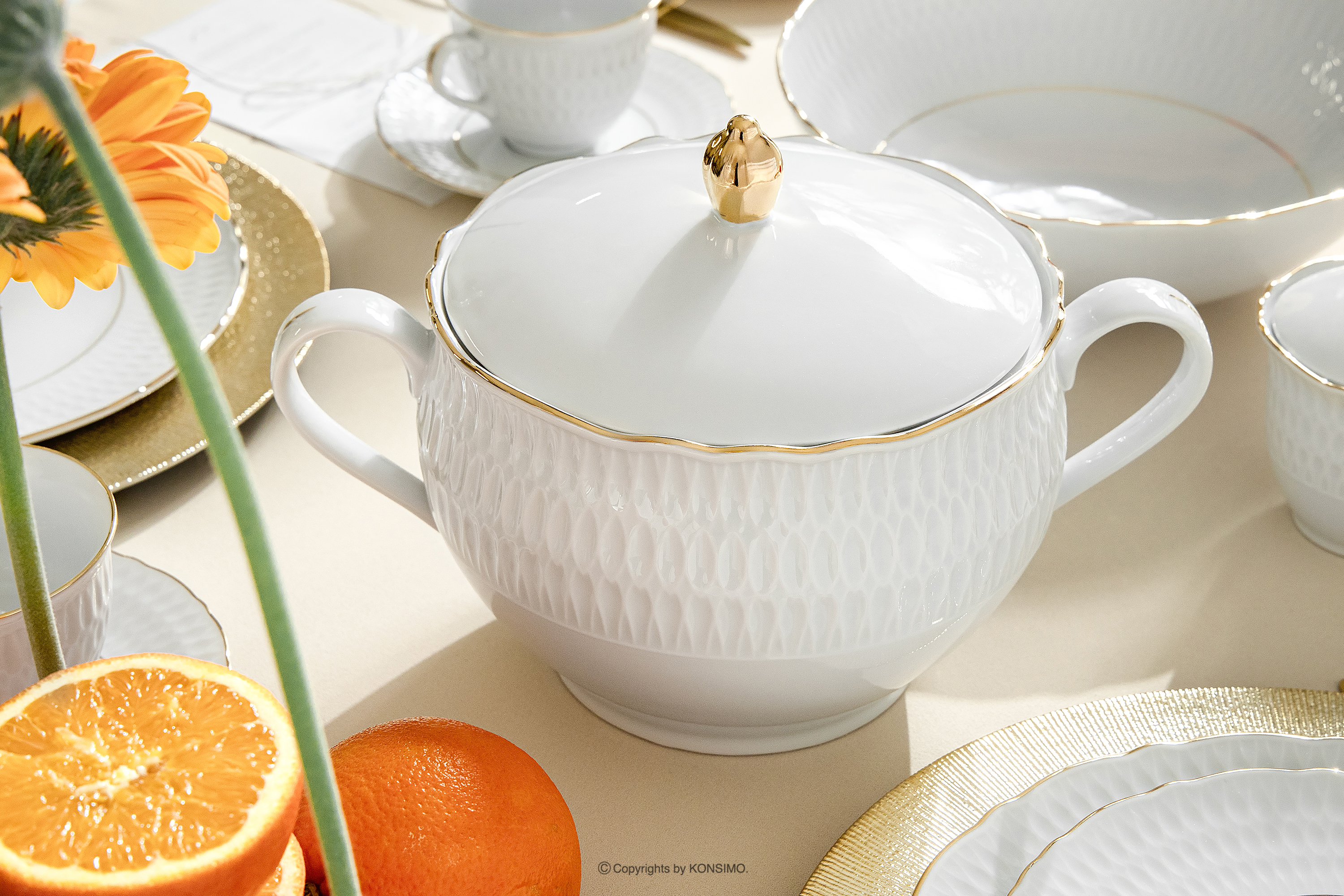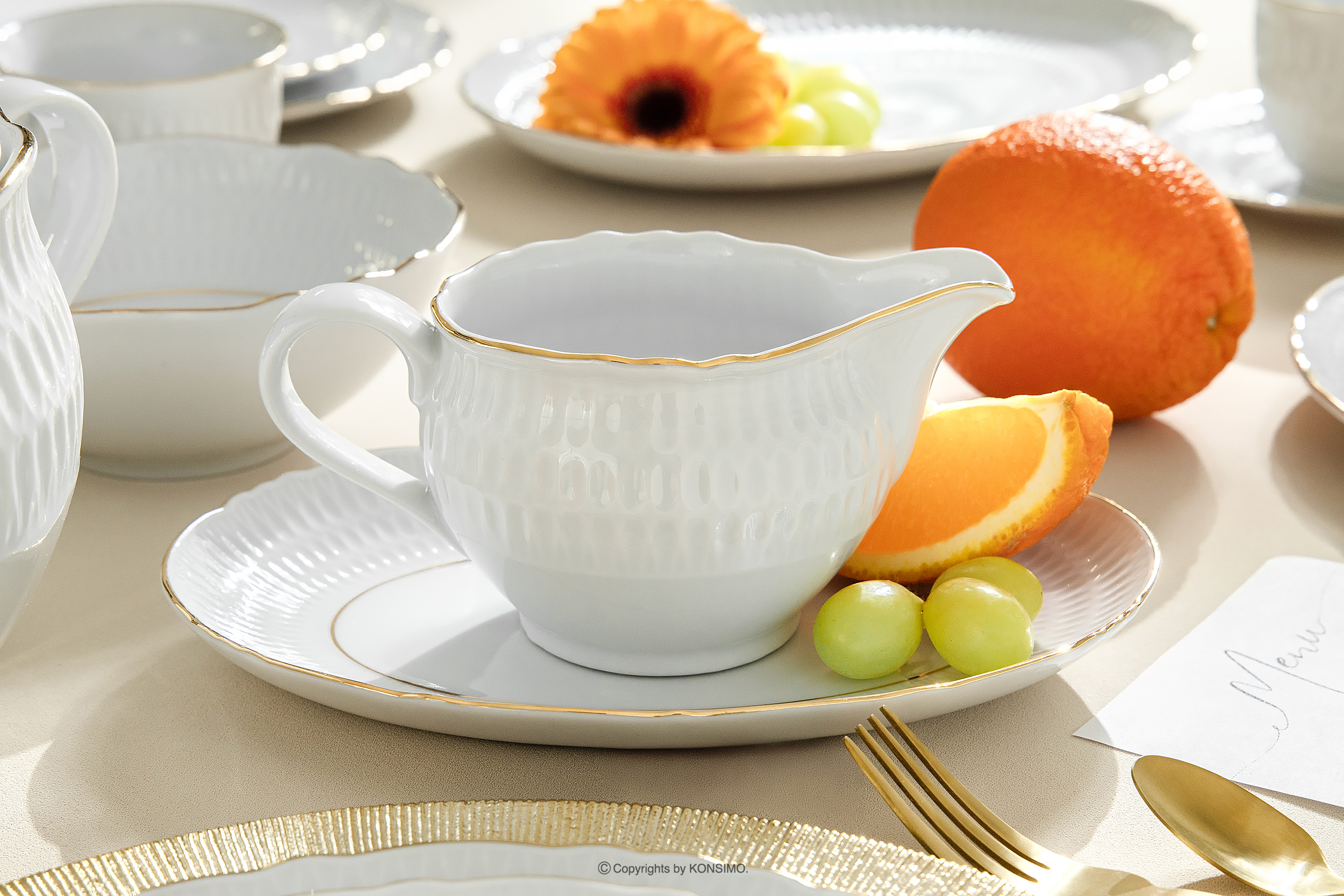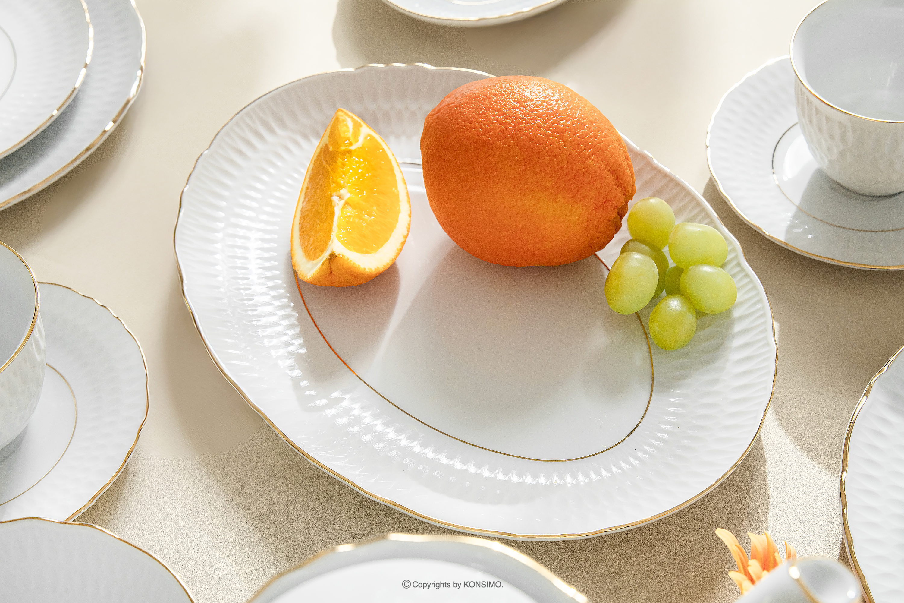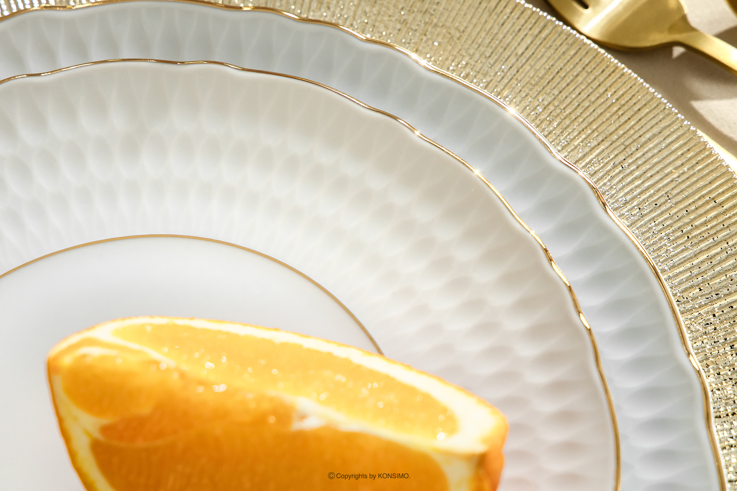 Elegancki zestaw obiadowy z porcelany złota linia 6 os. (25 el.) SOFIA ZŁOTA LINIA - kolor biały/złoty