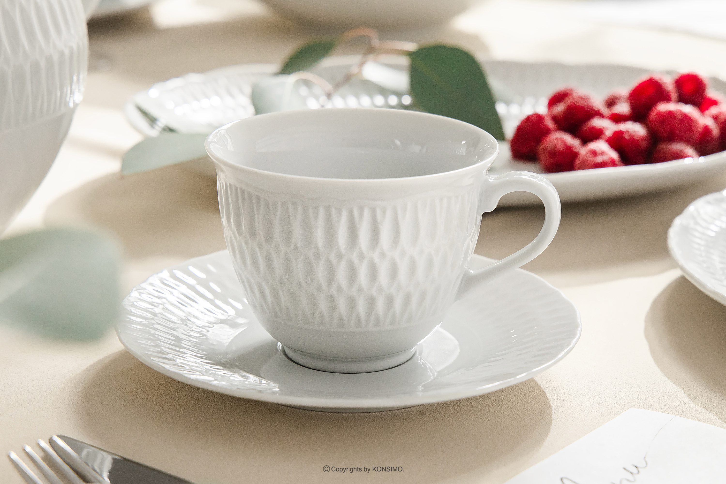 SOFIA zobacz całą kolekcję Elegancki zestaw obiadowo-kawowy z porcelany biały 6 os. (30 el.)- kolor biały