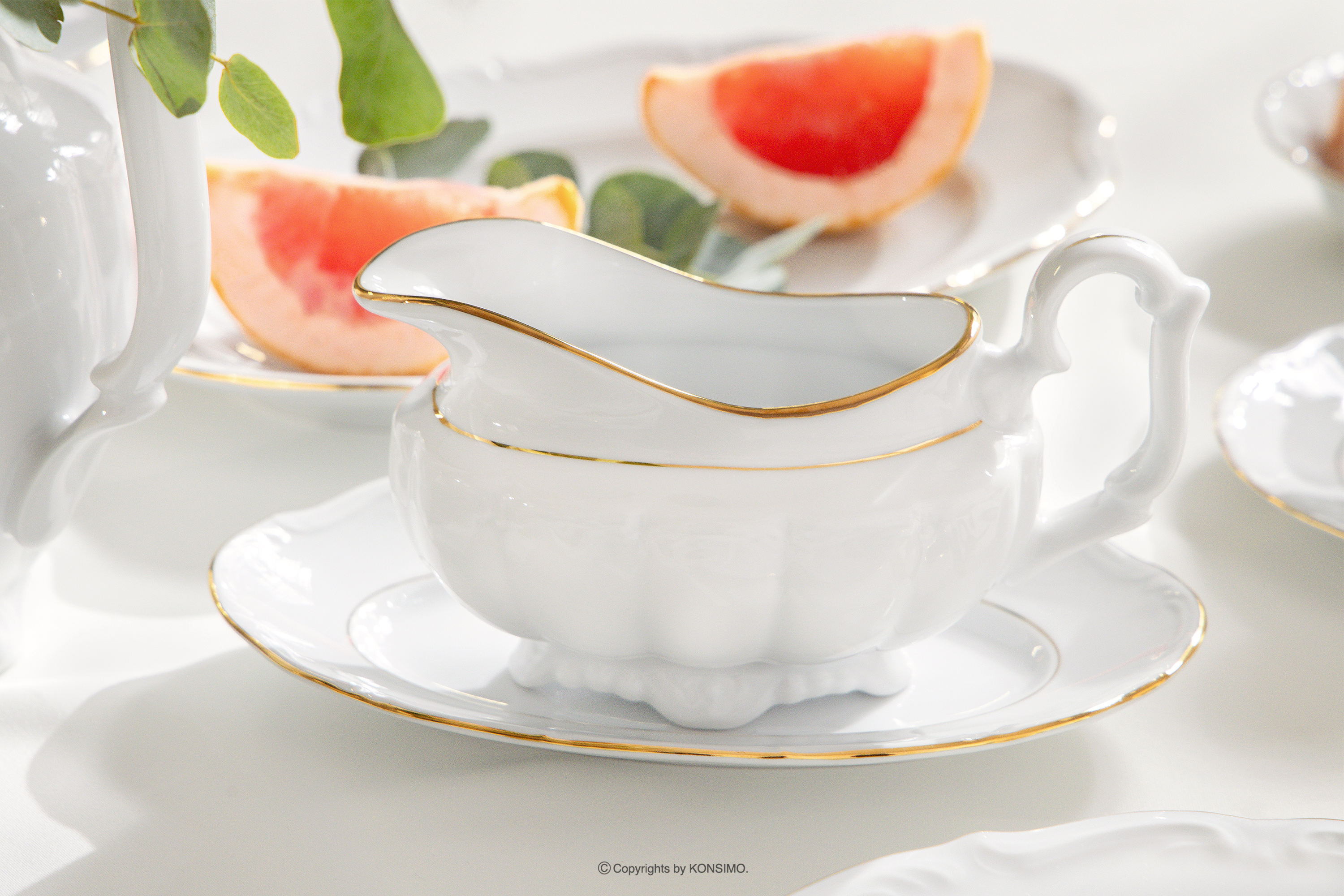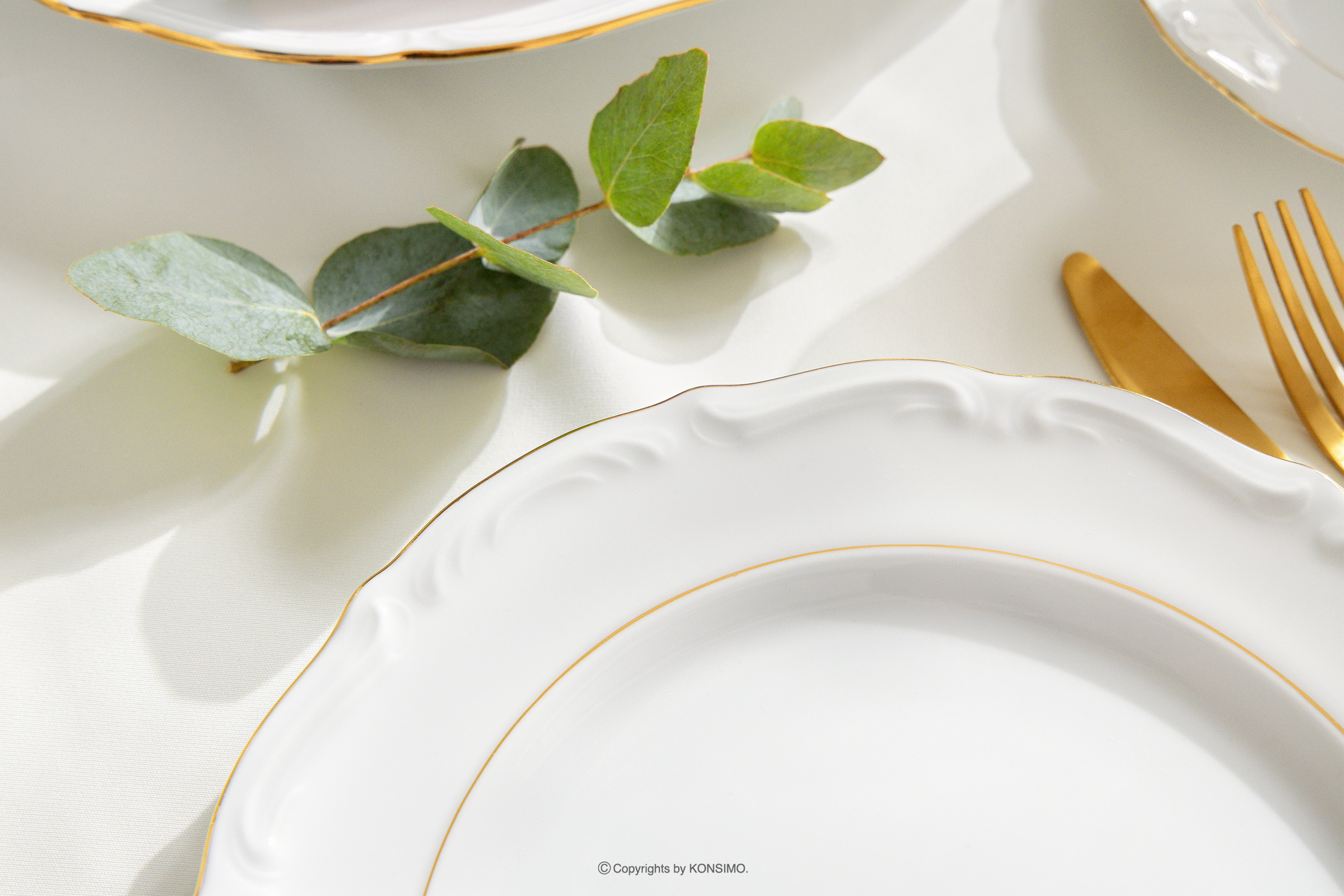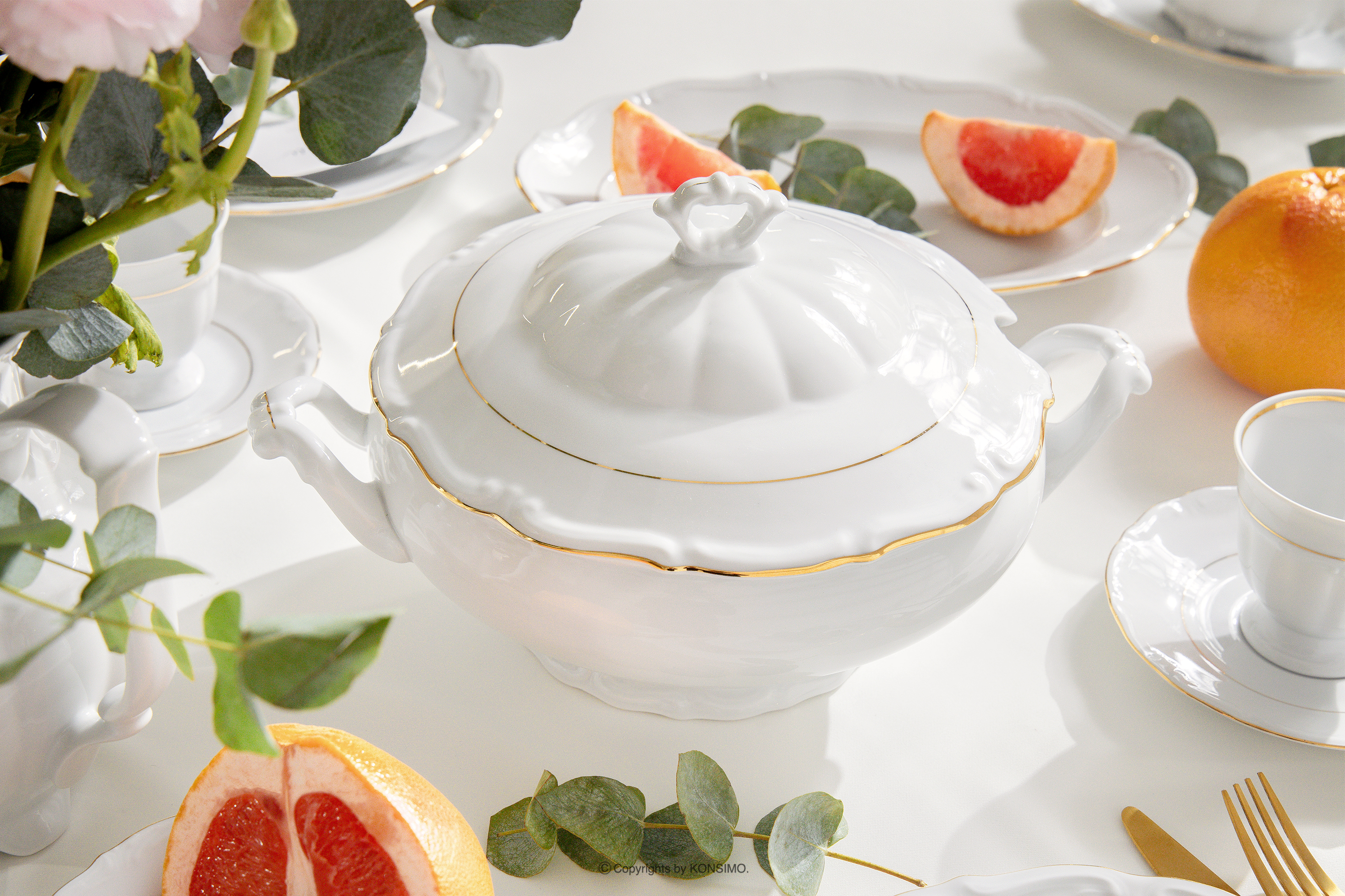 dla produktu Klasyczny zestaw obiadowy z porcelany 6 os. (23 el.) biały/złota linia