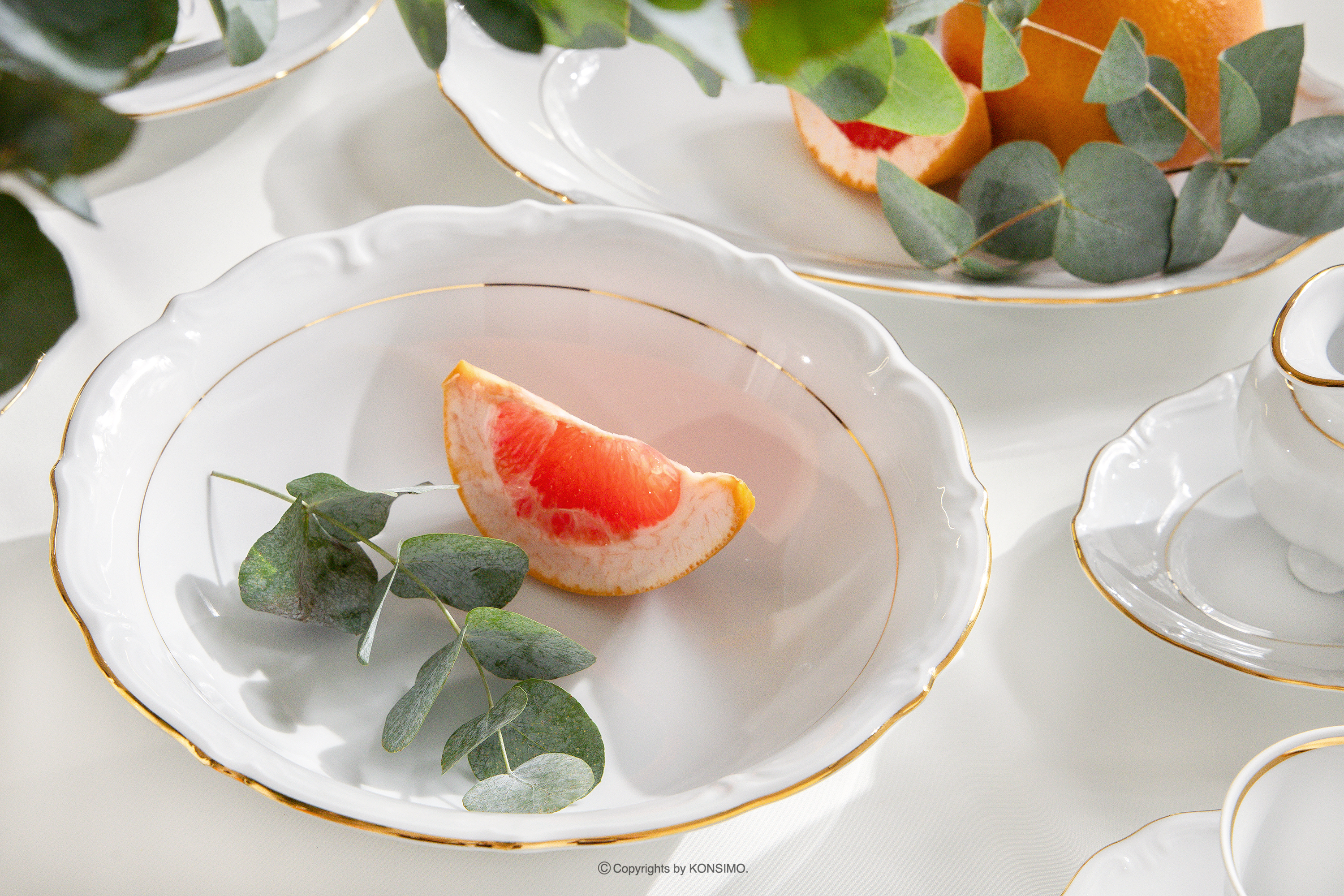 Kolekcja stworzona z najwyższą precyzją, wykorzystując starannie dobraną porcelanę, która wyróżnia się wyjątkową trwałością i eleganckim wyglądem. Każdy detal został zaprojektowany z myślą o najwyższym standardzie estetycznym i funkcjonalnym. Subtelne zdobienia w postaci delikatnych wzorów nadają zastawie wyjątkowego charakteru, nie dominując przy tym całej kompozycji stołu. Dzięki takiemu wyglądowi kolekcja świetnie sprawdza się w każdej aranżacji – od codziennych rodzinnych obiadów po wystawne kolacje i uroczystości, takie jak wesela, rocznice czy święta.