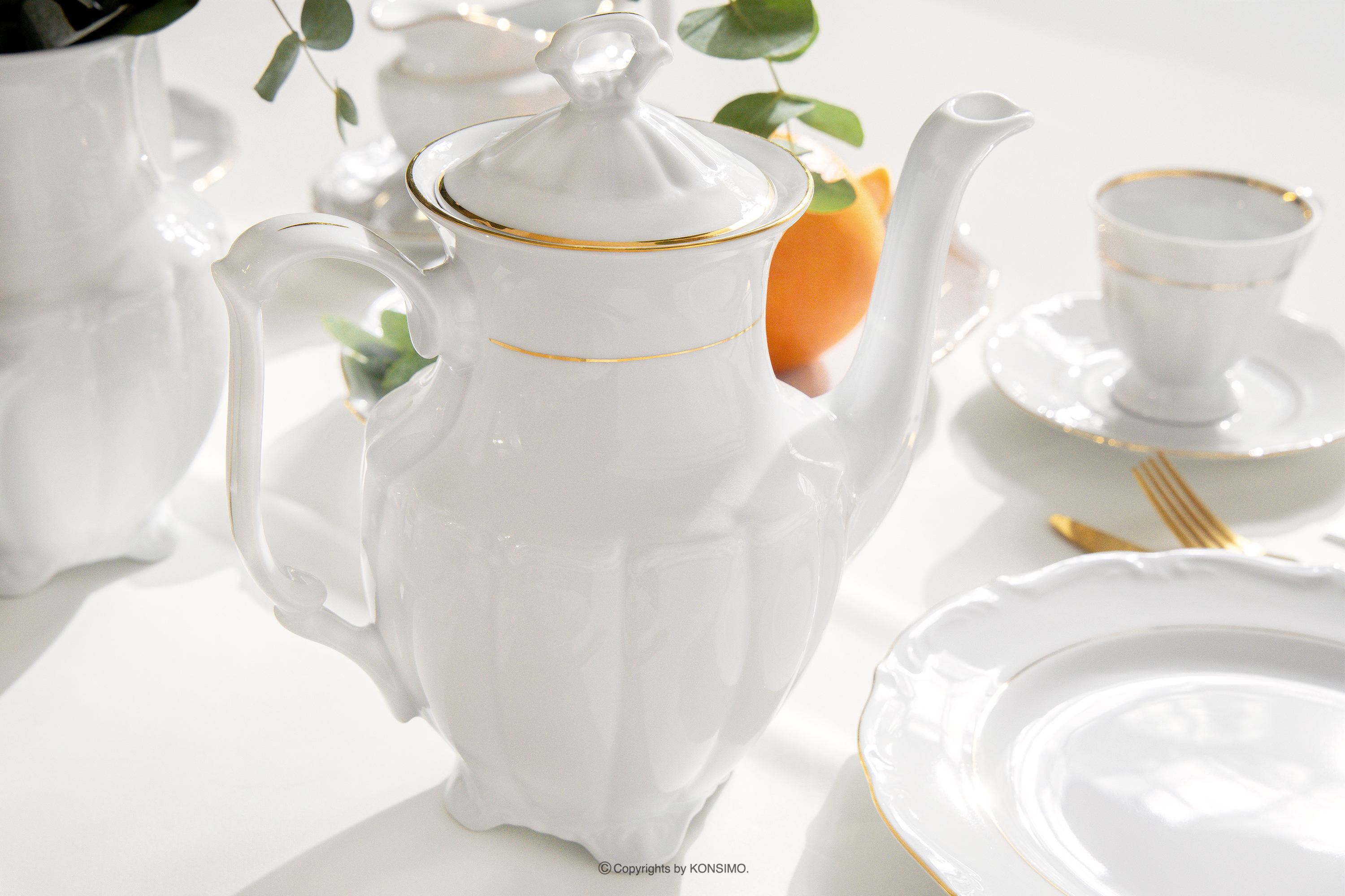 MARIA TERESA ZŁOTA LINIA zobacz całą kolekcję Klasyczny zestaw kawowy z porcelany 6 os. (21 el.) biały/złota linia- kolor biały/złoty