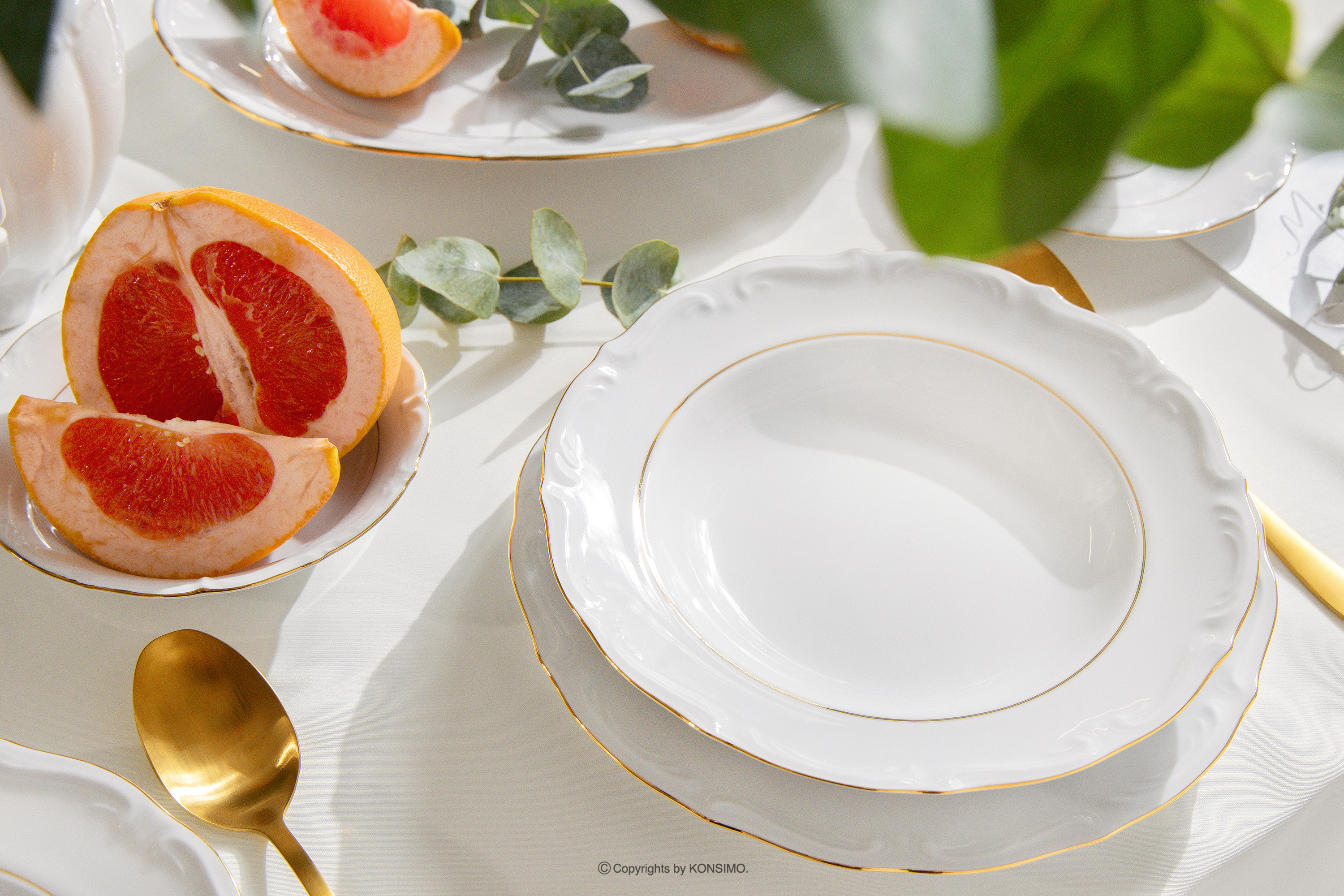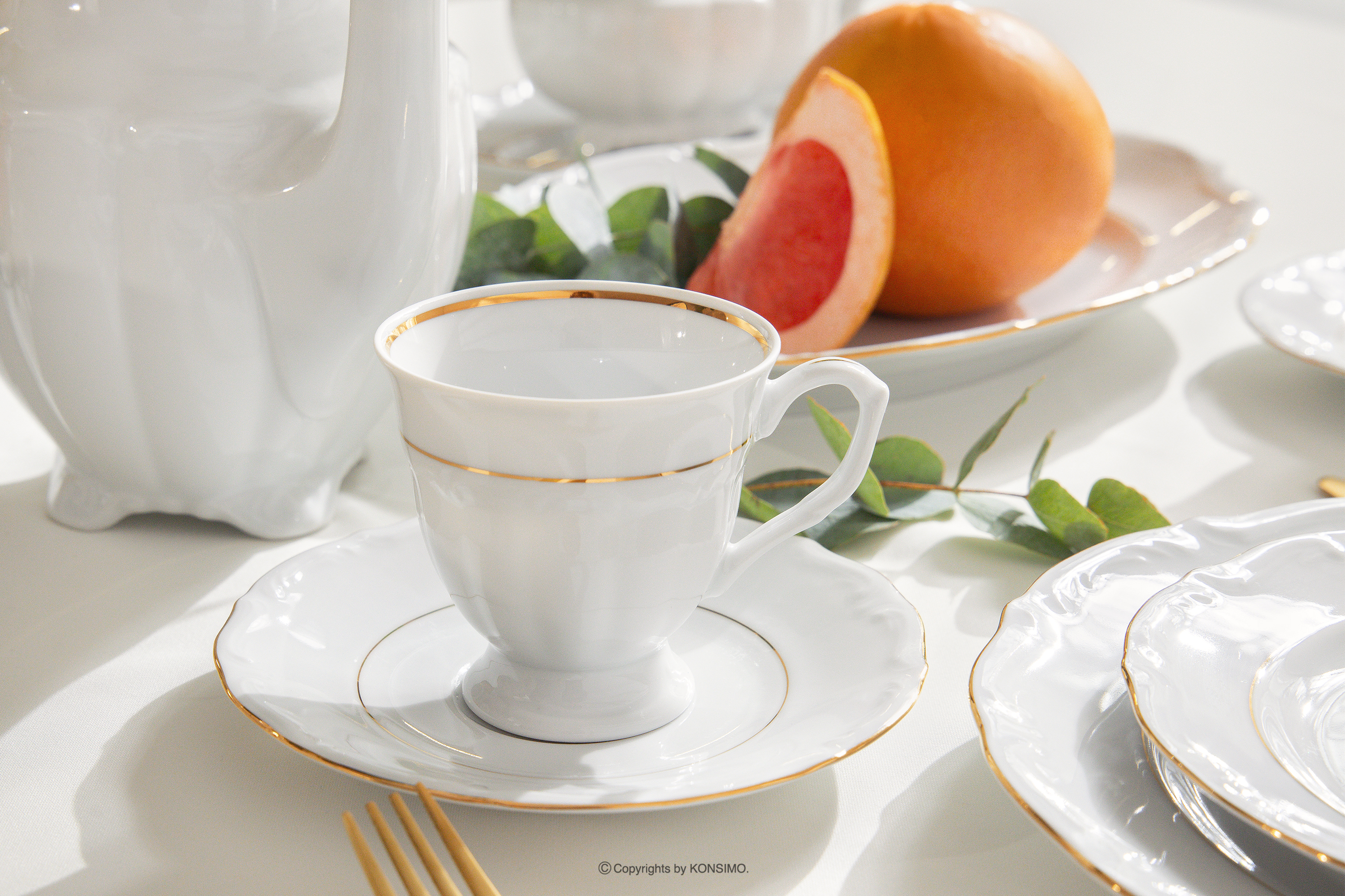 MARIA TERESA ZŁOTA LINIA zobacz całą kolekcję Klasyczny zestaw obiadowo-kawowy z porcelany 6 os. (30 el.) biały/złota linia- kolor biały/złoty