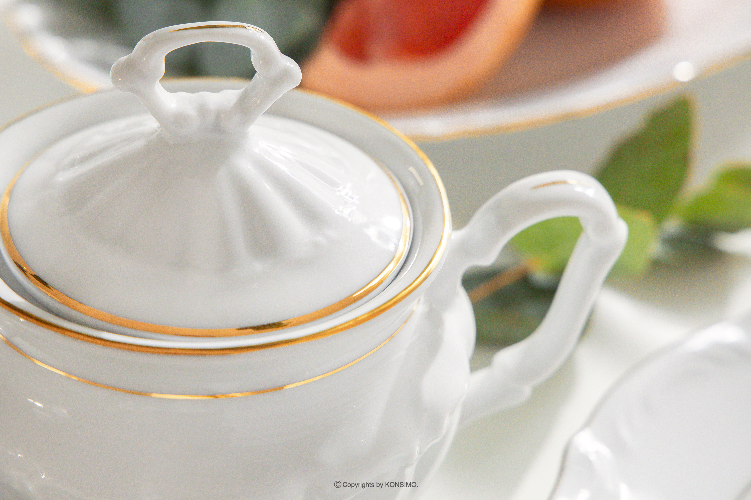 MARIA TERESA ZŁOTA LINIA zobacz całą kolekcję Klasyczny zestaw kawowy z porcelany 12 os. (39 el.) biały/złota linia- kolor biały/złoty