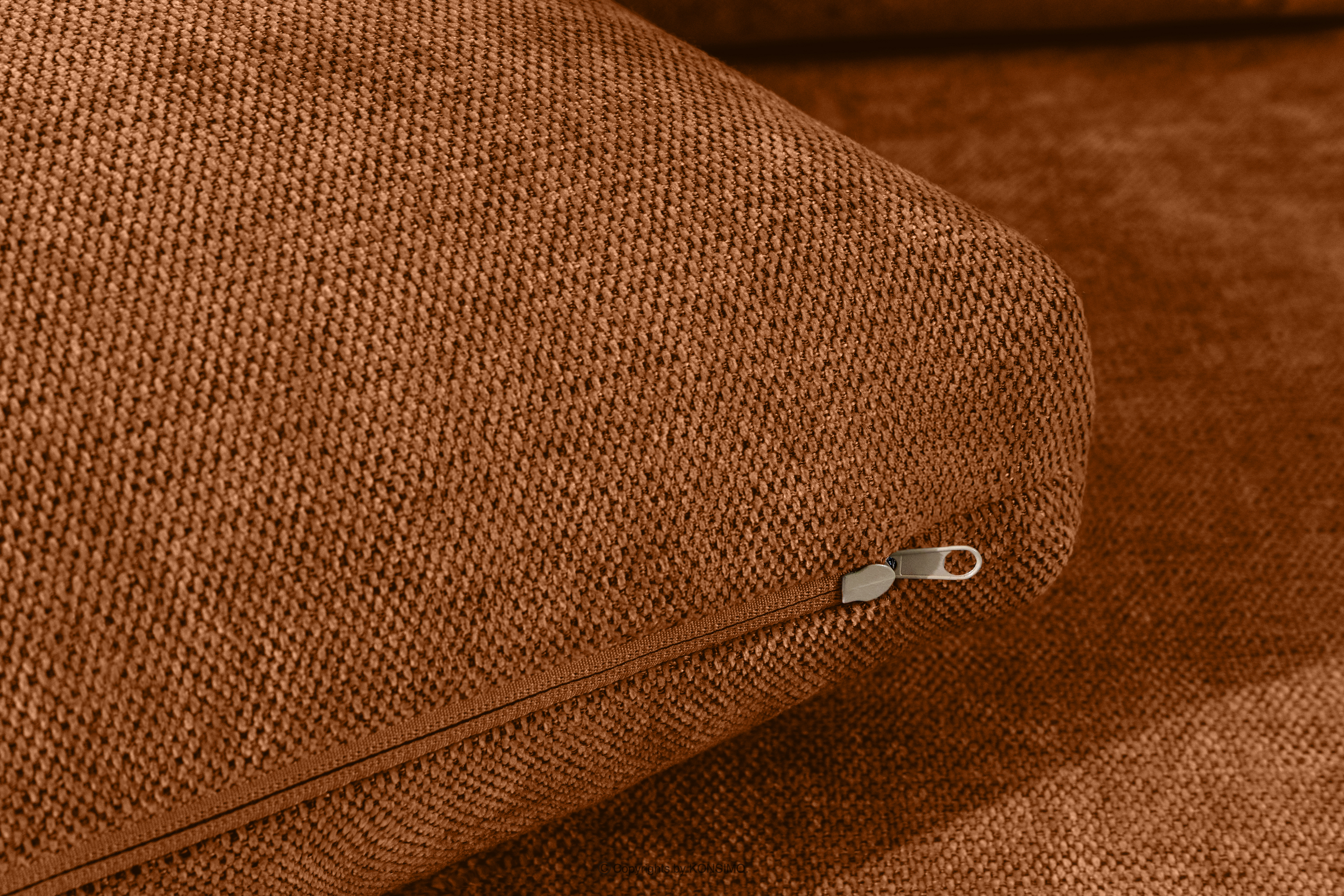 Sofa trzyosobowa na wysokich nóżkach tkanina pleciona rudy to esencja nowoczesnego designu połączonego z najwyższym komfortem użytkowania. Nowoczesna forma połączona z wysokiej jakości materiałami sprawia, że kolekcja ta stanowi inwestycję na lata, oferując nie tylko przestrzeń do wypoczynku, ale również stylowy element wystroju wnętrza. W komplecie są dwie poduszki wypełnione antyalergicznym materiałem HCS, który stanowi innowacyjne rozwiązanie dla osób ceniących zarówno komfort, jak i zdrowie.