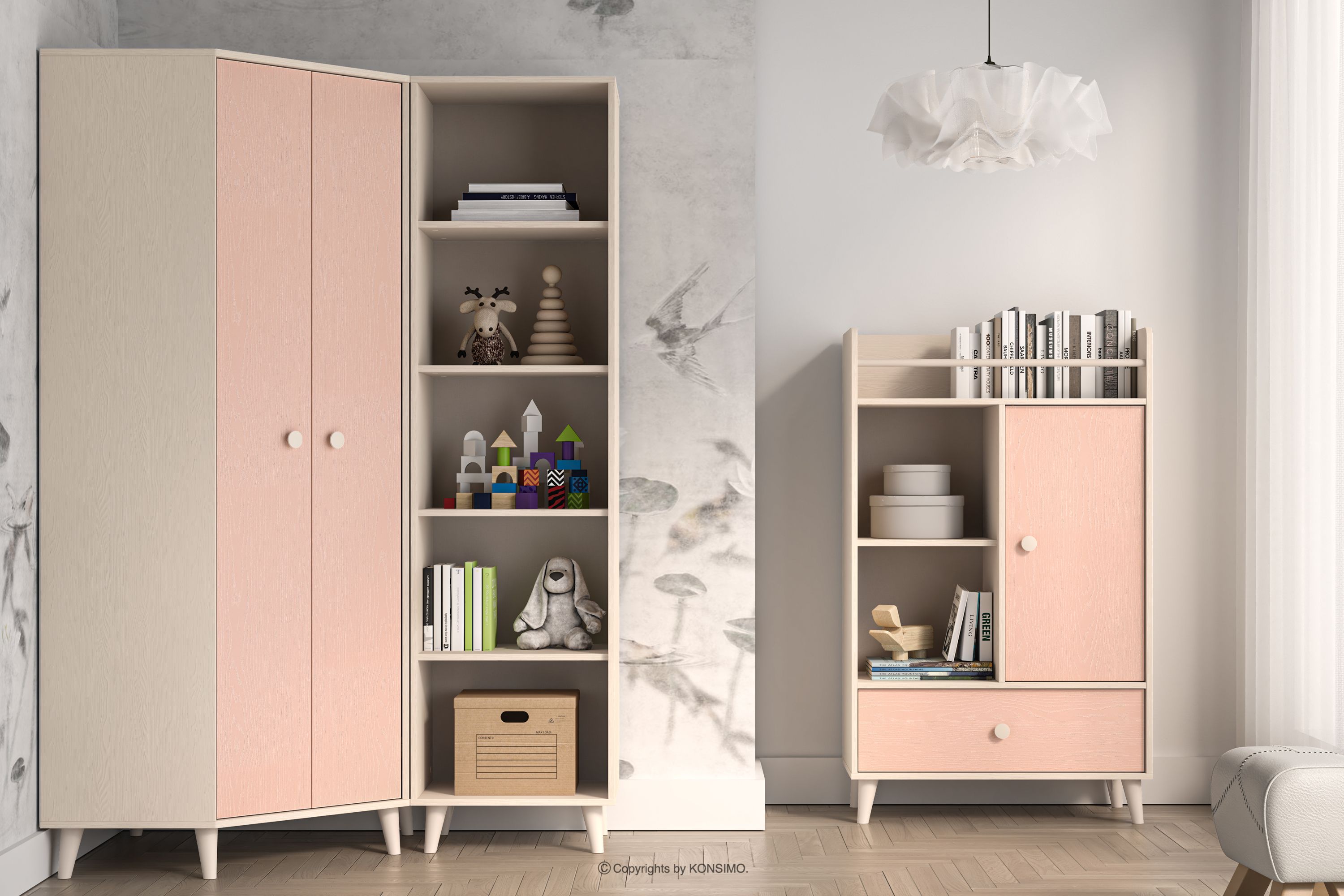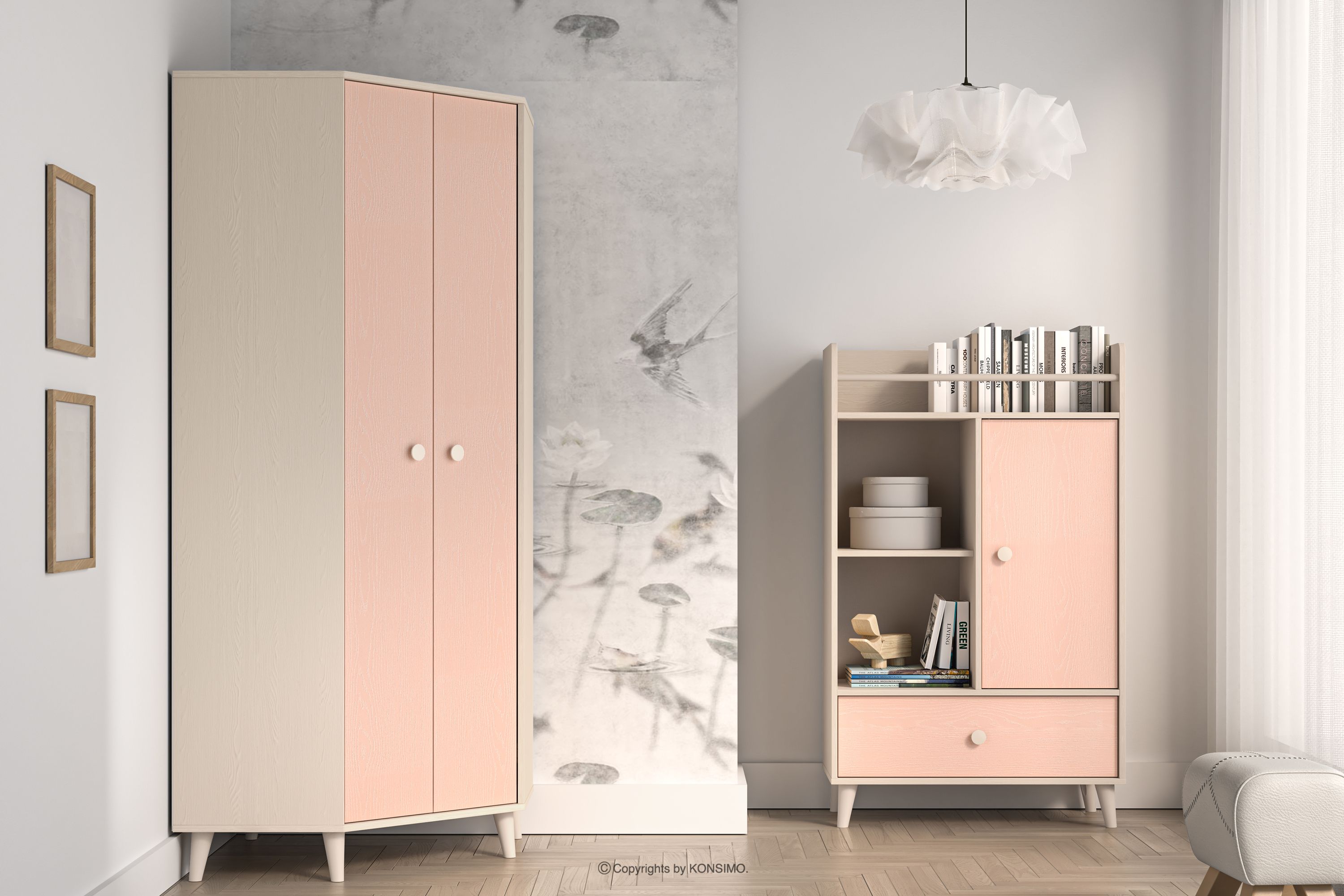 PUNGI Szafa narożna do pokoju dziecięcego różowy/beżowy