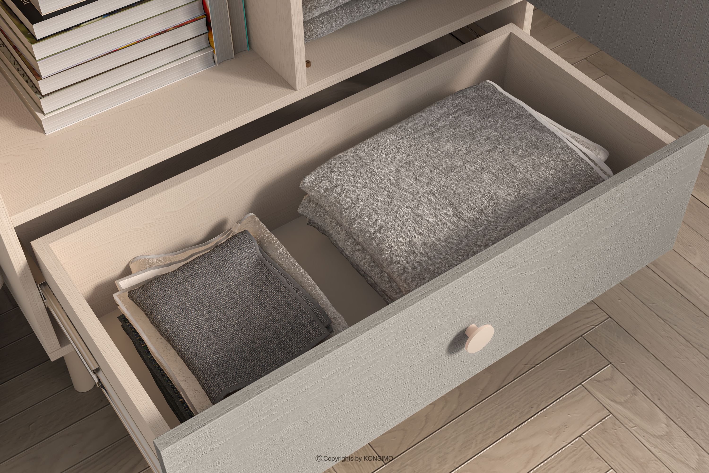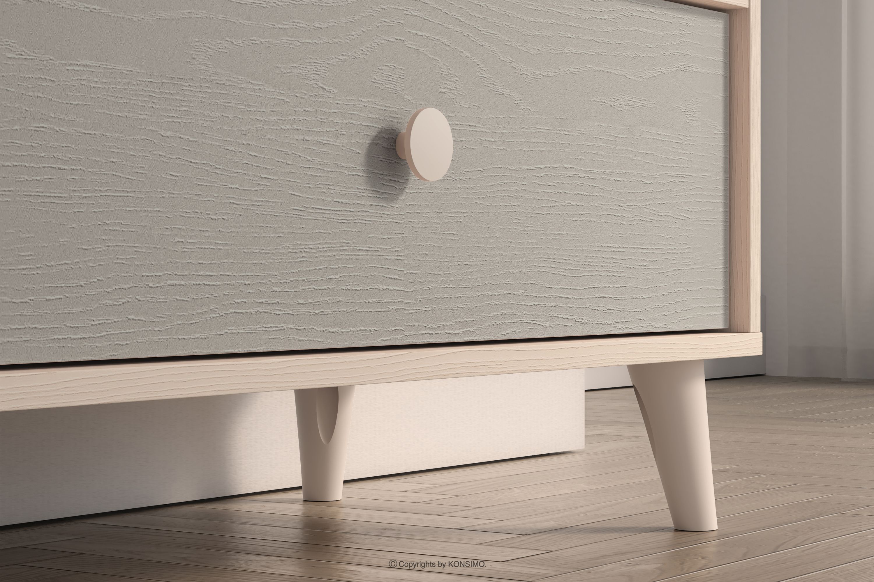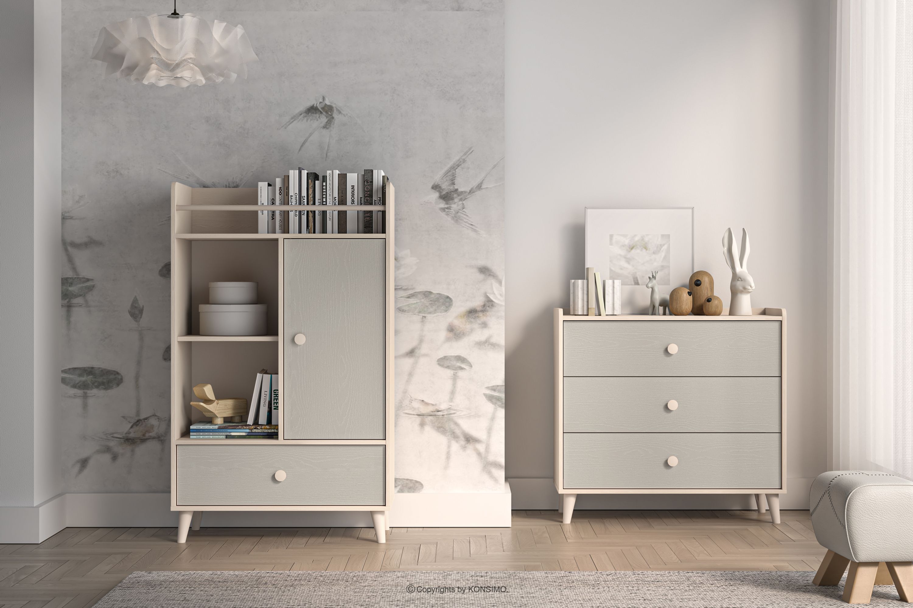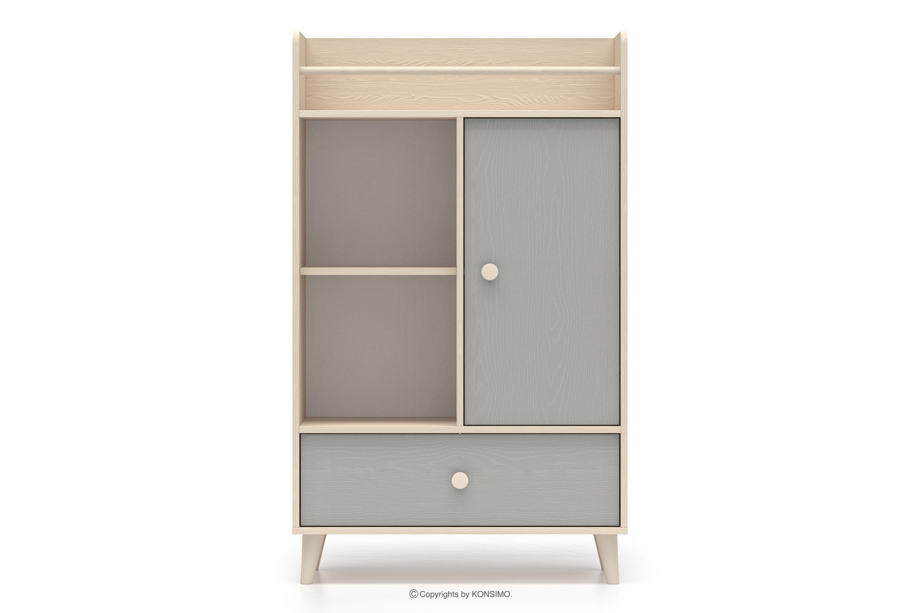 PUNGI zobacz całą kolekcję Komoda do pokoju dziecięcego z półkami i szufladą szary/beżowy- kolor szary/beżowy