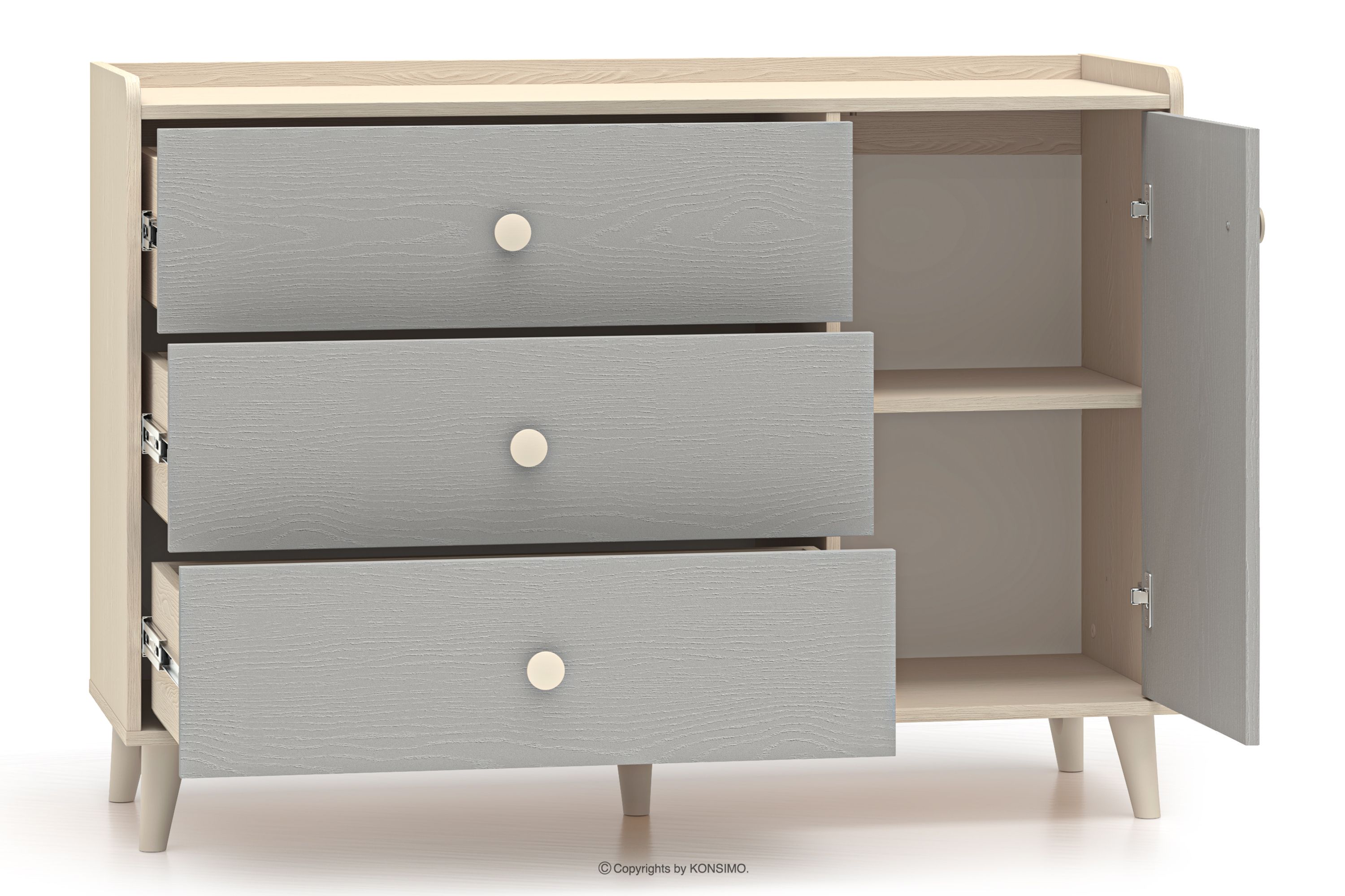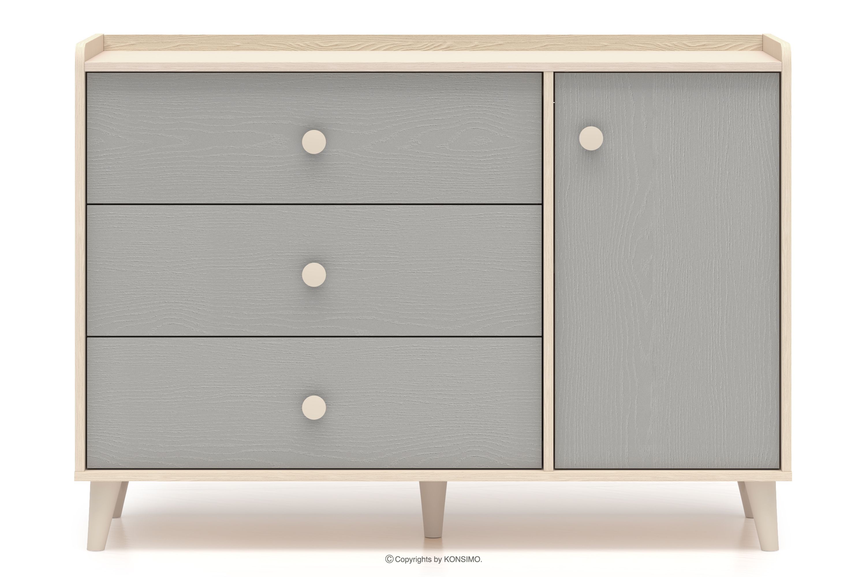 PUNGI zobacz całą kolekcję Duża komoda do pokoju dziecięcego z szufladami i półką szary/beżowy- kolor szary/beżowy