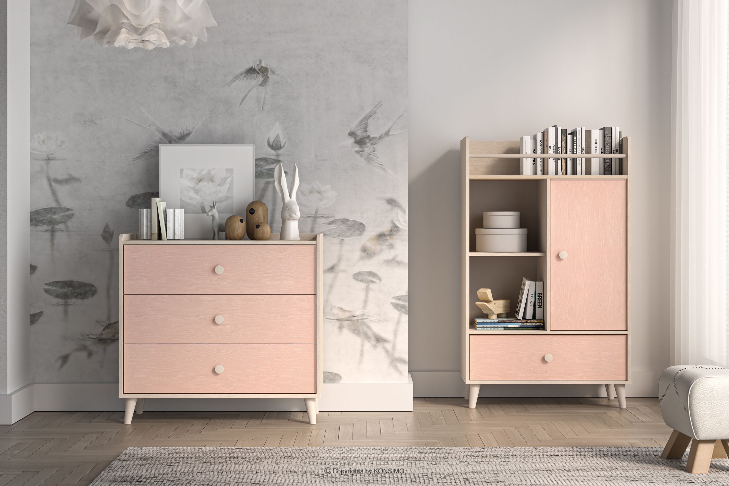 PUNGI Komoda do pokoju z szufladą różowy/beżowy