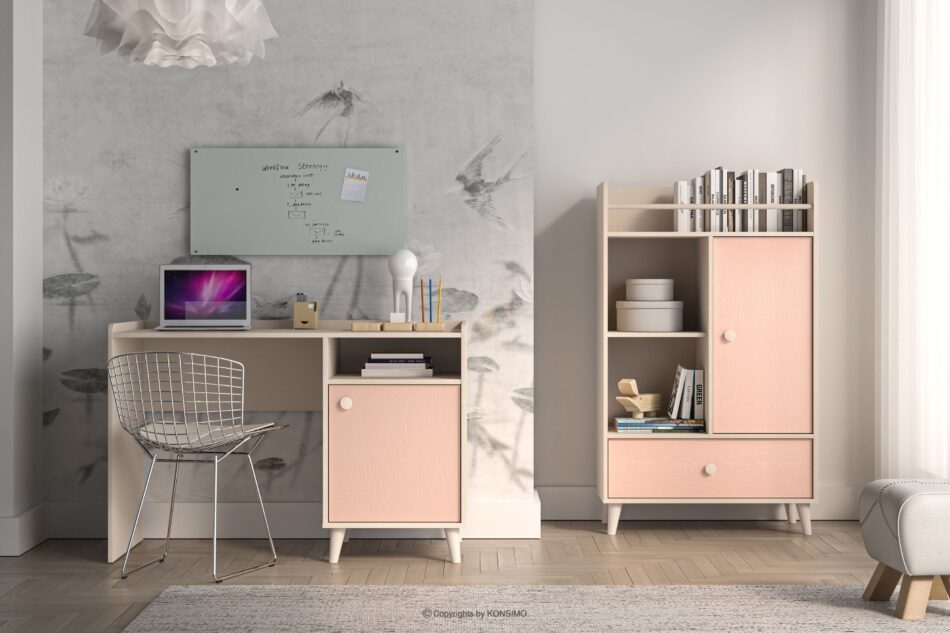 PUNGI zobacz całą kolekcję Biurko do pokoju dziecięcego z półkami różowy/beżowy- kolor różowy/beżowy