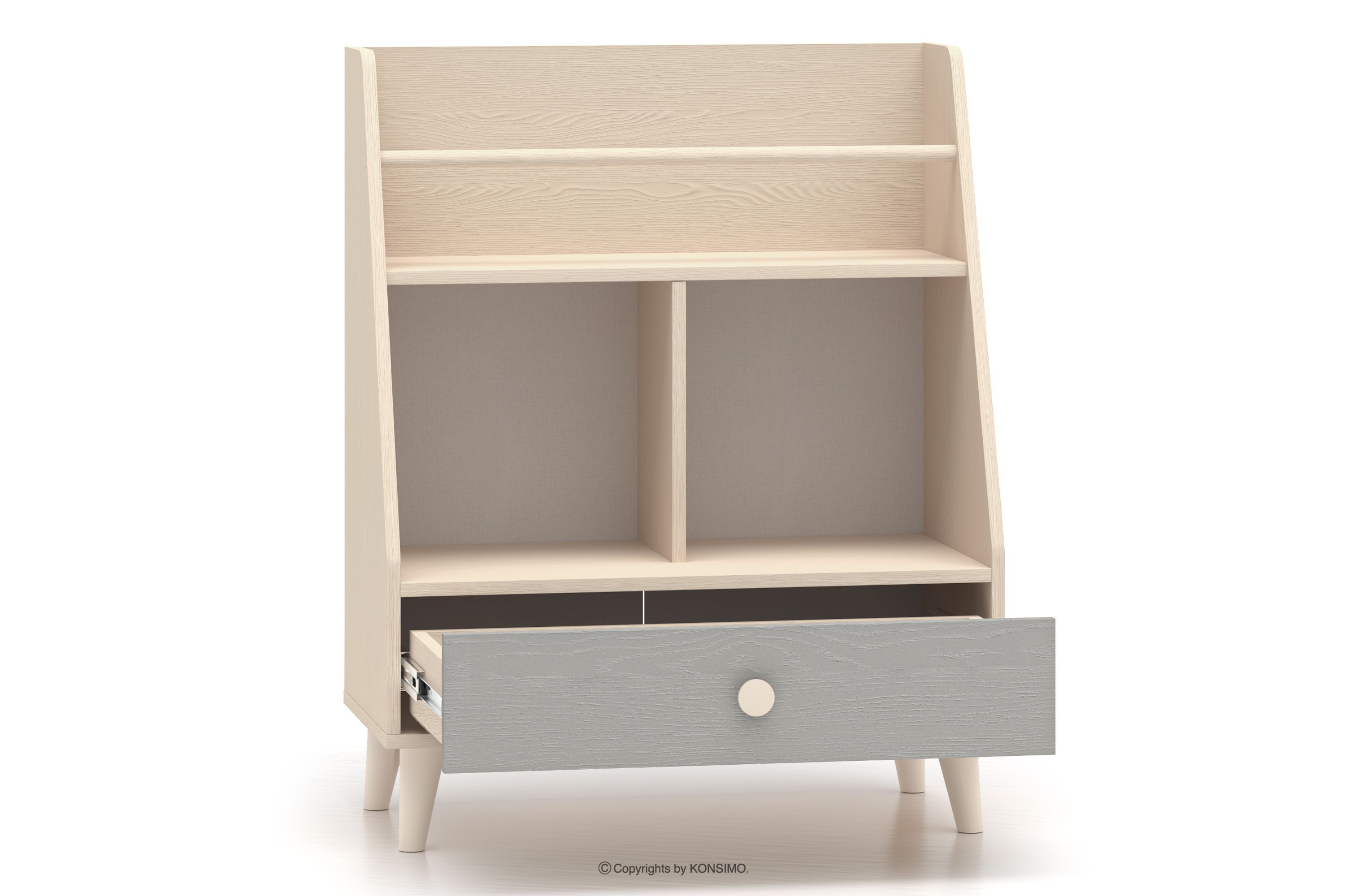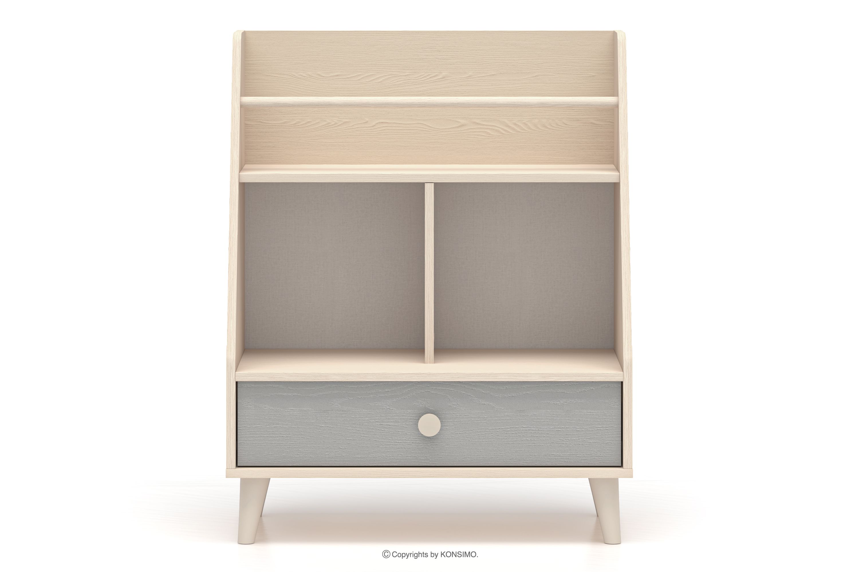 PUNGI zobacz całą kolekcję Regał z półkami i szufladą do pokoju dziecięcego szary/beżowy- kolor szary/beżowy