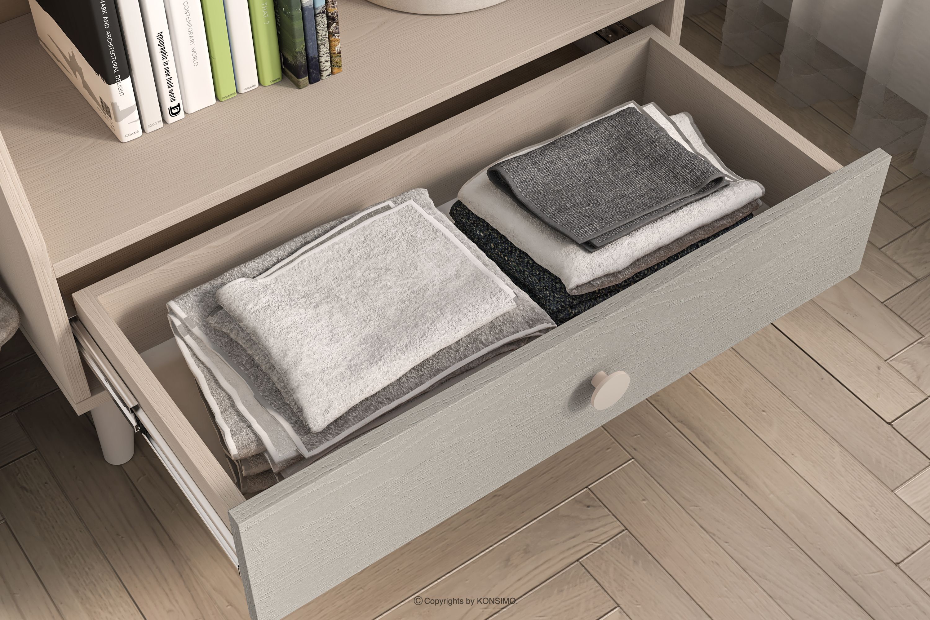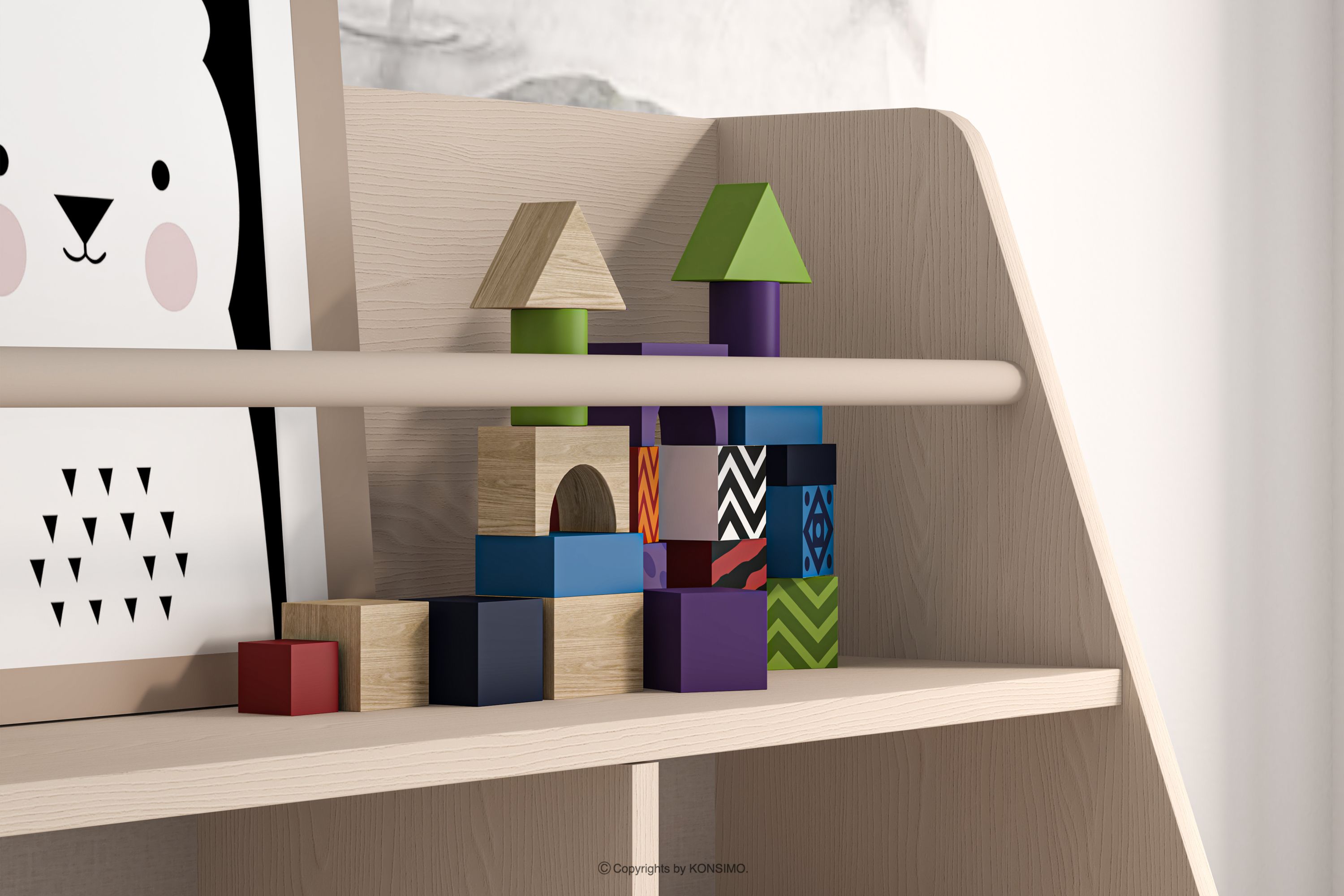 dla produktu Regał z półkami i szufladą do pokoju dziecięcego szary/beżowy