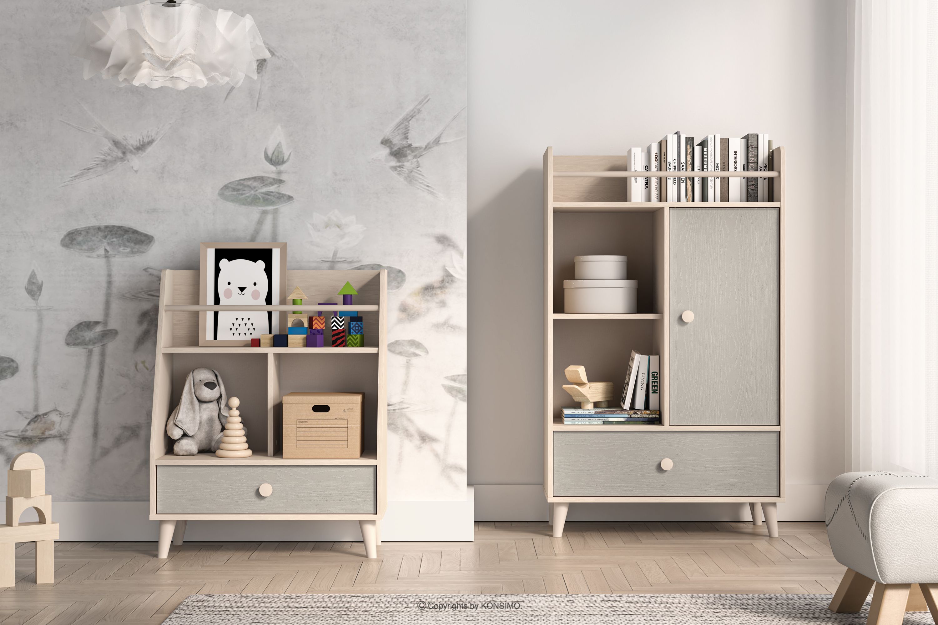 PUNGI Regał z półkami i szufladą do pokoju dziecięcego szary/beżowy
