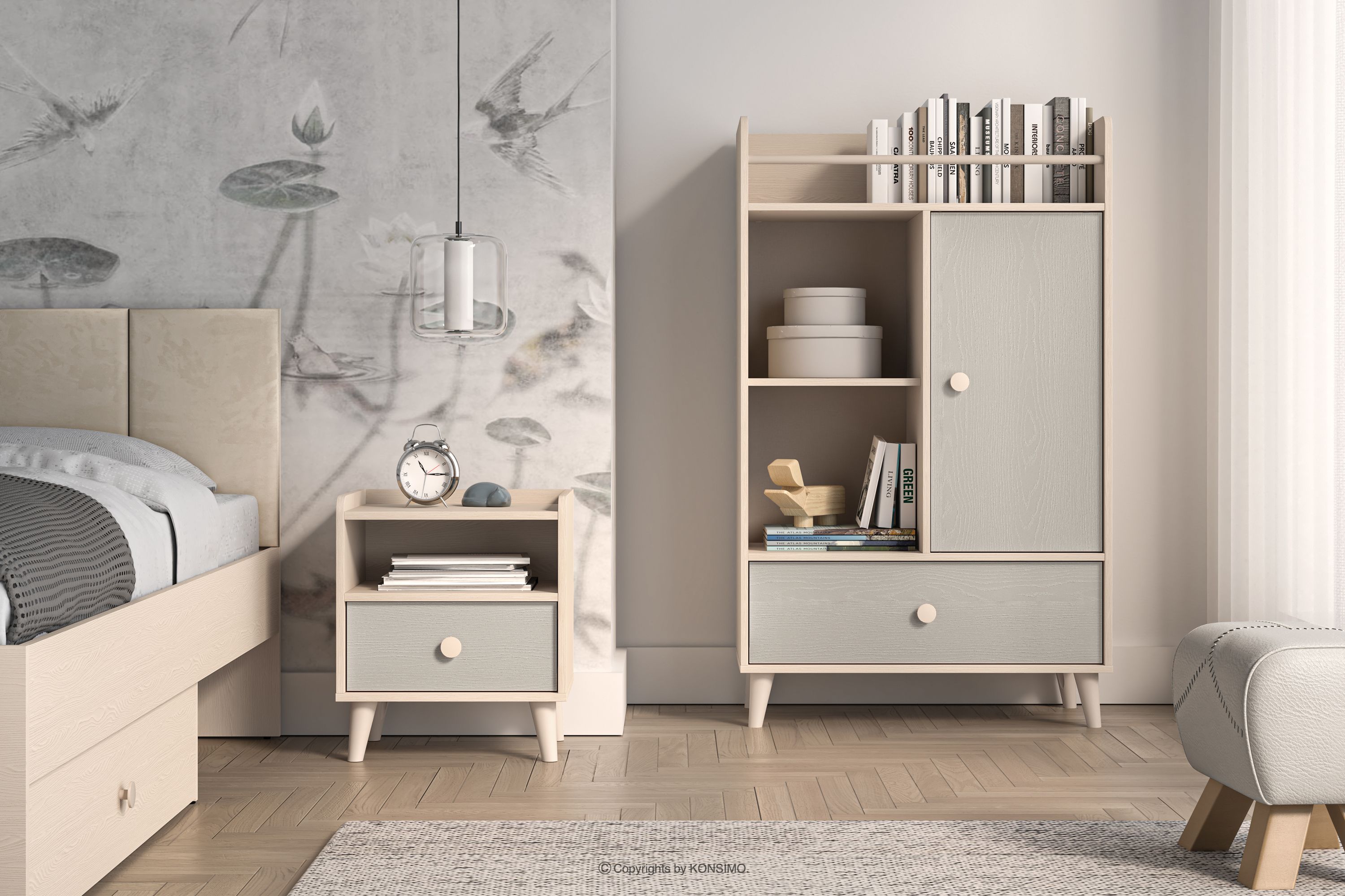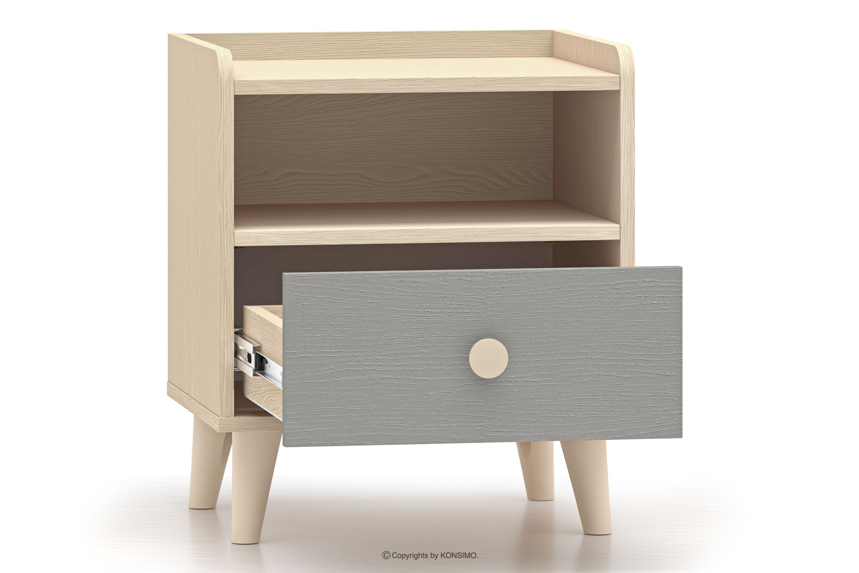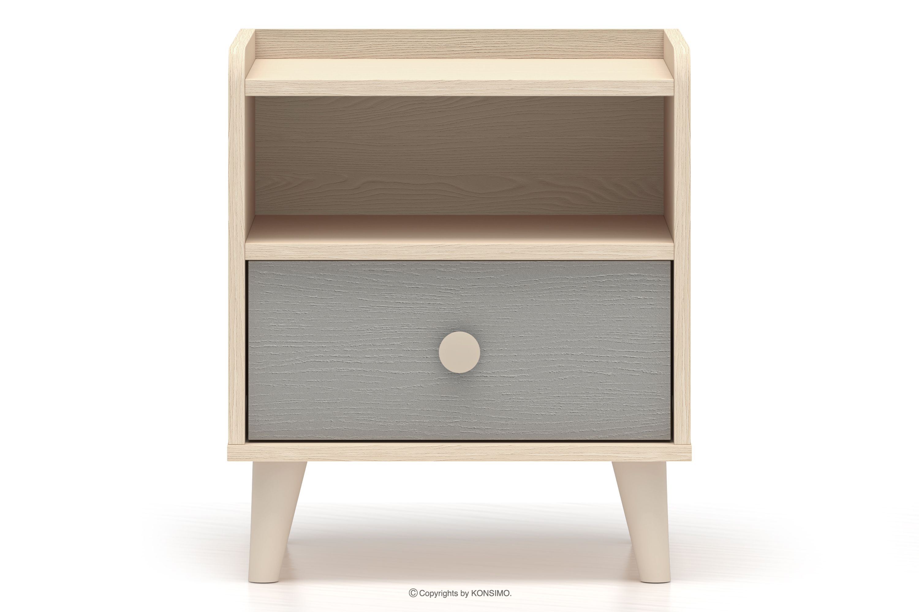 PUNGI zobacz całą kolekcję Stolik nocny z szufladą do pokoju dziecięcego szary/beżowy- kolor szary/beżowy
