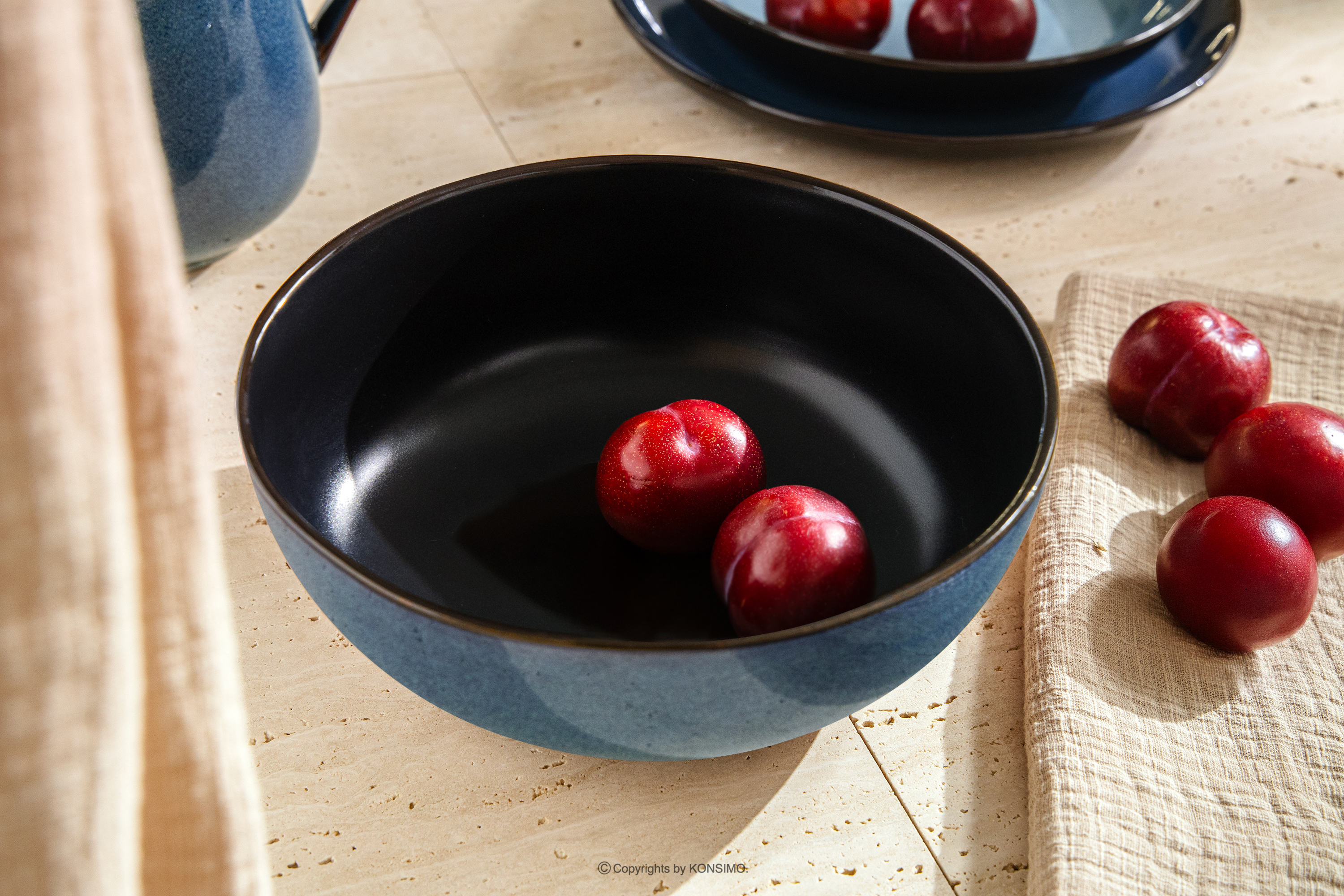 BALI Zestaw obiadowy 6 os. (25 el.) szkliwo reaktywne niebieski/czarny mat