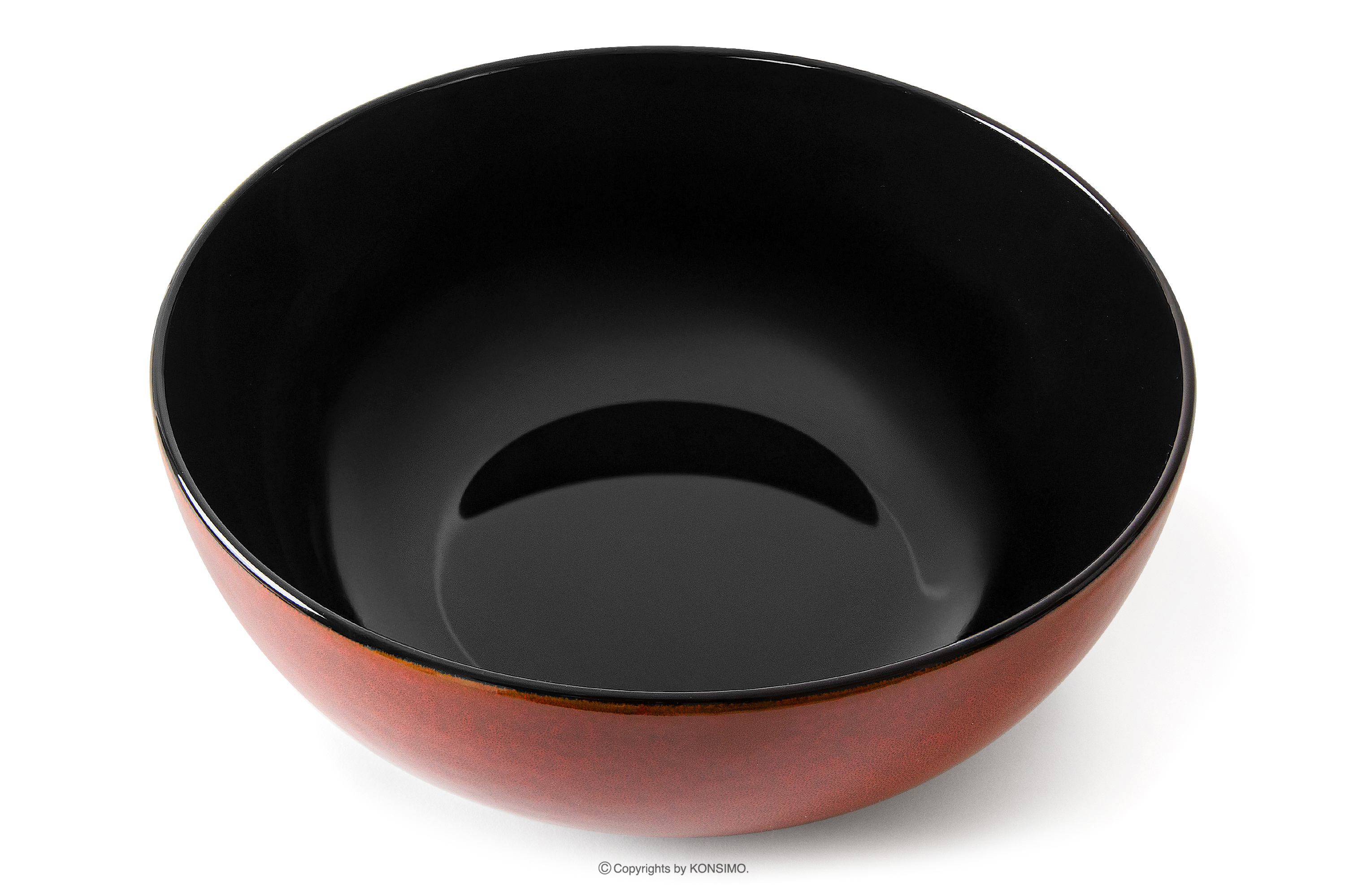 Zestaw obiadowy ceramika / szkliwo reaktywne czerwony/czarny połysk 6 os. (25 el.) doskonale sprawdzą się na co dzień oraz podczas uroczystych kolacji i rodzinnych spotkań. Charakterystyczne przejścia kolorystyczne, delikatne refleksy świetlne i głębia odcieni nadają wyjątkowego charakteru. Szkło reaktywne to materiał, który pod wpływem wysokiej temperatury tworzy niepowtarzalne efekty kolorystyczne, każda sztuka ma unikalny wygląd – żadne naczynia nie są identyczne.