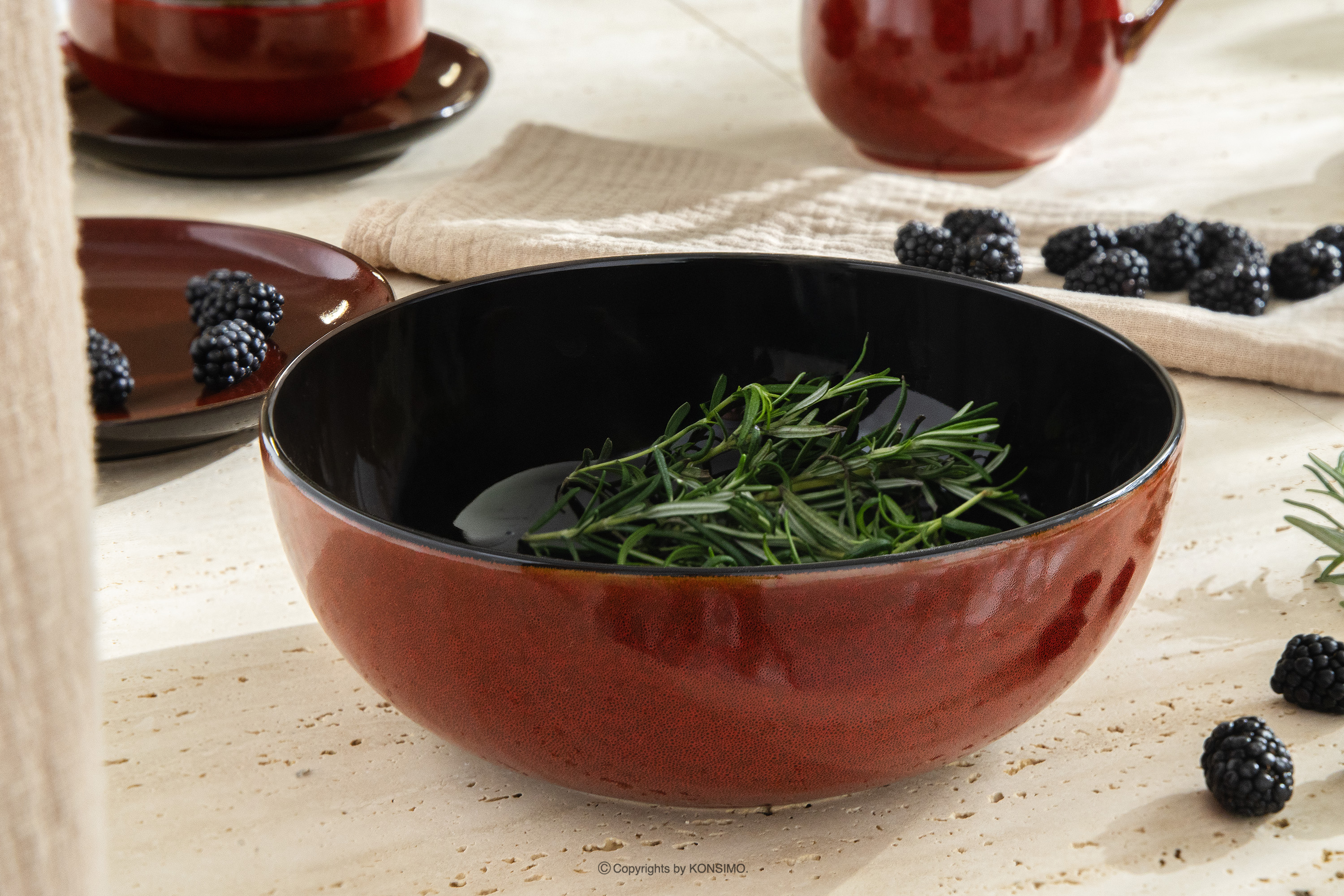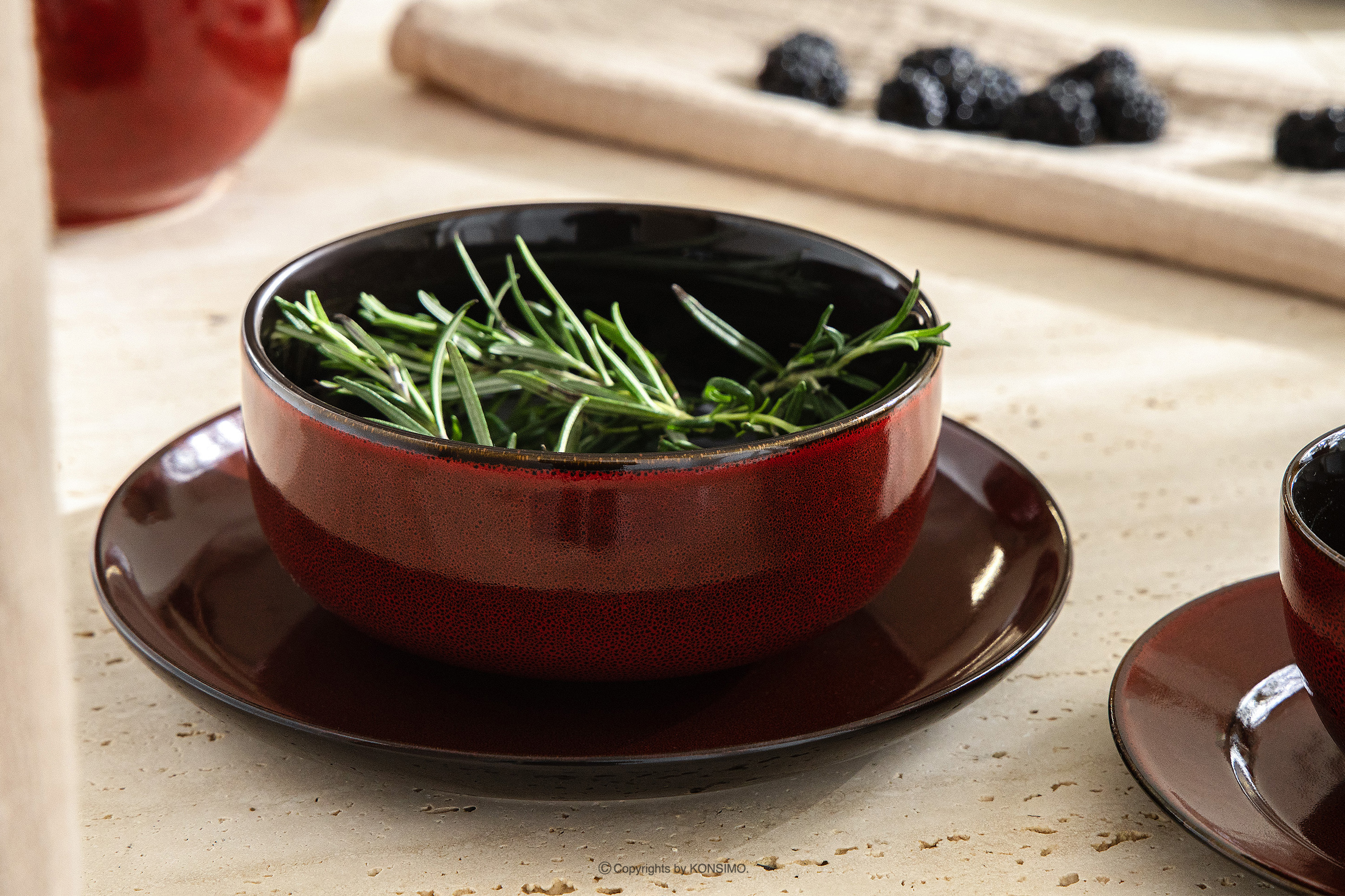 GAMBIA zobacz całą kolekcję Zestaw obiadowy ceramika / szkliwo reaktywne czerwony/czarny połysk 6 os. (25 el.)- kolor czerwony/czarny połysk