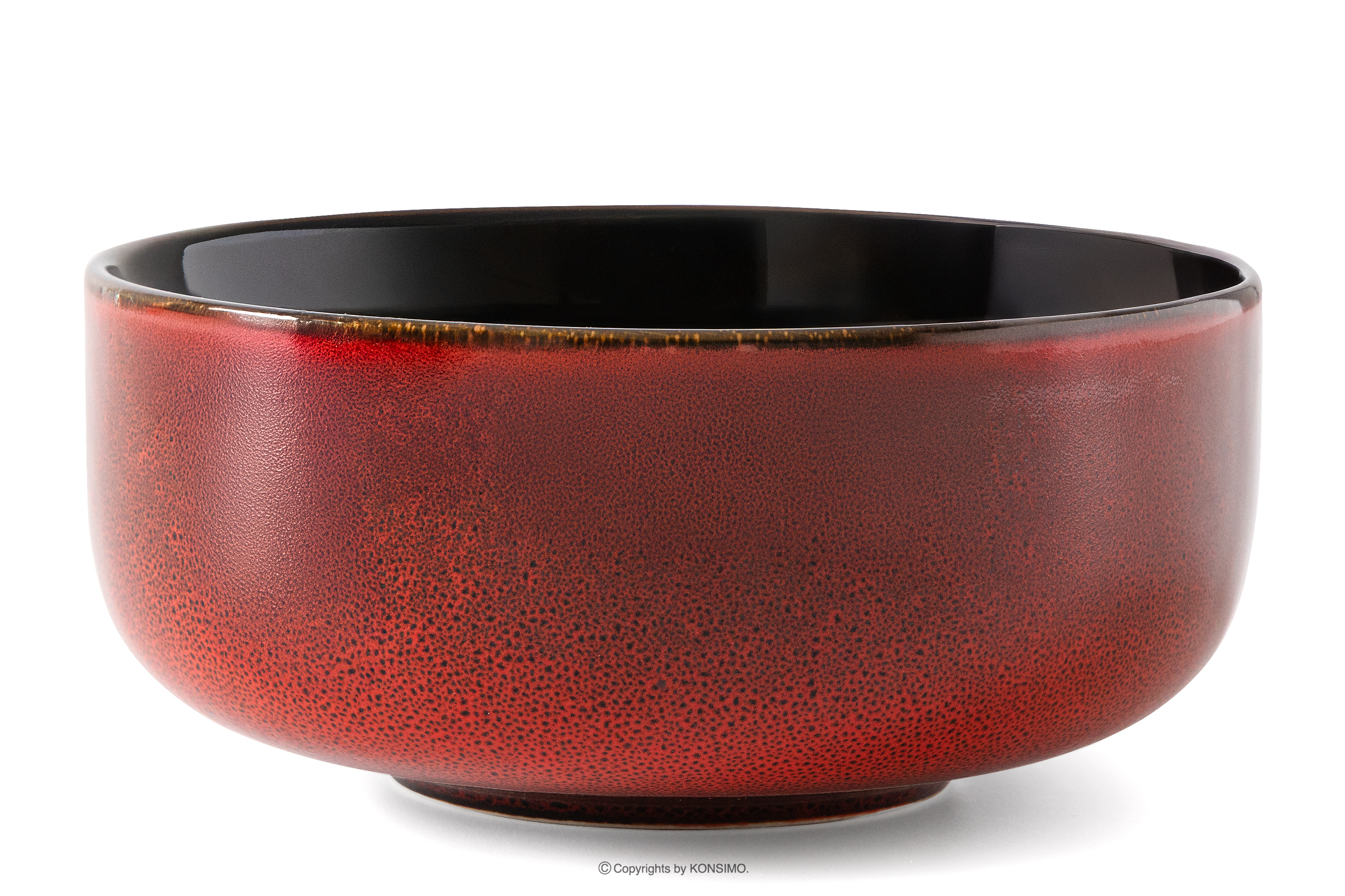 Zestaw śniadaniowy ceramika / szkliwo reaktywne czerwony/czarny połysk 6 os. (18 el.) doskonale sprawdzą się na co dzień oraz podczas uroczystych kolacji i rodzinnych spotkań. Charakterystyczne przejścia kolorystyczne, delikatne refleksy świetlne i głębia odcieni nadają wyjątkowego charakteru. Szkło reaktywne to materiał, który pod wpływem wysokiej temperatury tworzy niepowtarzalne efekty kolorystyczne, każda sztuka ma unikalny wygląd – żadne naczynia nie są identyczne.