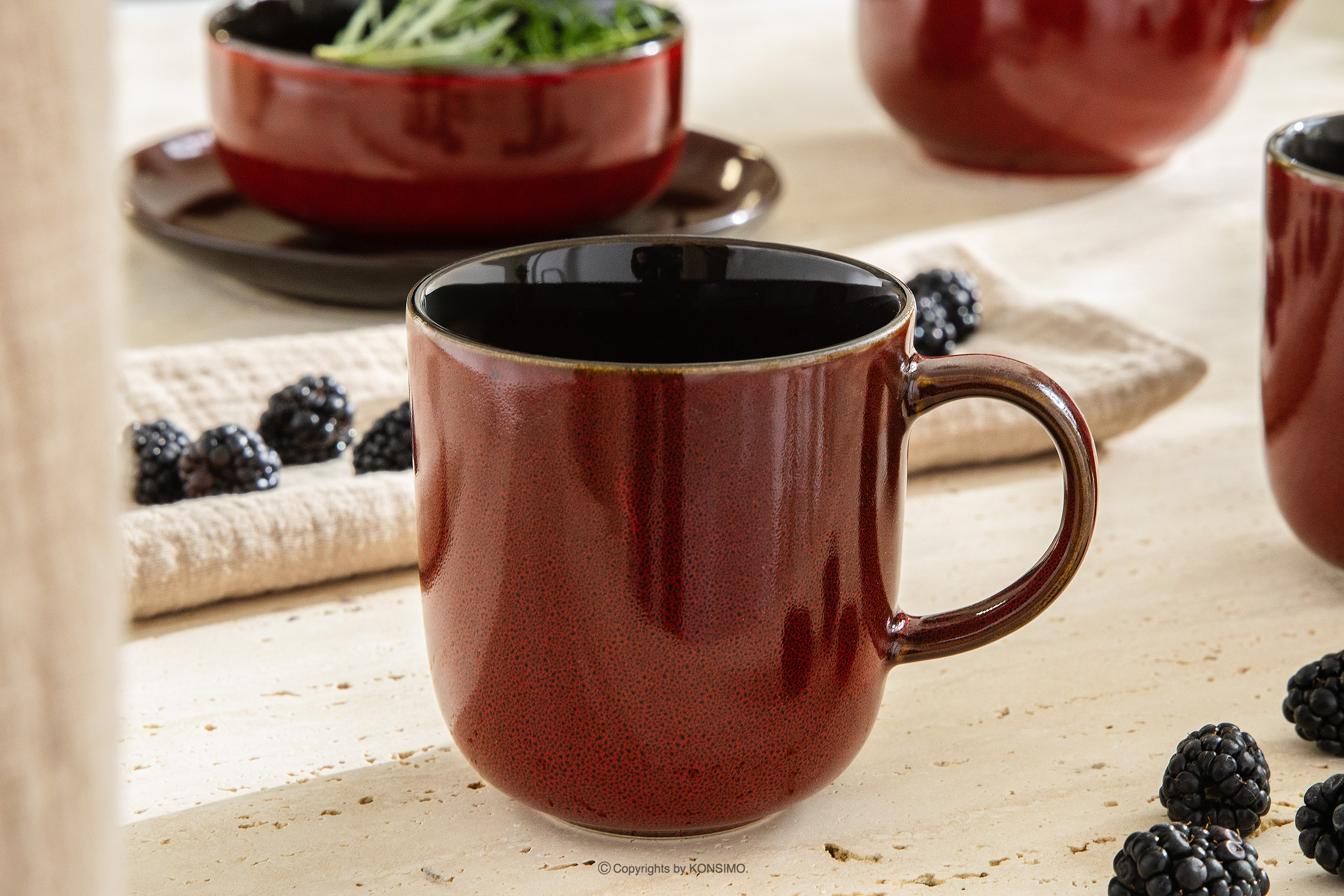 GAMBIA zobacz całą kolekcję Zestaw śniadaniowy ceramika / szkliwo reaktywne czerwony/czarny połysk 6 os. (18 el.)- kolor czerwony/czarny połysk