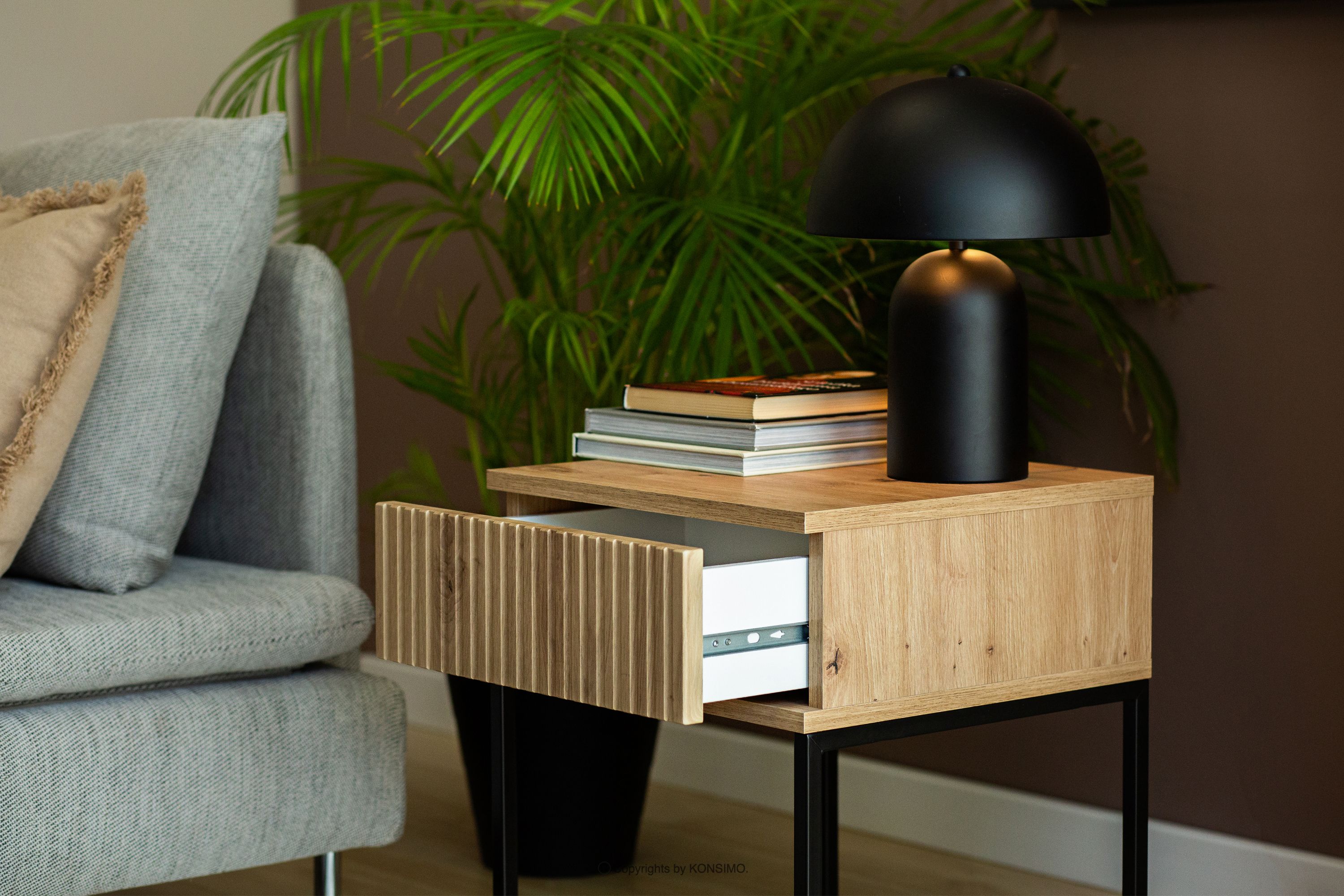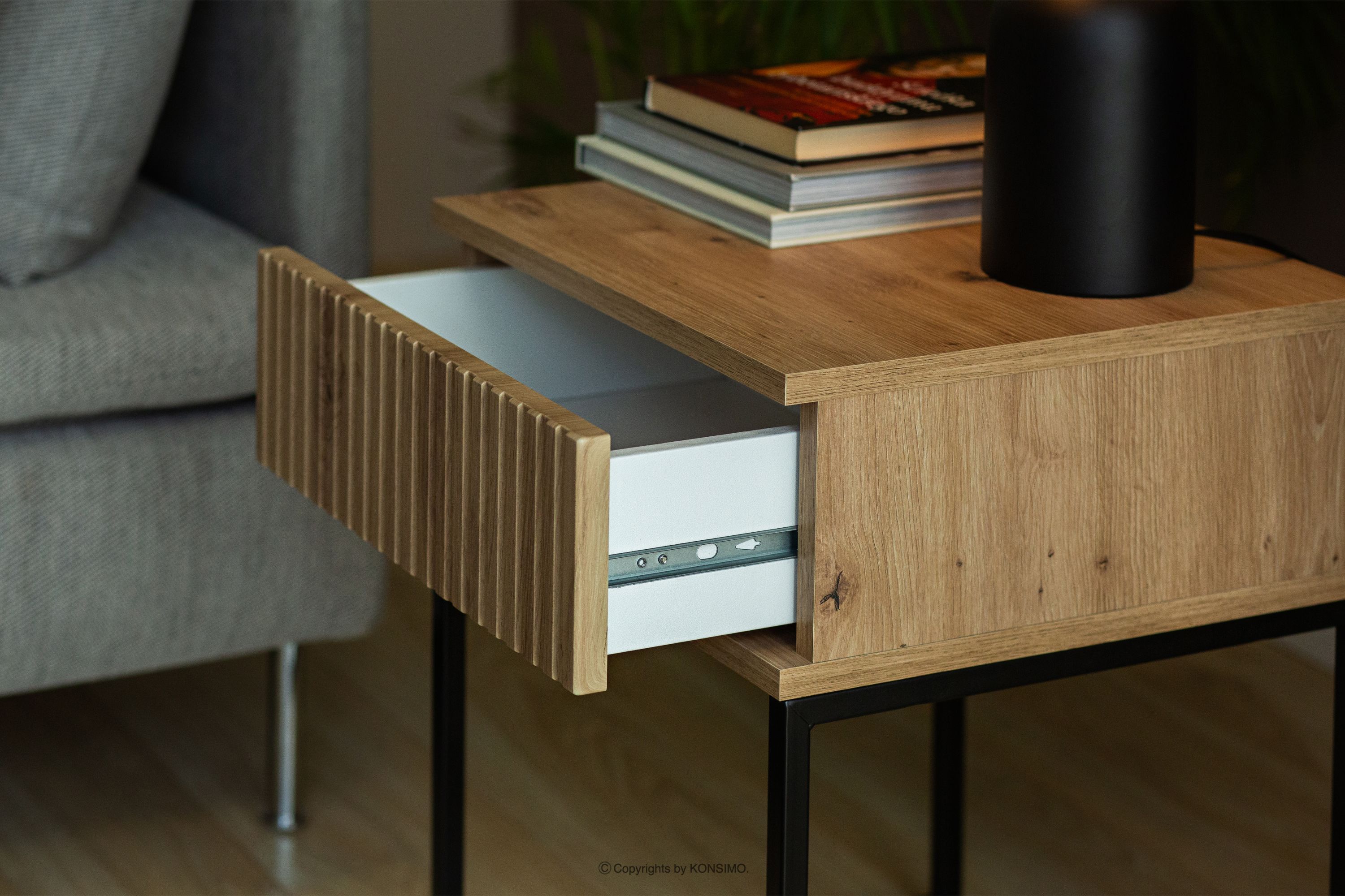 Stolik nocny z szufladą nowoczesny dąb artisan RECTUS - kolor dąb artisan/czarny