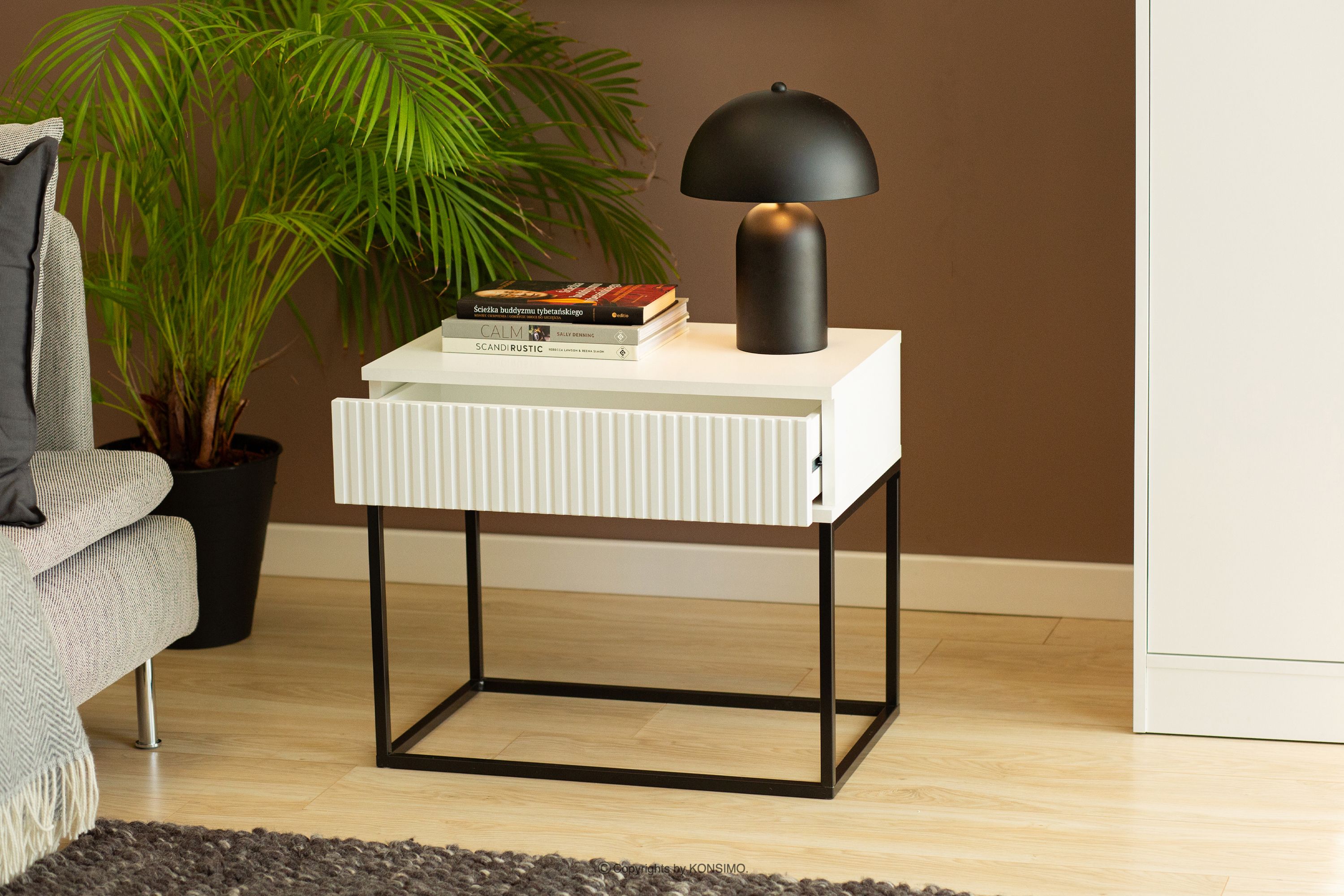 Duży stolik nocny z szufladą nowoczesny biały RECTUS - kolor biały/czarny