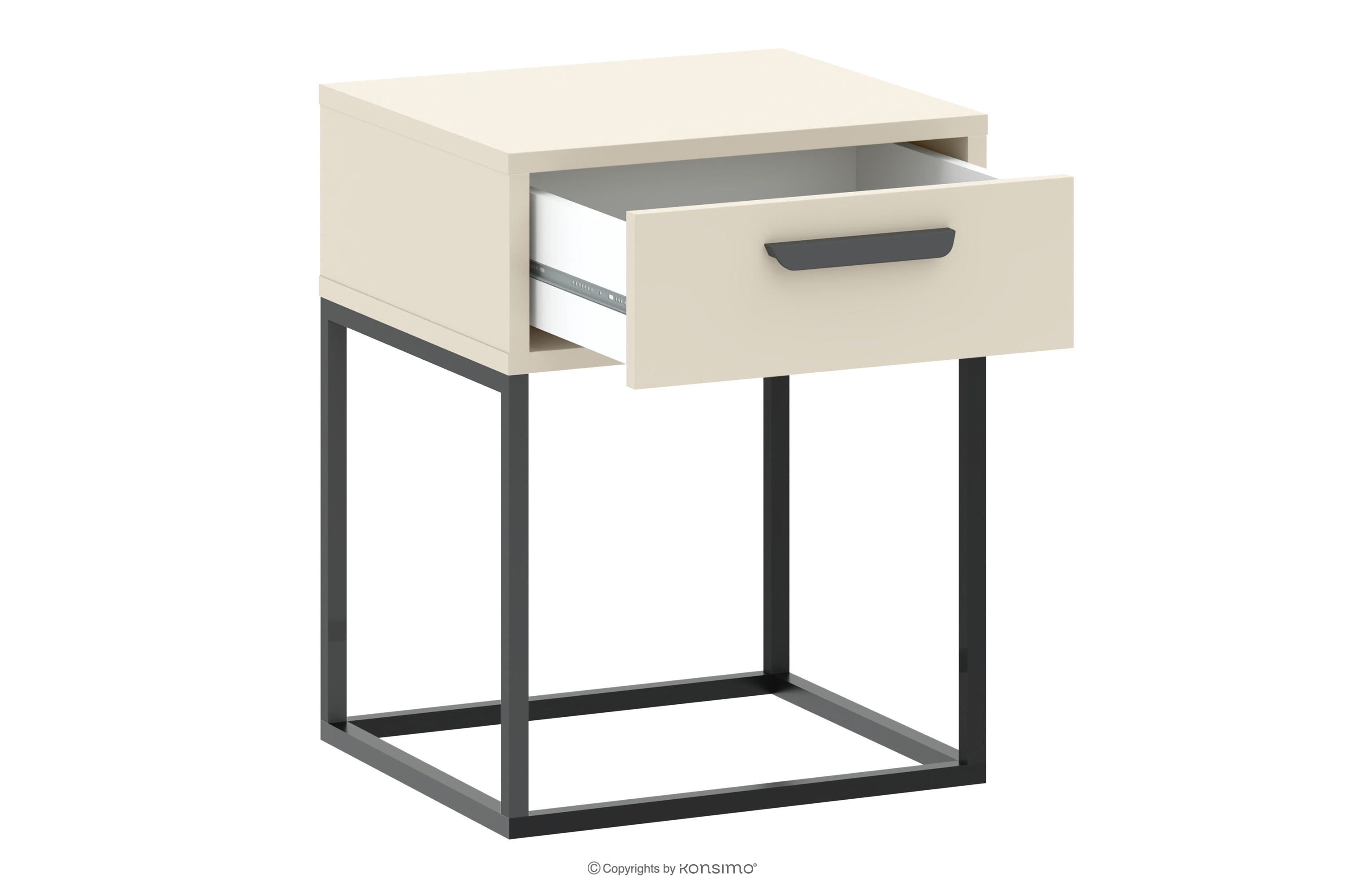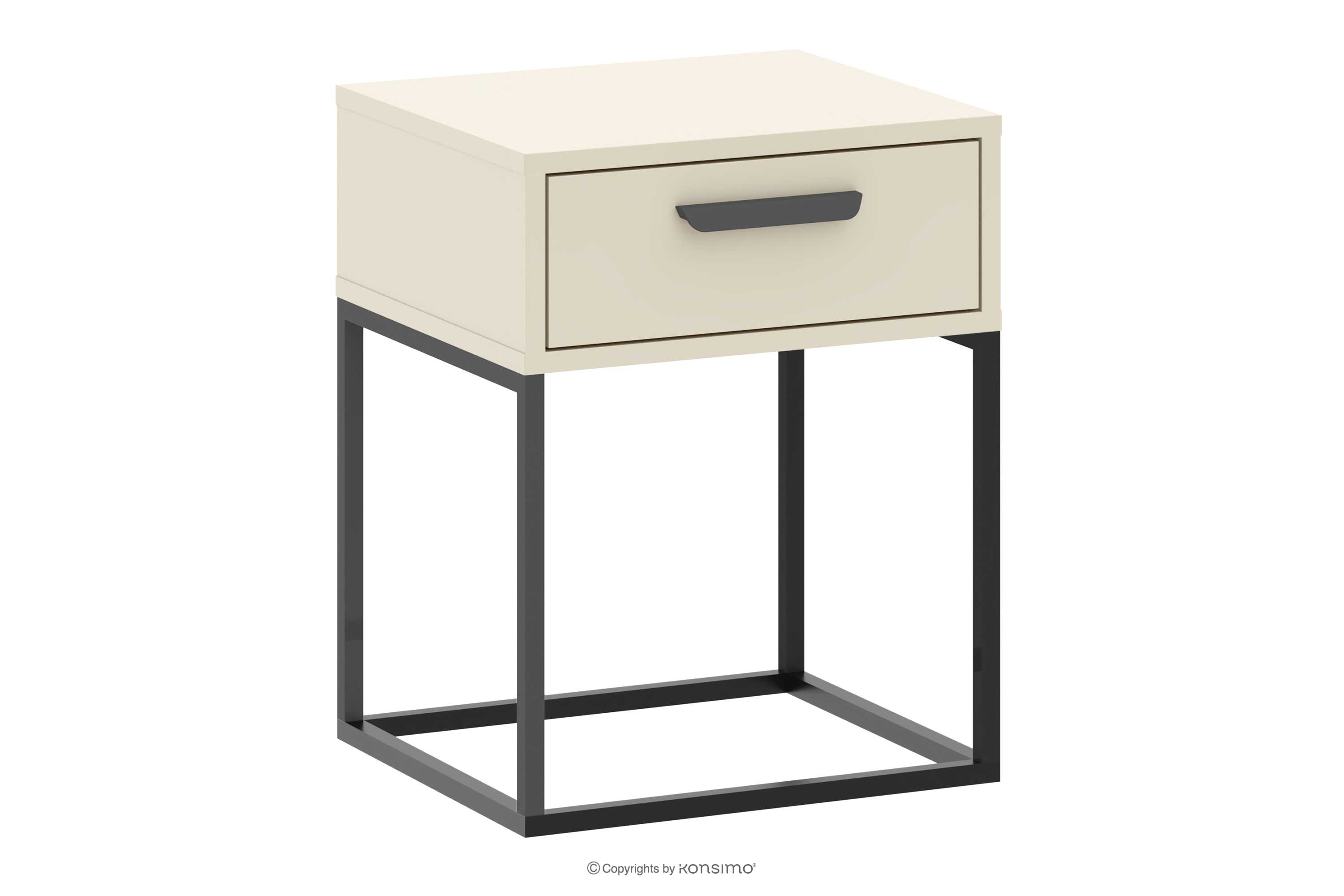 Kremowy stolik nocny z szufladą RECTUS - kolor kremowy/czarny