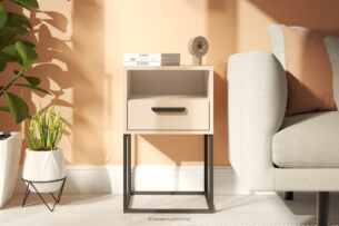 Kremowy stolik nocny z szufladą to połączenie funkcjonalności, minimalistycznego designu oraz najwyższej jakości wykonania. Idealnie wpisują się w aktualne trendy wnętrzarskie, oferując praktyczne rozwiązania w eleganckiej formie. Dzięki zastosowaniu trwałych materiałów, stoliki te spełnią oczekiwania nawet najbardziej wymagających użytkowników. Minimalistyczny wygląd idzie w parze z funkcjonalnością — stoliki wyposażone są w pojemną szufladę, która pomieści wszystkie niezbędne drobiazgi, takie jak książki, okulary czy ładowarka do telefonu.