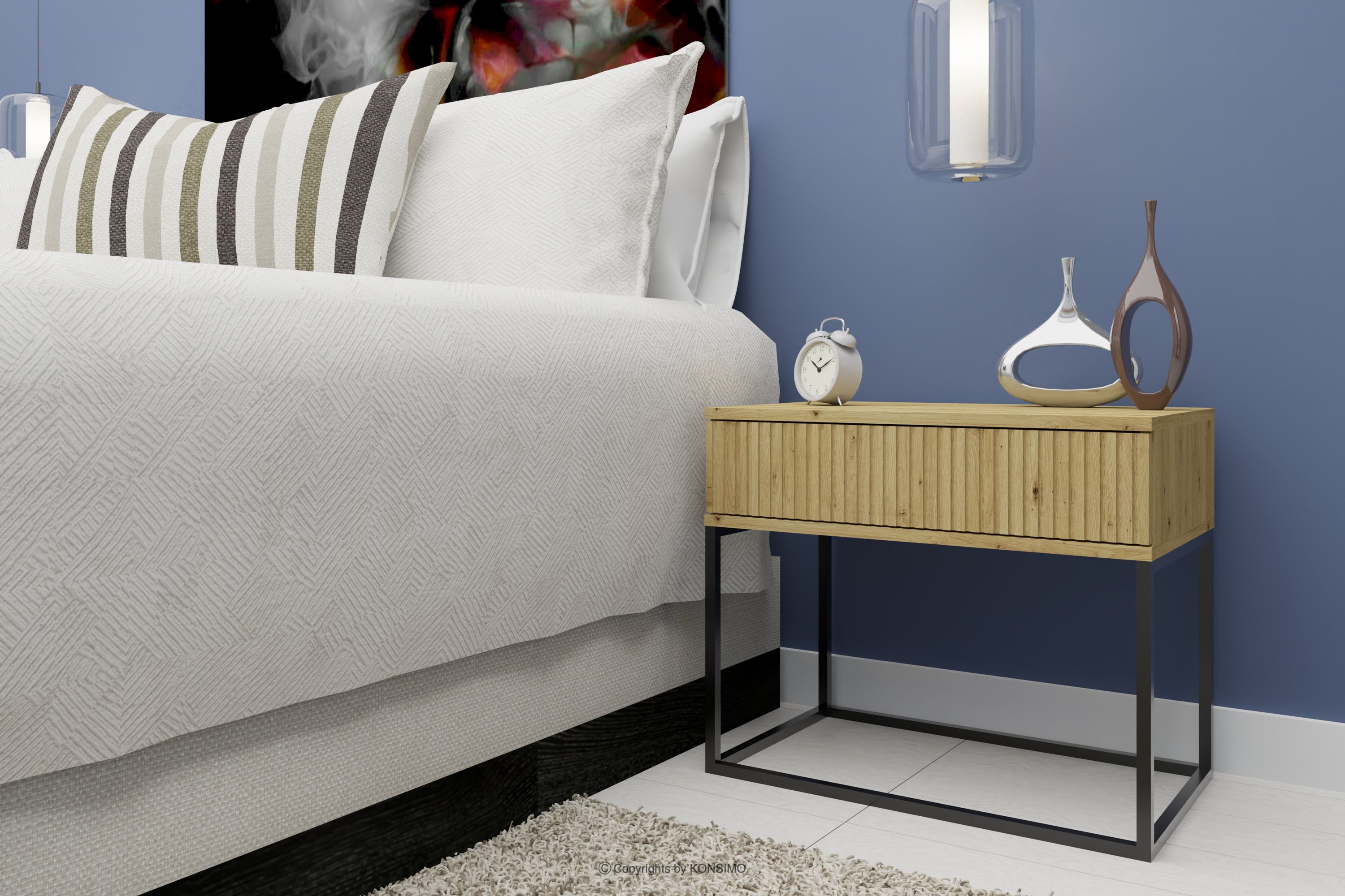 Duży stolik nocny z szufladą nowoczesny dąb artisan 2szt RECTUS - kolor dąb artisan/czarny